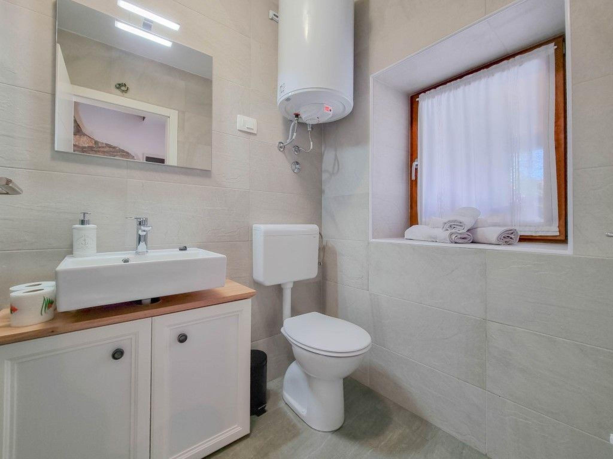 Stepping outside, the apartment extends an invitation to unwind on its inviting terrace, furnished and ready for moments of relaxation or al fresco dining. The addition of a barbecue enhances the outdoor living experience, allowing guests to savor grilled delights amidst the serene backdrop of Novigrad.