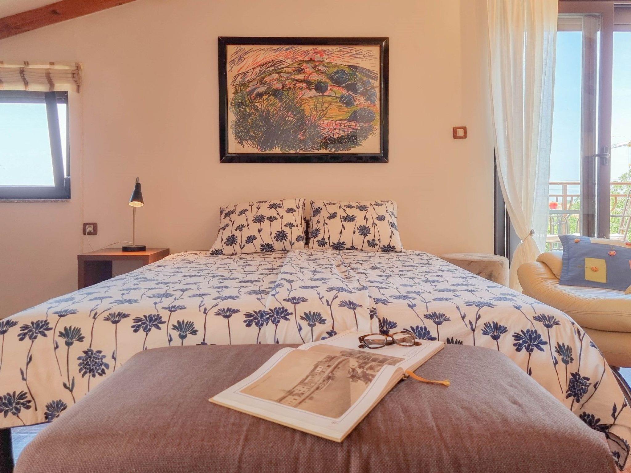 This second-floor haven spans 20 square meters, offering a well-appointed interior that combines comfort with functionality. The bedroom, furnished with a comfortable double bed, promises restful nights. The integrated kitchen area is fully equipped to cater to your culinary needs, featuring a combination of gas and electric stove, oven, refrigerator, dishwasher, microwave, and coffee maker. Added conveniences include a washing machine, ensuring a worry-free stay. Air conditioning, available in part of the apartment, ensures your comfort during warmer days.