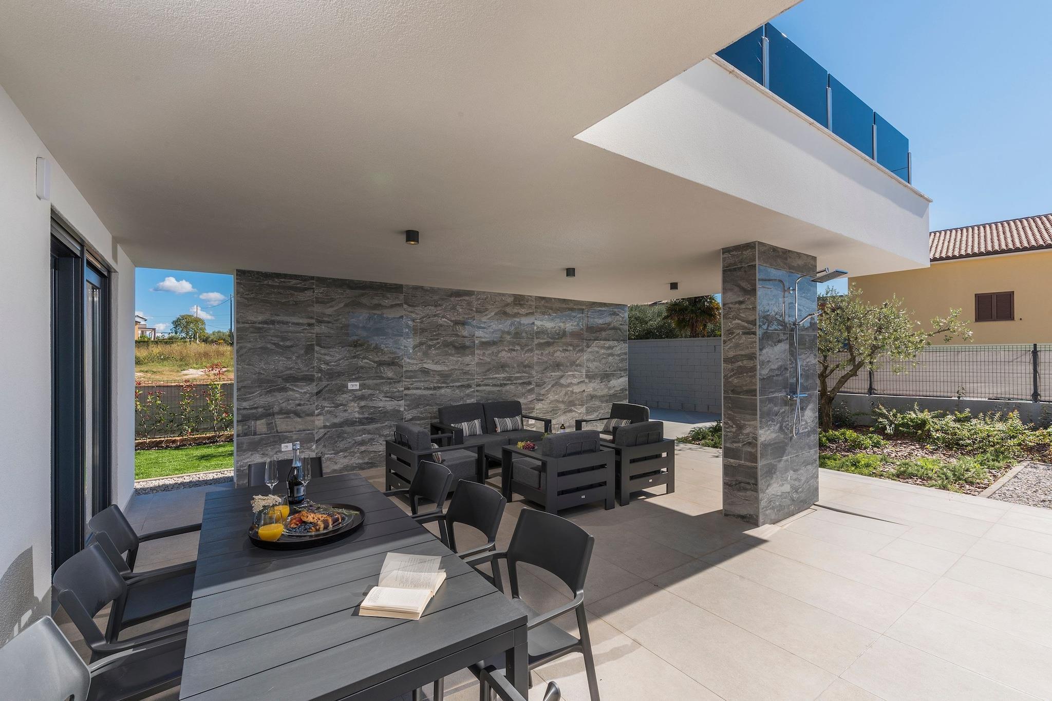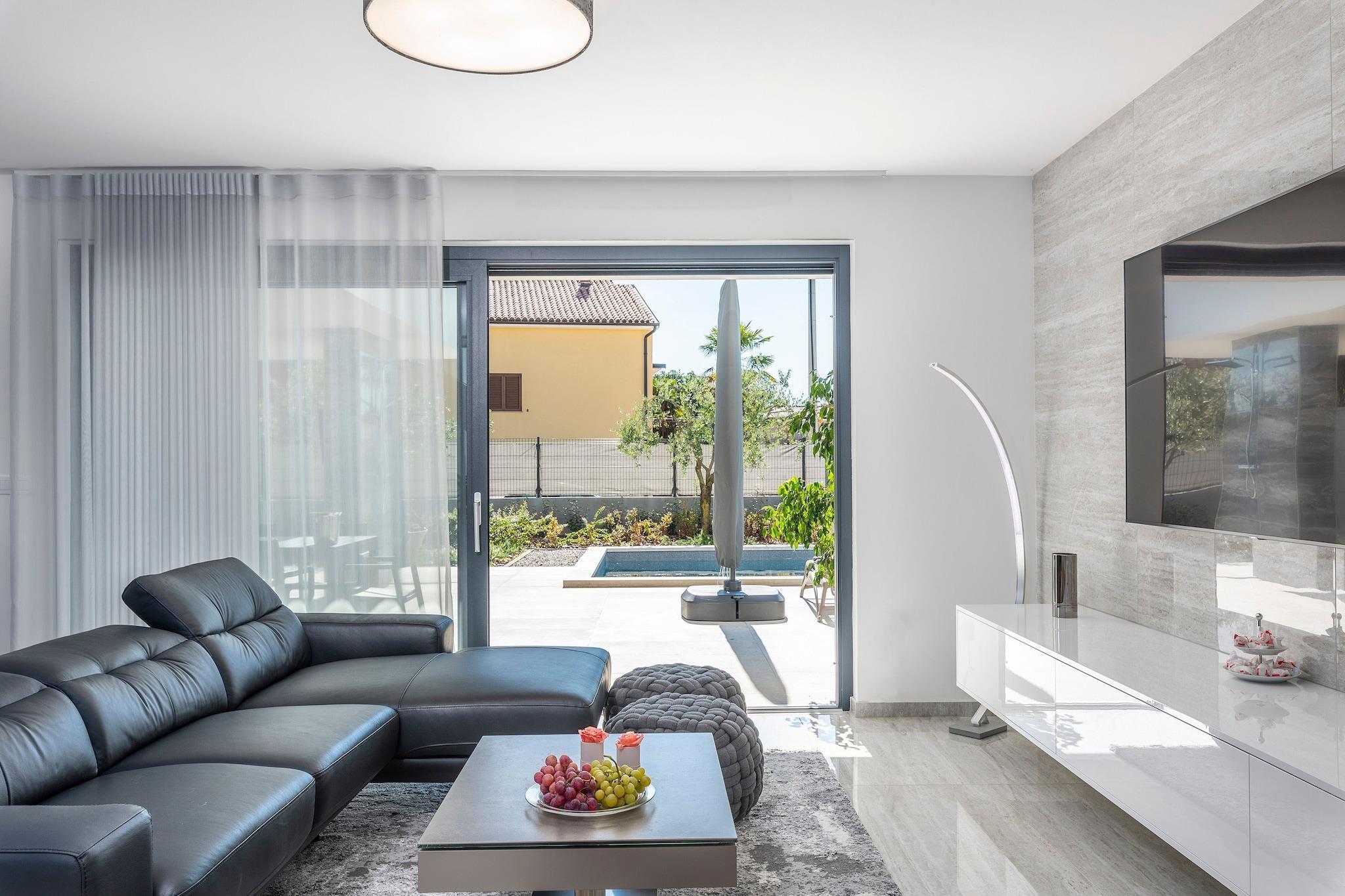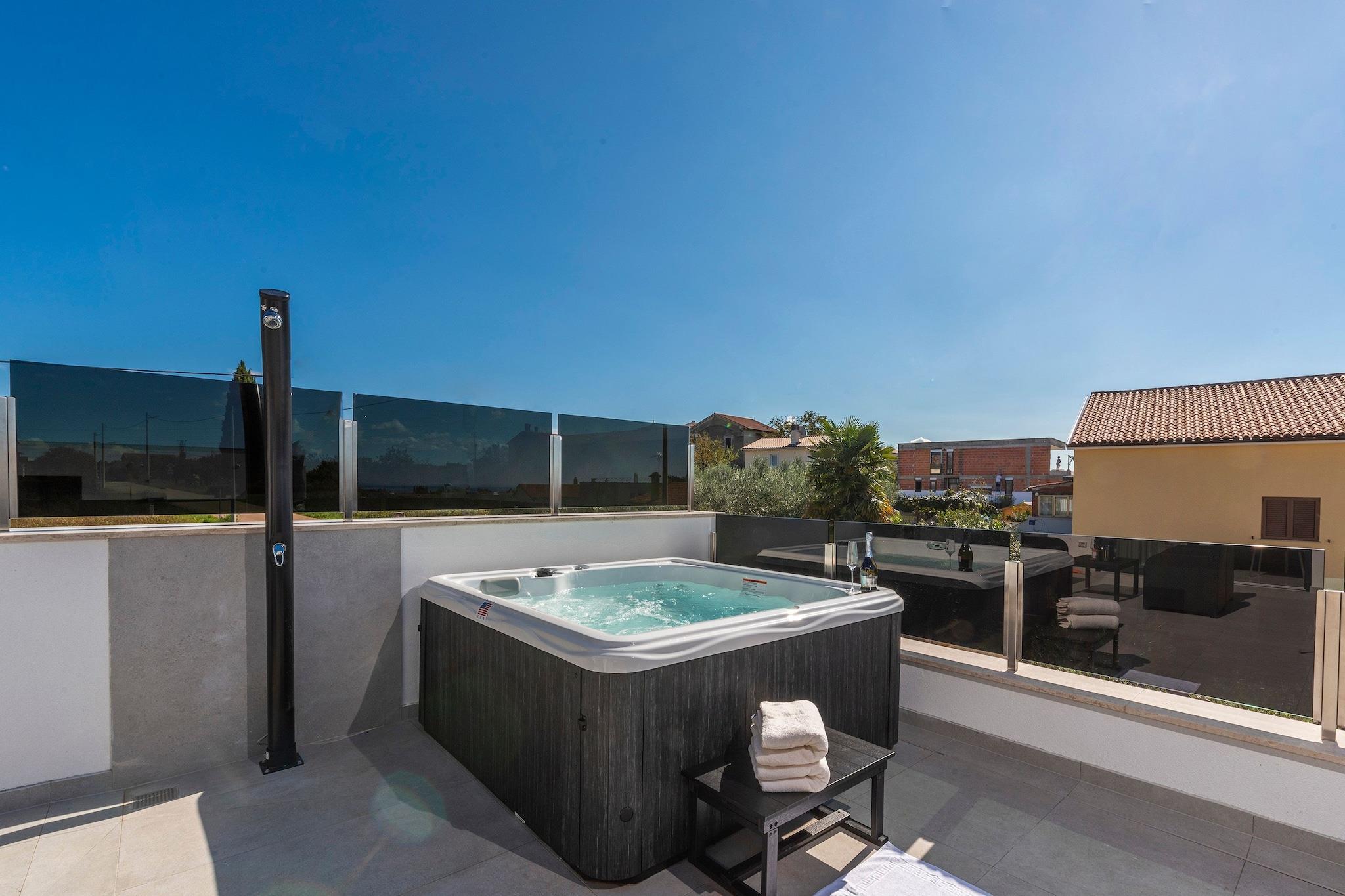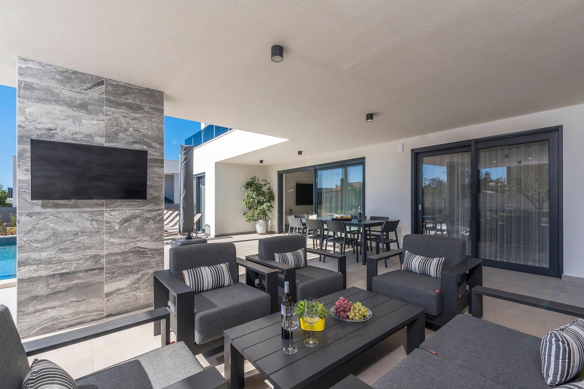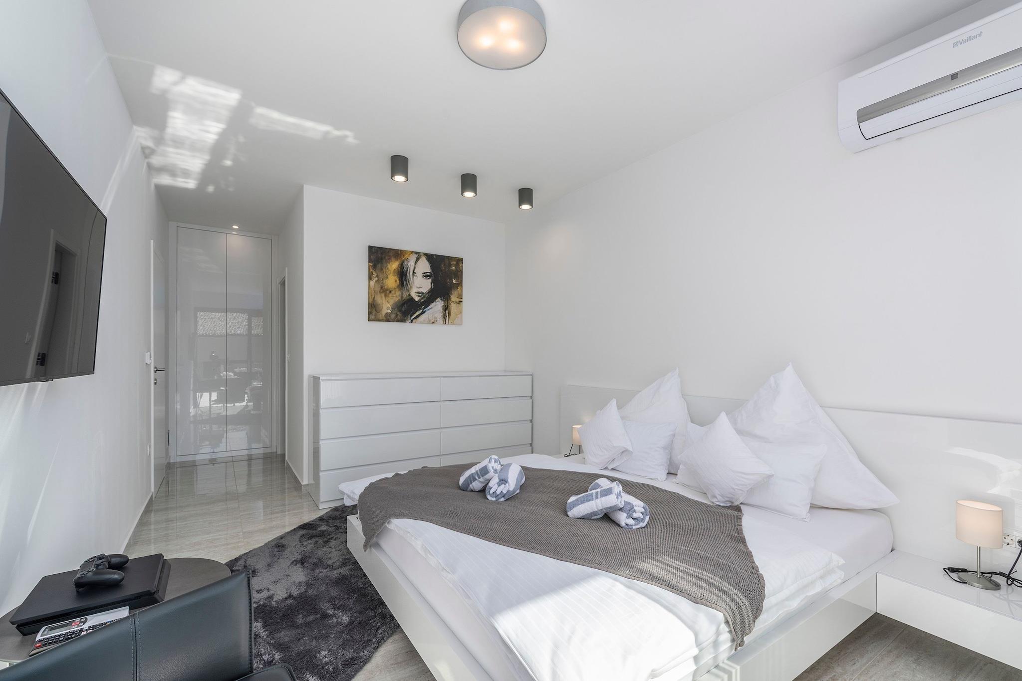 Stueetage: (Køkken(kaffemaskine, mikrobølgeovn, opvaskemaskine , køle-fryseskab), stue / spisestue(Fjernsyn(parabol), spisebord, sofahjørne), Soveværelse med badeværelse(dobbeltseng), Soveværelse med badeværelse(dobbeltseng)) På 1. etage: (Soveværelse med badeværelse(dobbeltseng), Soveværelse med badeværelse(dobbeltseng)) Bubble bath, balkon, varme, terrasse, have, grill, parkering, swimmingpool(privat)