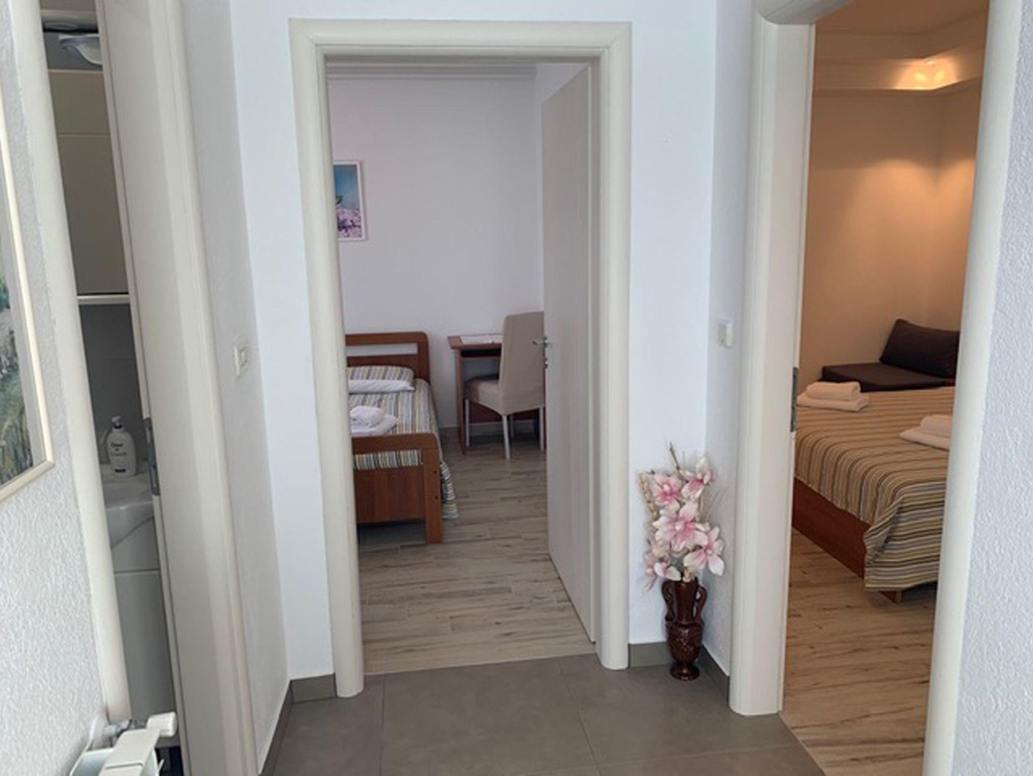 Ferienwohnung bietet Platz für 4 Gäste. Die Betten sind in Schlafzimmern, die es 2 gibt, innerhalb einer Gesamtfläche von 41m2, angeordnet. Die Gäste haben eine eigene Terrasse zur Verfügung, auf der sie in warmen Sommernächten genießen können. Es ist erlaubt, Speisen auf dem Gemeinschafts-Grill vorzubereiten. IM PREIS INBEGRIFFEN: Kurtaxe, Endreinigung, Klimatisierung, Parkplatz, Internet. VERBINDLICHE ZUSÄTZLICHE KOSTEN: Aufzahlung für Kurzaufenthalte (prozentualer Zuschlag pro Nächtigungsanzahl: 30% - 1, 20% - 2, 10% - 3). UNVERBINDLICHE ZUSÄTZLICHE KOSTEN: Wäschewaschen (5,00 € Waschen), Zusatzbett (10,00 € pro Nacht). Die Verfügbarkeit zusätzlicher Dienstleistungen in Ihrem reservierten Termin und die Preise derselben (falls nicht aufgeführt) müssen im Voraus überprüft werden. Zusätzliche Dienstleistungen die in der Zahlungsaufforderung nicht aufgeführt sind werden direkt beim Vermieter bezahlt, angenommen der Gast nutzt auch diese.