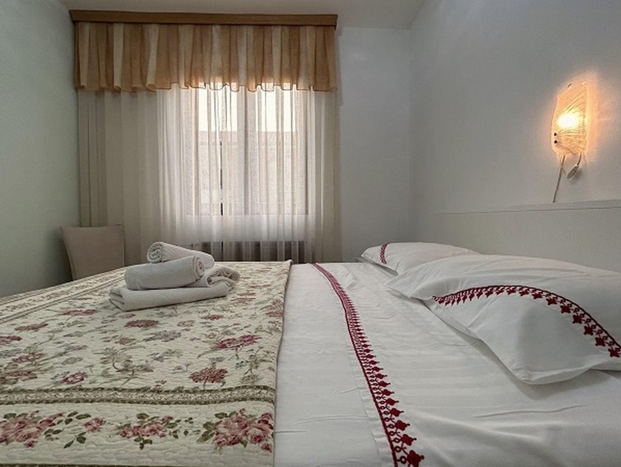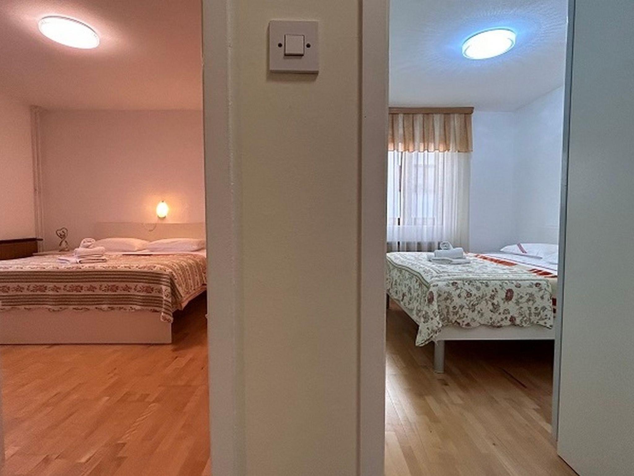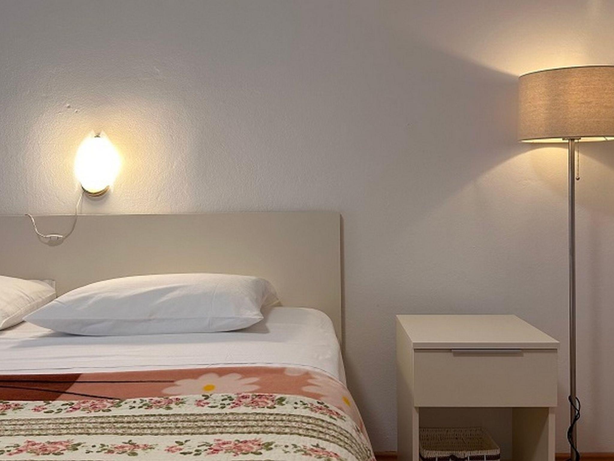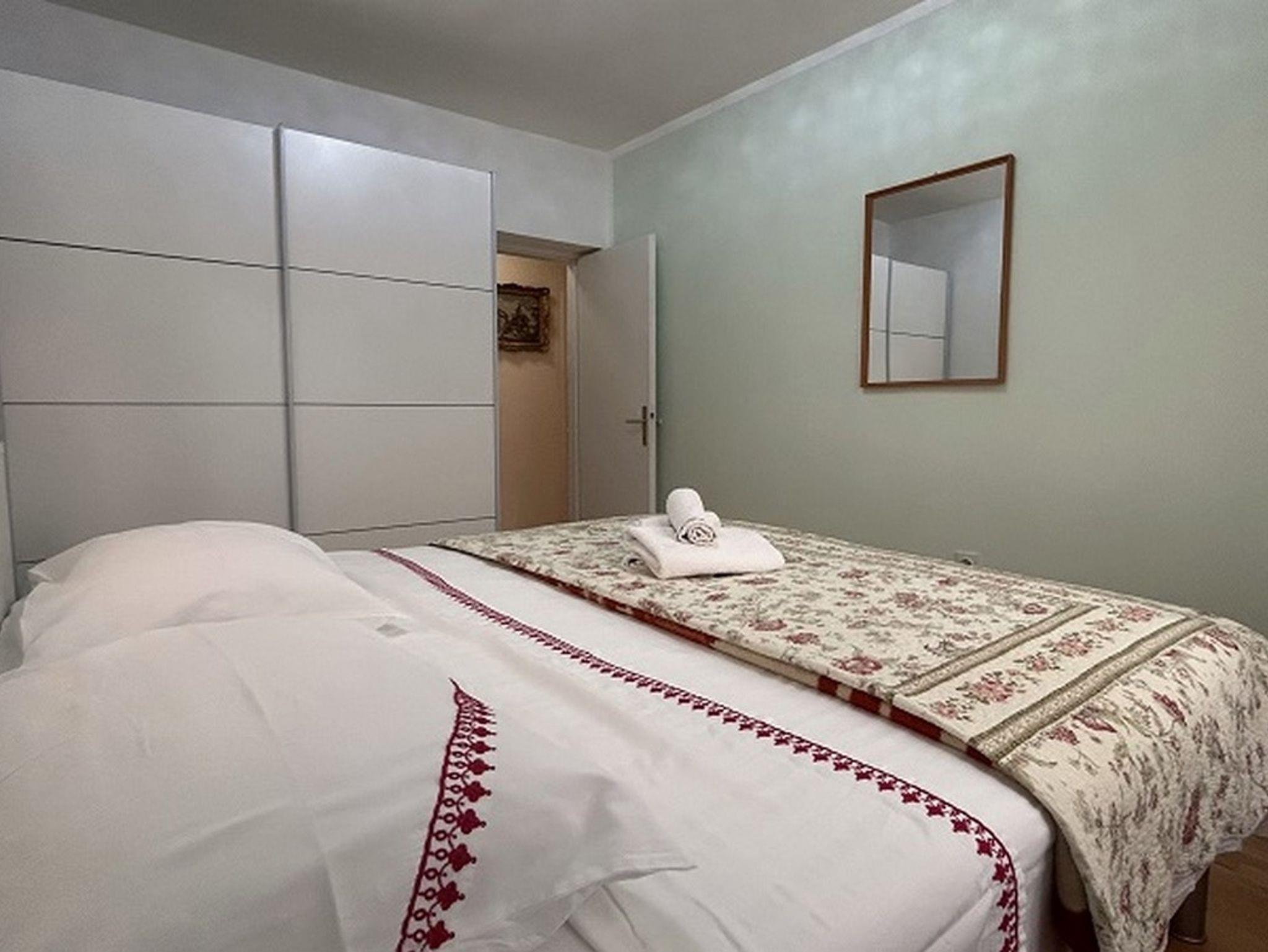 Ferienwohnung bietet Platz für 4 Gäste. Die Betten sind in Schlafzimmern, die es 2 gibt, innerhalb einer Gesamtfläche von 49m2, angeordnet. Die Gäste haben eine eigene Terrasse zur Verfügung, auf der sie in warmen Sommernächten genießen können. Es ist erlaubt, Speisen auf dem Gemeinschafts-Grill vorzubereiten. IM PREIS INBEGRIFFEN: Kurtaxe, Endreinigung, Parkplatz, Internet, Kinderbett, Bügeleisen, Bügelbrett, Föhn. VERBINDLICHE ZUSÄTZLICHE KOSTEN: Aufzahlung für Kurzaufenthalte (prozentualer Zuschlag pro Nächtigungsanzahl: 30% - 1, 20% - 2, 10% - 3). UNVERBINDLICHE ZUSÄTZLICHE KOSTEN: Klimatisierung (5,00 € pro Nacht), Wäschewaschen (5,00 € Waschen). Die Verfügbarkeit zusätzlicher Dienstleistungen in Ihrem reservierten Termin und die Preise derselben (falls nicht aufgeführt) müssen im Voraus überprüft werden. Zusätzliche Dienstleistungen die in der Zahlungsaufforderung nicht aufgeführt sind werden direkt beim Vermieter bezahlt, angenommen der Gast nutzt auch diese.
