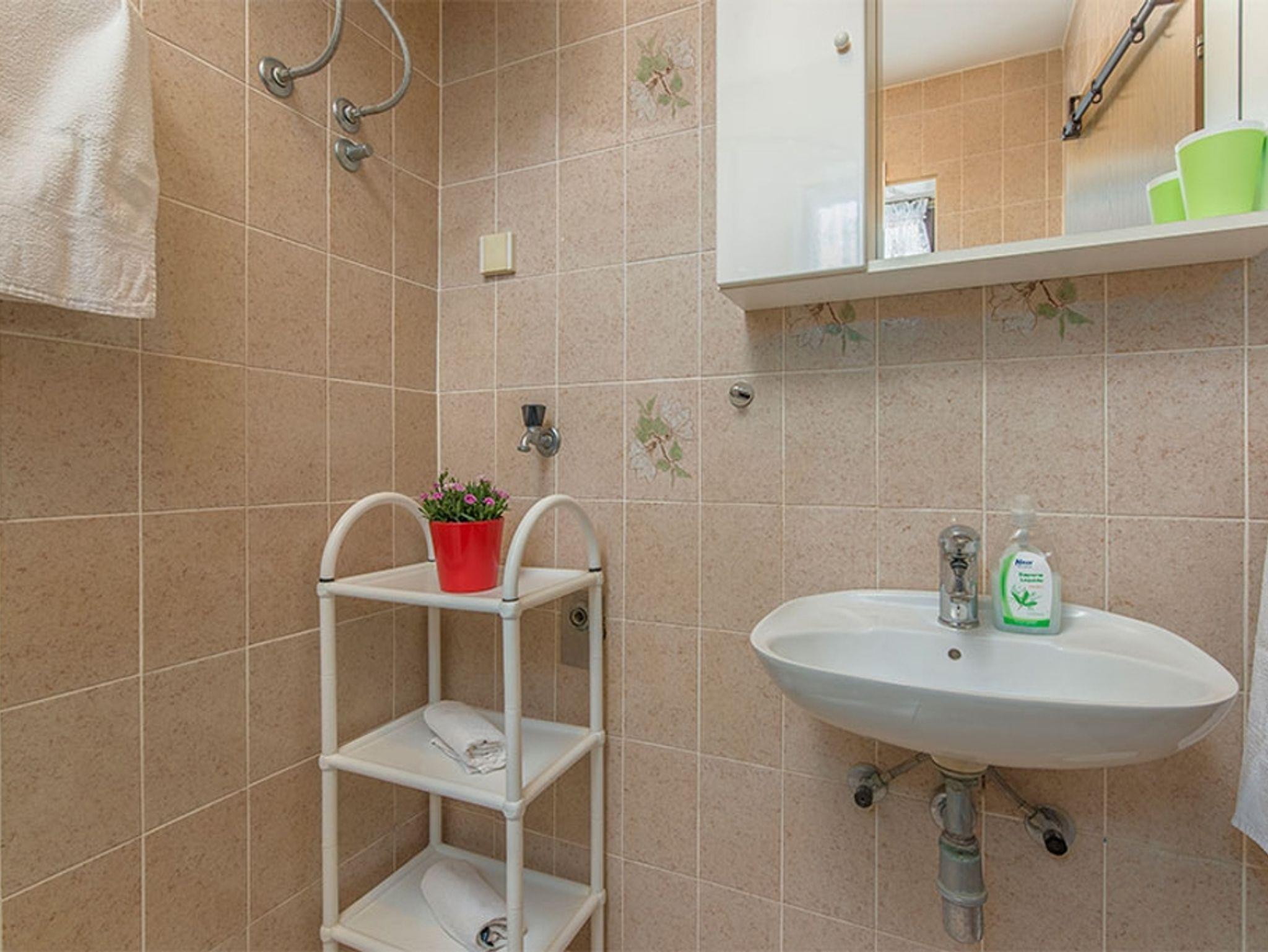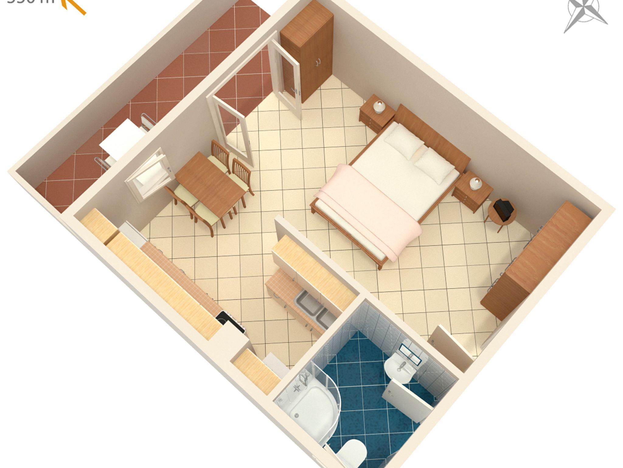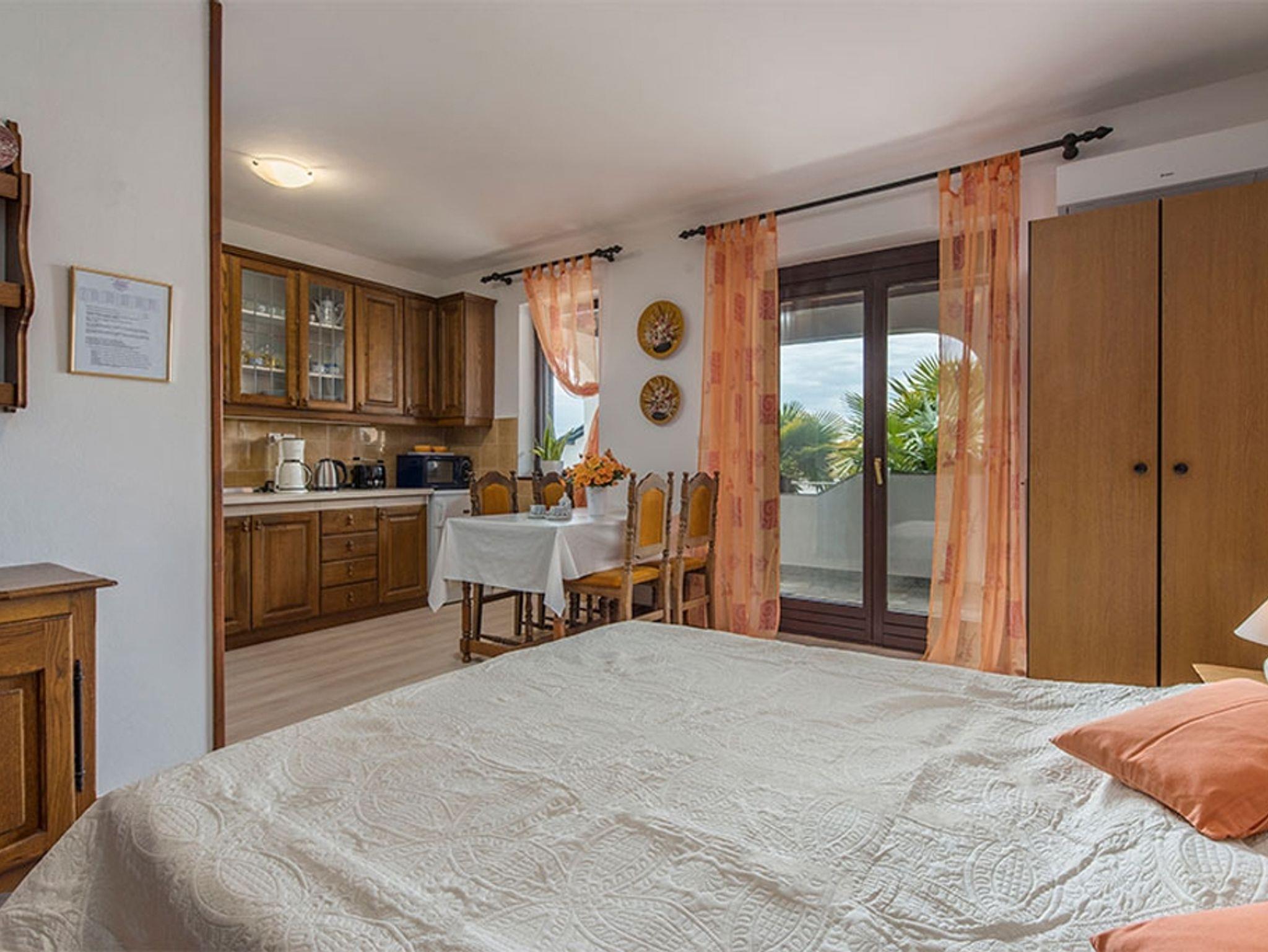 Studio bietet Platz für 2 Gäste. Die Betten sind in Schlafzimmern, die es 1 gibt, innerhalb einer Gesamtfläche von 28m2, angeordnet. Die Gäste haben eine eigene Terrasse zur Verfügung, auf der sie in warmen Sommernächten genießen können. Es ist erlaubt, Speisen auf dem Gemeinschafts-Grill vorzubereiten. Unterkunftseinheit hat Räume, die von dem Rest der Einheit abgetrennt werden. IM PREIS INBEGRIFFEN: Kurtaxe, Endreinigung, Klimatisierung, Parkplatz, Internet, Kinderbett, Bügeleisen, Bügelbrett, Föhn. VERBINDLICHE ZUSÄTZLICHE KOSTEN: Aufzahlung für Kurzaufenthalte (prozentualer Zuschlag pro Nächtigungsanzahl: 30% - 1, 20% - 2, 10% - 3). UNVERBINDLICHE ZUSÄTZLICHE KOSTEN: Wäschewaschen (5,00 € Waschen). Die Verfügbarkeit zusätzlicher Dienstleistungen in Ihrem reservierten Termin und die Preise derselben (falls nicht aufgeführt) müssen im Voraus überprüft werden. Zusätzliche Dienstleistungen die in der Zahlungsaufforderung nicht aufgeführt sind werden direkt beim Vermieter bezahlt, angenommen der Gast nutzt auch diese. Ermäßigung auf den Grundpreis: Gratistag 14=13 (bei einem Aufenthalt von 14 Tagen oder mehr erhalten Sie einen Gratistag für den Aufenthalt bis 31.12.26).