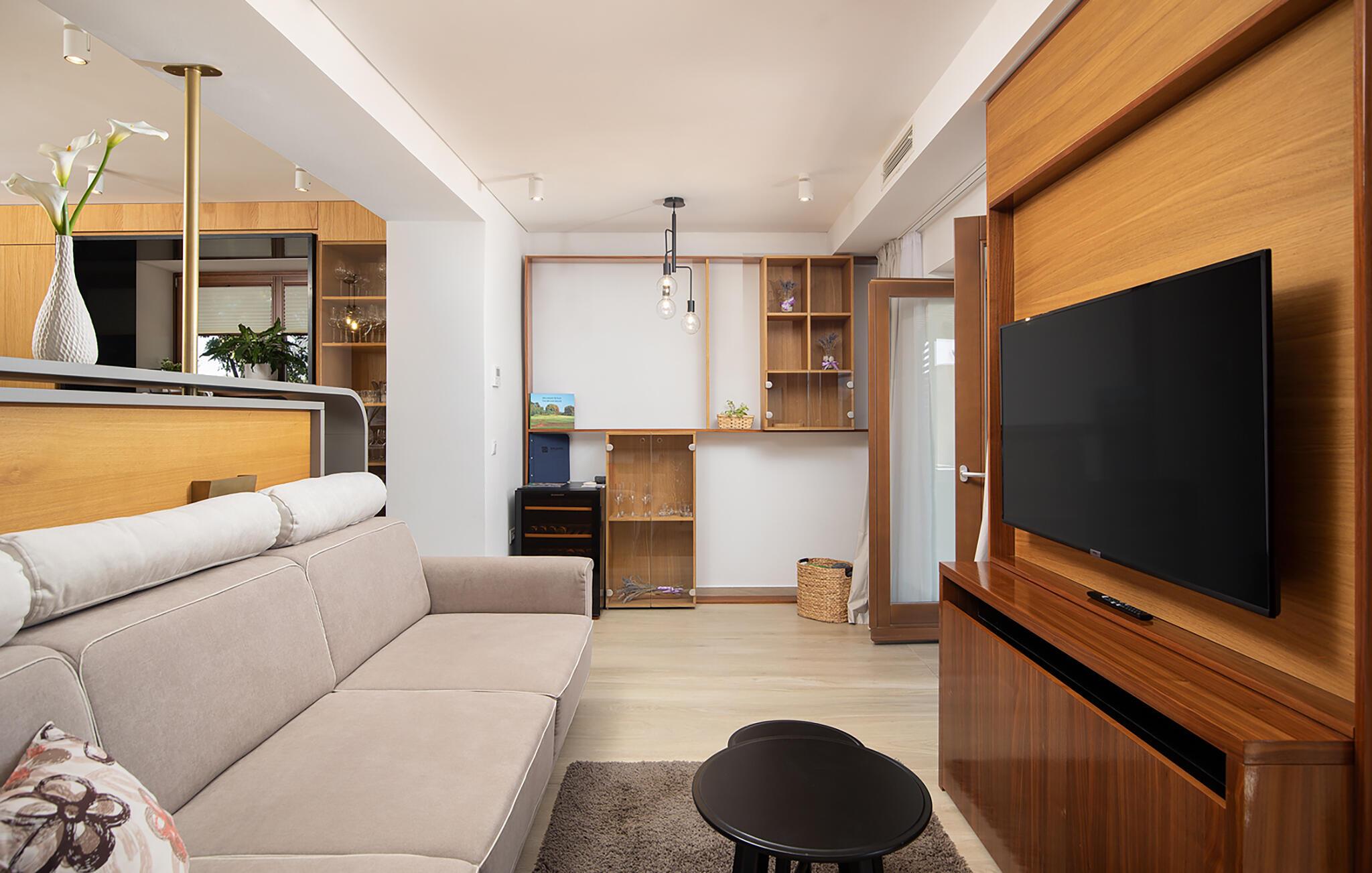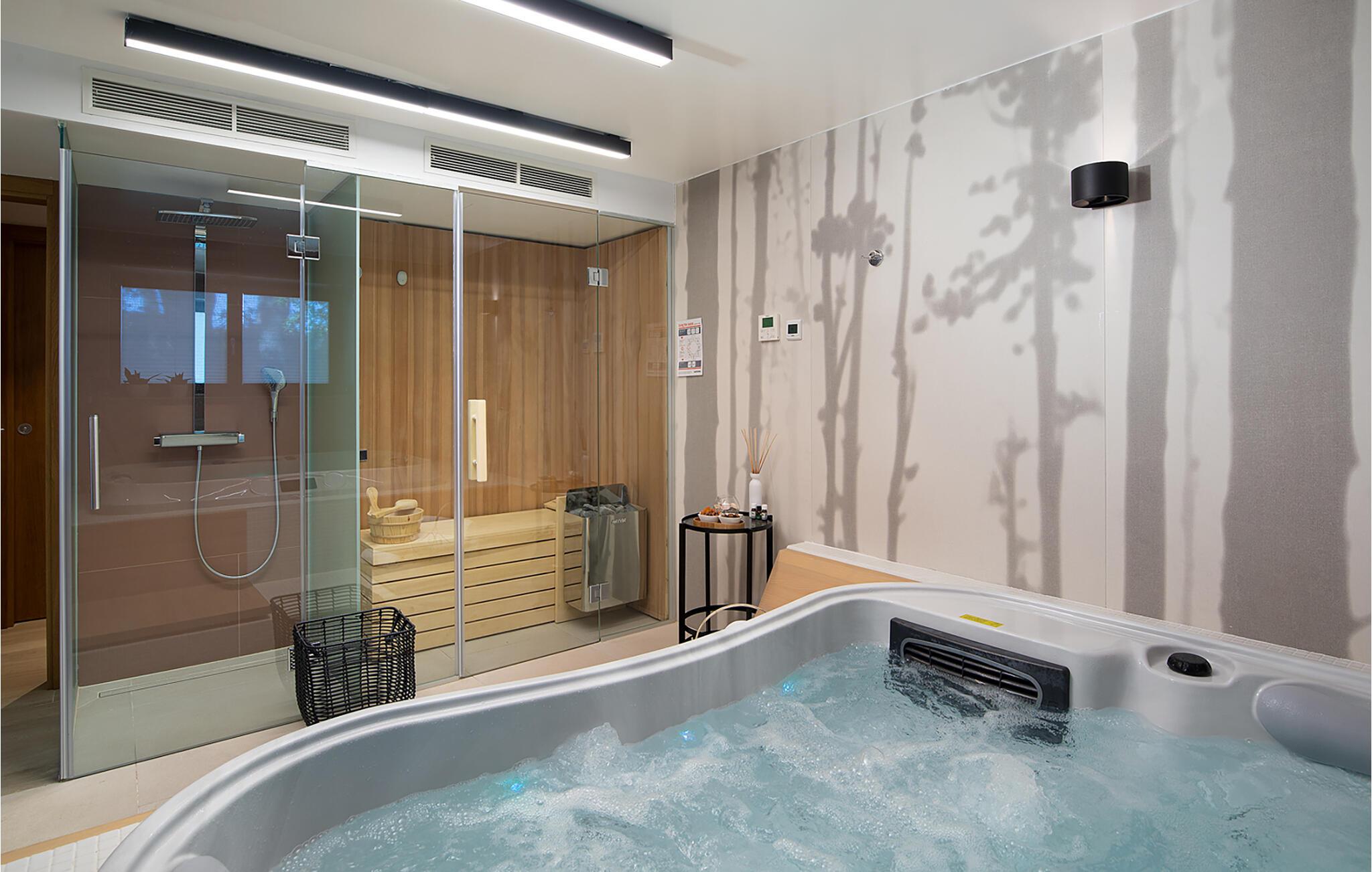 Træd indenfor og nyd det stilfulde samspil mellem moderne møbler og varme træelementer. Slap af i den åbne stue med en behagelig sofa og tv, mens store vinduer tilbyder en betagende havudsigt. Udnyt den direkte adgang til terrassen for problemfrit at forbinde inde- og uderum. Tilbered jeres måltider i det fuldt udstyrede køkken og saml jer omkring det elegant dækkede spisebord. Efter en spændende dag kan I slappe af i spabadet eller trække jer tilbage til saunaen for at få en afslappende ro.