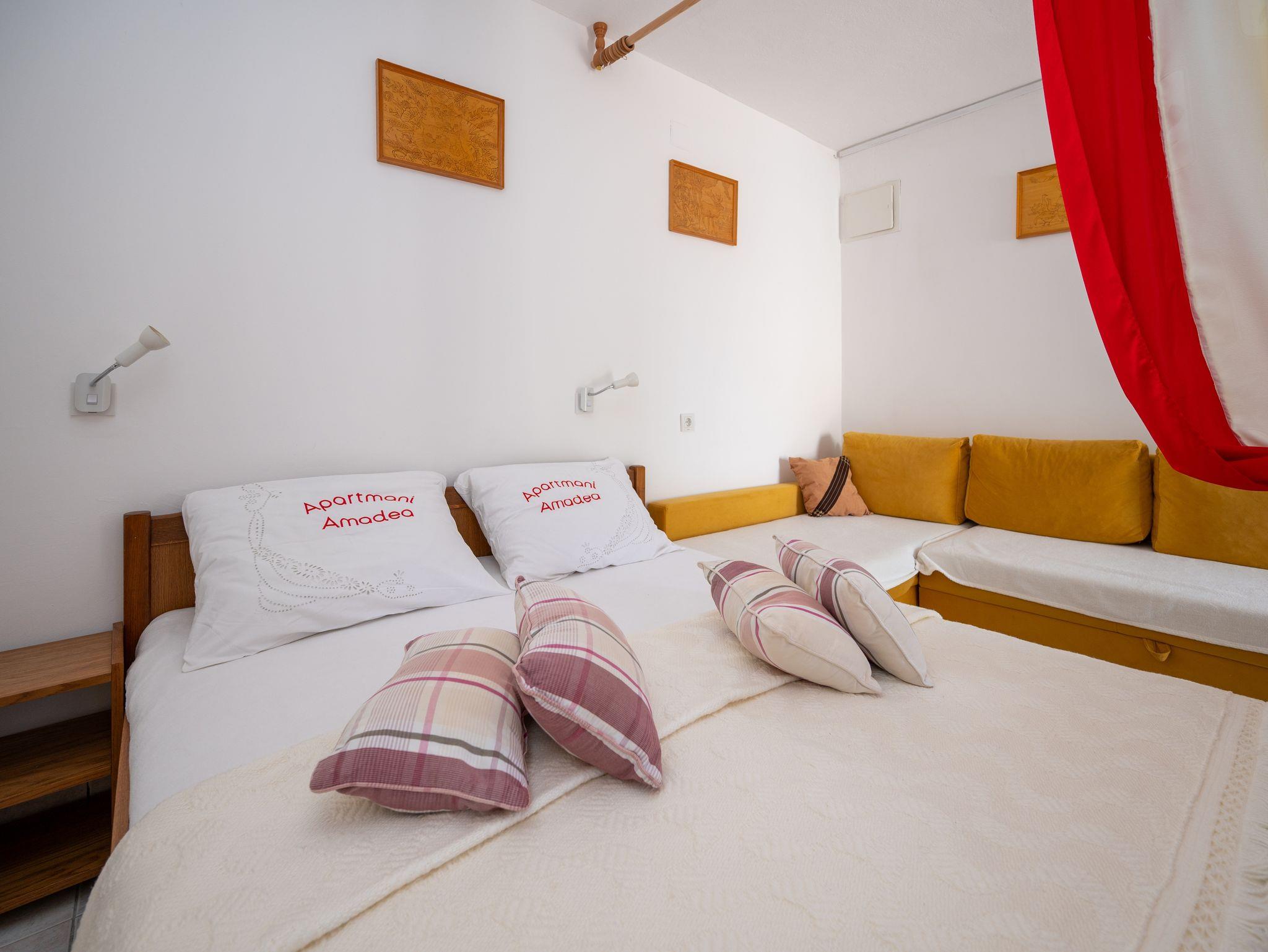 Studio bietet Platz für 3 Gäste. Die Betten sind in Schlafzimmern, die es 1 gibt, innerhalb einer Gesamtfläche von 23m2, angeordnet. Die Gäste haben eine eigene Terrasse zur Verfügung, auf der sie in warmen Sommernächten genießen können. Es ist erlaubt, Speisen auf dem Gemeinschafts-Grill vorzubereiten. Durch die Terrasse der gebuchten Unterkunftseinheit gehen auch andere Gäste oder Vermieter. IM PREIS INBEGRIFFEN: Kurtaxe, Endreinigung, Klimatisierung, Parkplatz, Internet, Kinderbett, Zusatzbett, Bügeleisen, Bügelbrett, Föhn. VERBINDLICHE ZUSÄTZLICHE KOSTEN: Aufzahlung für Kurzaufenthalte (prozentualer Zuschlag pro Nächtigungsanzahl: 30% - 1, 20% - 2, 10% - 3). Die Verfügbarkeit zusätzlicher Dienstleistungen in Ihrem reservierten Termin und die Preise derselben (falls nicht aufgeführt) müssen im Voraus überprüft werden. Zusätzliche Dienstleistungen die in der Zahlungsaufforderung nicht aufgeführt sind werden direkt beim Vermieter bezahlt, angenommen der Gast nutzt auch diese. Ermäßigung auf den Grundpreis: Gratistag 21=19 (bei einem Aufenthalt von 21 Tagen oder mehr erhalten Sie 2 Gratistage für den Aufenthalt bis 31.12.26).