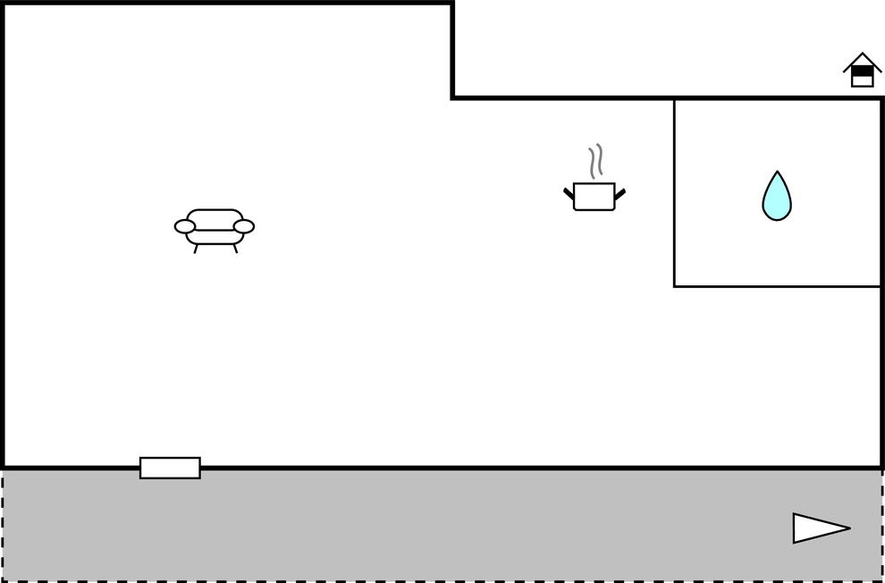 Komb. spisestue/køkken 22m2 - 2 Sovepladser. (Dobbeltseng(e)).