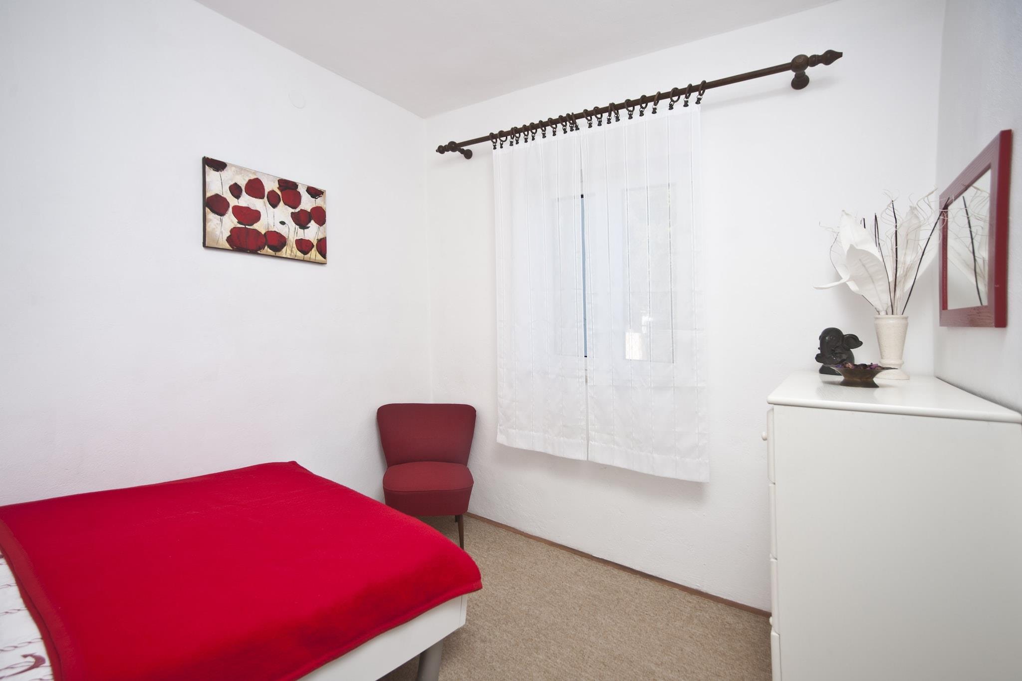 Feriehus Ingrid ligger på en af de smukkeste kroatiske øer, øen Ciovo. Rummelig solterrasse med liggestole og parasoller, udendørs sæsonåben swimmingpool samt grillfaciliteter og udendørsmøbler står til din rådighed, hvilket gør det det ideelle sted for en dejlig og afslappende familie- eller venners ferie. Der tilbydes gratis privat parkering, reservation er ikke nødvendig. Dette dejlige feriehus med fire soveværelser med privat pool er perfekt til op til seks personer. Det har gratis WiFi, aircondition og SAT LCD-tv. Den rummelige stue har opholdsområde, mens det udstyrede køkken er kombineret med spiseplads. Feriehuset har to private badeværelser, det ene med bruser og det andet med badekar.Barneseng, vaskemaskine hårtørrer, strygejern og strygefaciliteter står til din rådighed.Feriehus Ingrid ligger i den smukke traditionelle landsby Okrug Gornji på øen af Ciovo. Ciovo er en ø beliggende i midten af Dalmatien, forbundet med byen Trogir via vindebro, og administrativt opdelt mellem Split, Trogir og Okrug. Det har et mildt middelhavsklima, tæt subtropisk og middelhavsvegetation, en øgruppe af maleriske små øer, utallige små bugter og strande.Den nærmeste strand ligger kun 200 m væk, samt restauranter og marked.Apoteket ligger 700 m væk. fra ejendommen.Busstoppestedet ligger 300 m fra ejendommen, og der er ca. 10 km til Split Lufthavn.