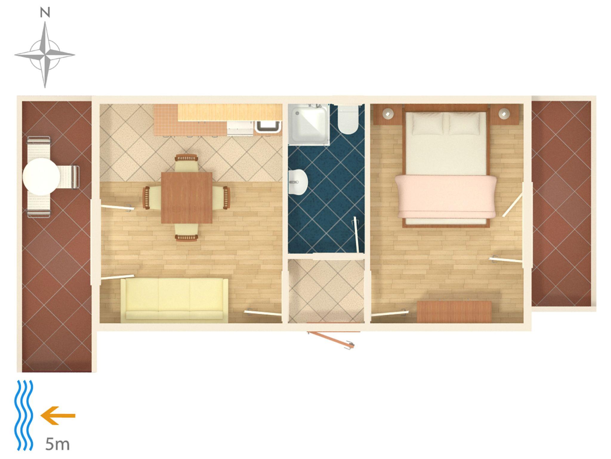 Ferienwohnung bietet Platz für 4 Gäste. Die Betten sind in Schlafzimmern, die es 1 gibt, und in Esszimmer, innerhalb einer Gesamtfläche von 32m2, angeordnet. Die Gäste haben eine eigene Terrasse zur Verfügung, auf der sie in warmen Sommernächten genießen können. Das Apartment bietet Meerblick. Es ist erlaubt, Speisen auf dem Gemeinschafts-Grill vorzubereiten. In der Unterkunftseinheit besteht die Möglichkeit des Mitbringens von Haustieren gegen Aufpreis. IM PREIS INBEGRIFFEN: Kurtaxe, Endreinigung, Klimatisierung, Parkplatz, Internet, Kinderbett, Föhn, Liegestühle. VERBINDLICHE ZUSÄTZLICHE KOSTEN: Aufzahlung für Kurzaufenthalte (prozentualer Zuschlag pro Nächtigungsanzahl: 30% - 1, 20% - 2, 10% - 3). UNVERBINDLICHE ZUSÄTZLICHE KOSTEN: Haustiere (10,00 € pro Nacht). Die Verfügbarkeit zusätzlicher Dienstleistungen in Ihrem reservierten Termin und die Preise derselben (falls nicht aufgeführt) müssen im Voraus überprüft werden. Zusätzliche Dienstleistungen die in der Zahlungsaufforderung nicht aufgeführt sind werden direkt beim Vermieter bezahlt, angenommen der Gast nutzt auch diese. Ermäßigung auf den Grundpreis: Gratistag 21=19 (bei einem Aufenthalt von 21 Tagen oder mehr erhalten Sie 2 Gratistage für den Aufenthalt bis 31.12.26).