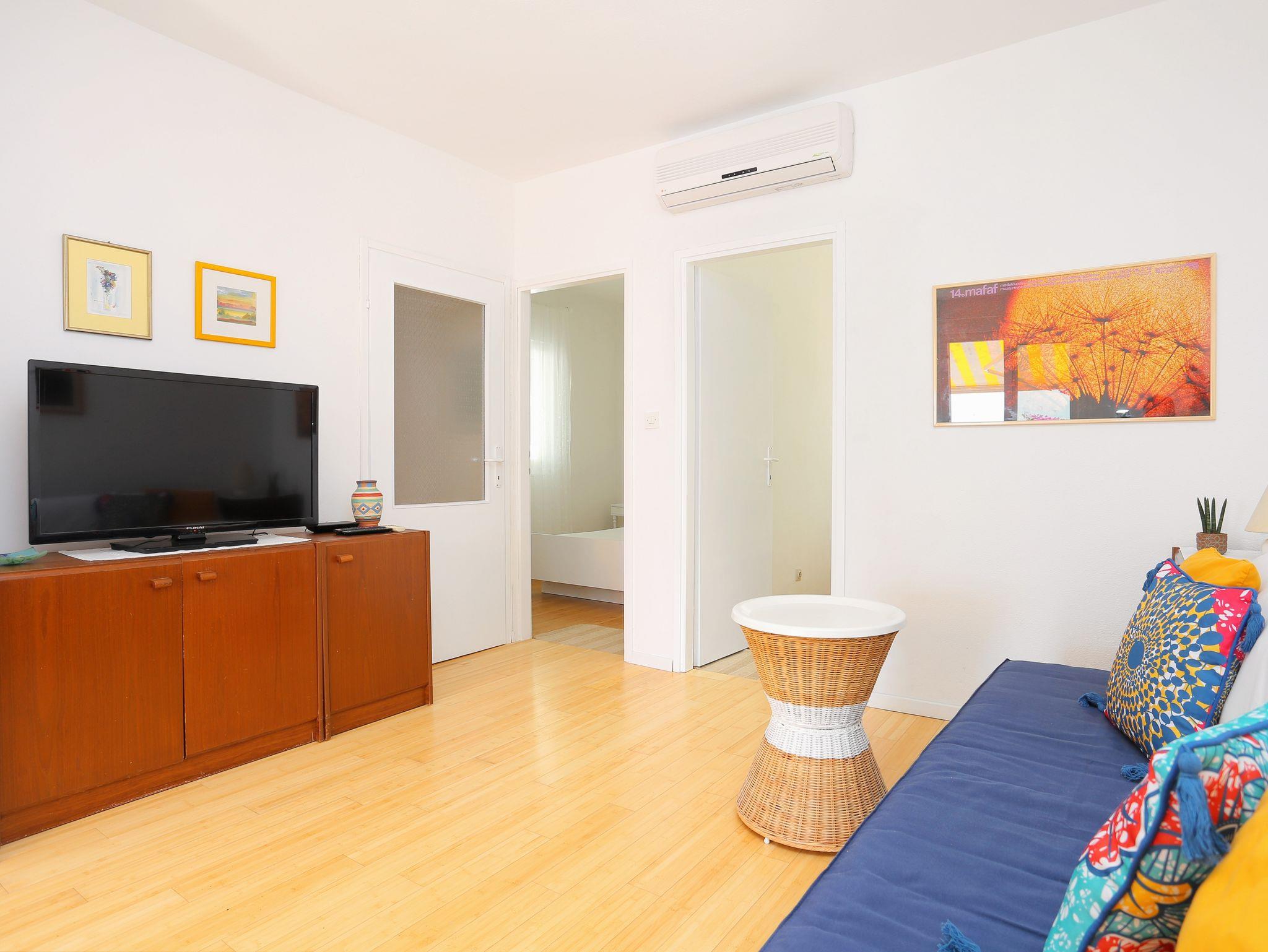 Ferienwohnung bietet Platz für 4 Gäste. Die Betten sind in Schlafzimmern, die es 2 gibt, innerhalb einer Gesamtfläche von 38m2, angeordnet. Die Gäste haben eine eigene Terrasse zur Verfügung, auf der sie in warmen Sommernächten genießen können. Das Apartment bietet Meerblick. Es ist erlaubt, Speisen auf dem Gemeinschafts-Grill vorzubereiten. In der Unterkunftseinheit besteht die Möglichkeit des Mitbringens von Haustieren gegen Aufpreis. IM PREIS INBEGRIFFEN: Kurtaxe, Endreinigung, Klimatisierung, Parkplatz, Internet, Bootsanlegeplatz. VERBINDLICHE ZUSÄTZLICHE KOSTEN: Aufzahlung für Kurzaufenthalte (prozentualer Zuschlag pro Nächtigungsanzahl: 30% - 1, 20% - 2, 10% - 3). UNVERBINDLICHE ZUSÄTZLICHE KOSTEN: Haustiere (5,00 € pro Nacht), Zusatzbett (5,00 € pro Nacht). Die Verfügbarkeit zusätzlicher Dienstleistungen in Ihrem reservierten Termin und die Preise derselben (falls nicht aufgeführt) müssen im Voraus überprüft werden. Zusätzliche Dienstleistungen die in der Zahlungsaufforderung nicht aufgeführt sind werden direkt beim Vermieter bezahlt, angenommen der Gast nutzt auch diese. Ermäßigung auf den Grundpreis: Gratistag 21=19 (bei einem Aufenthalt von 21 Tagen oder mehr erhalten Sie 2 Gratistage für den Aufenthalt bis 31.12.26).