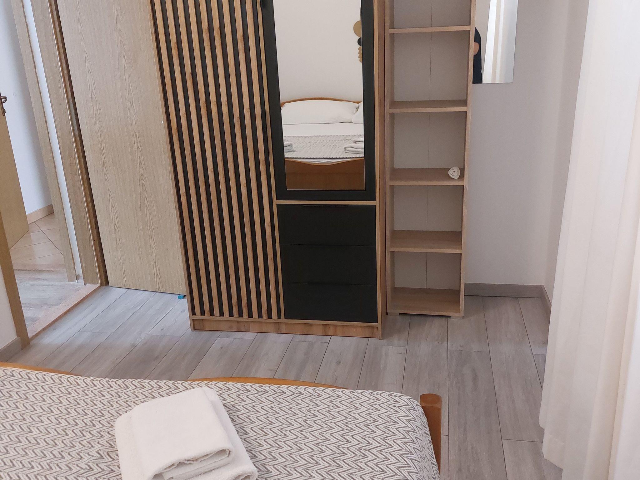 Ferienwohnung bietet Platz für 4 Gäste. Die Betten sind in Schlafzimmern, die es 1 gibt, und in Wohnzimmer, innerhalb einer Gesamtfläche von 41m2, angeordnet. Die Gäste haben eine eigene Terrasse zur Verfügung, auf der sie in warmen Sommernächten genießen können. Das Apartment bietet Meerblick. Es ist erlaubt, Speisen auf dem Gemeinschafts-Grill vorzubereiten. In der Unterkunftseinheit besteht die Möglichkeit des Mitbringens von Haustieren gegen Aufpreis. IM PREIS INBEGRIFFEN: Kurtaxe, Endreinigung, Klimatisierung, Parkplatz, Internet, Kinderbett, Föhn, Liegestühle. VERBINDLICHE ZUSÄTZLICHE KOSTEN: Aufzahlung für Kurzaufenthalte (prozentualer Zuschlag pro Nächtigungsanzahl: 30% - 1, 20% - 2, 10% - 3). UNVERBINDLICHE ZUSÄTZLICHE KOSTEN: Haustiere (10,00 € pro Nacht). Die Verfügbarkeit zusätzlicher Dienstleistungen in Ihrem reservierten Termin und die Preise derselben (falls nicht aufgeführt) müssen im Voraus überprüft werden. Zusätzliche Dienstleistungen die in der Zahlungsaufforderung nicht aufgeführt sind werden direkt beim Vermieter bezahlt, angenommen der Gast nutzt auch diese. Ermäßigung auf den Grundpreis: Gratistag 21=19 (bei einem Aufenthalt von 21 Tagen oder mehr erhalten Sie 2 Gratistage für den Aufenthalt bis 31.12.26).