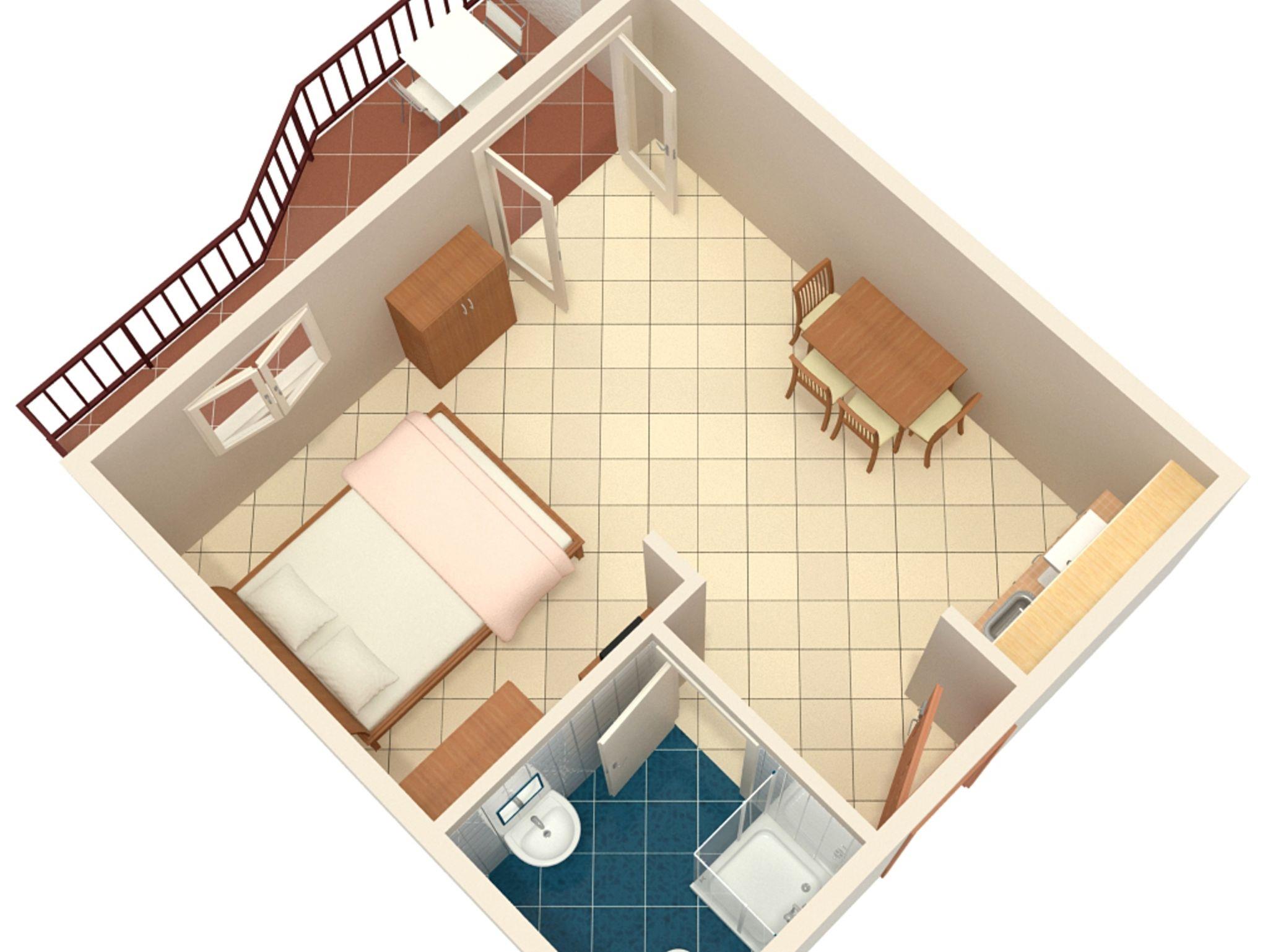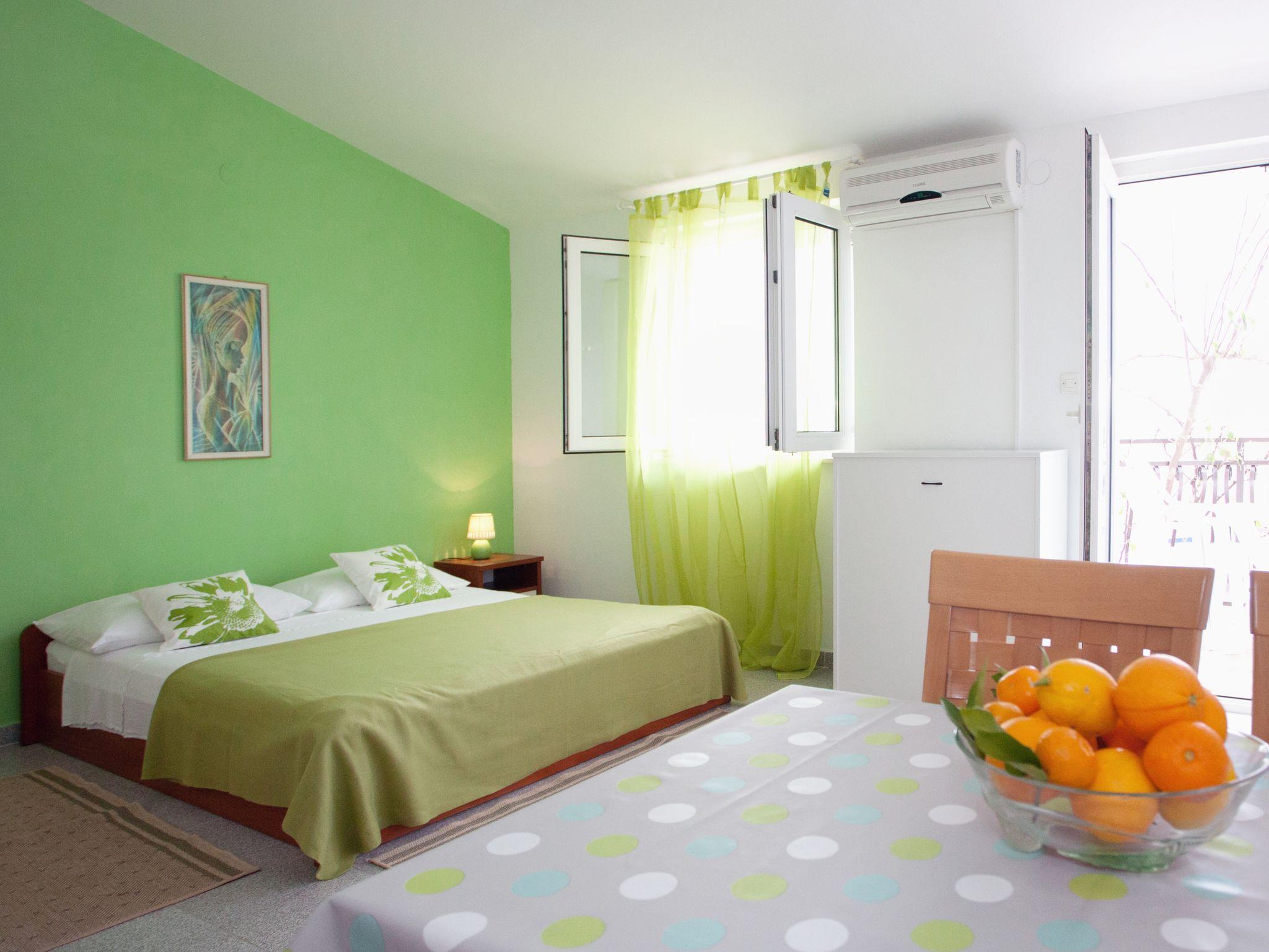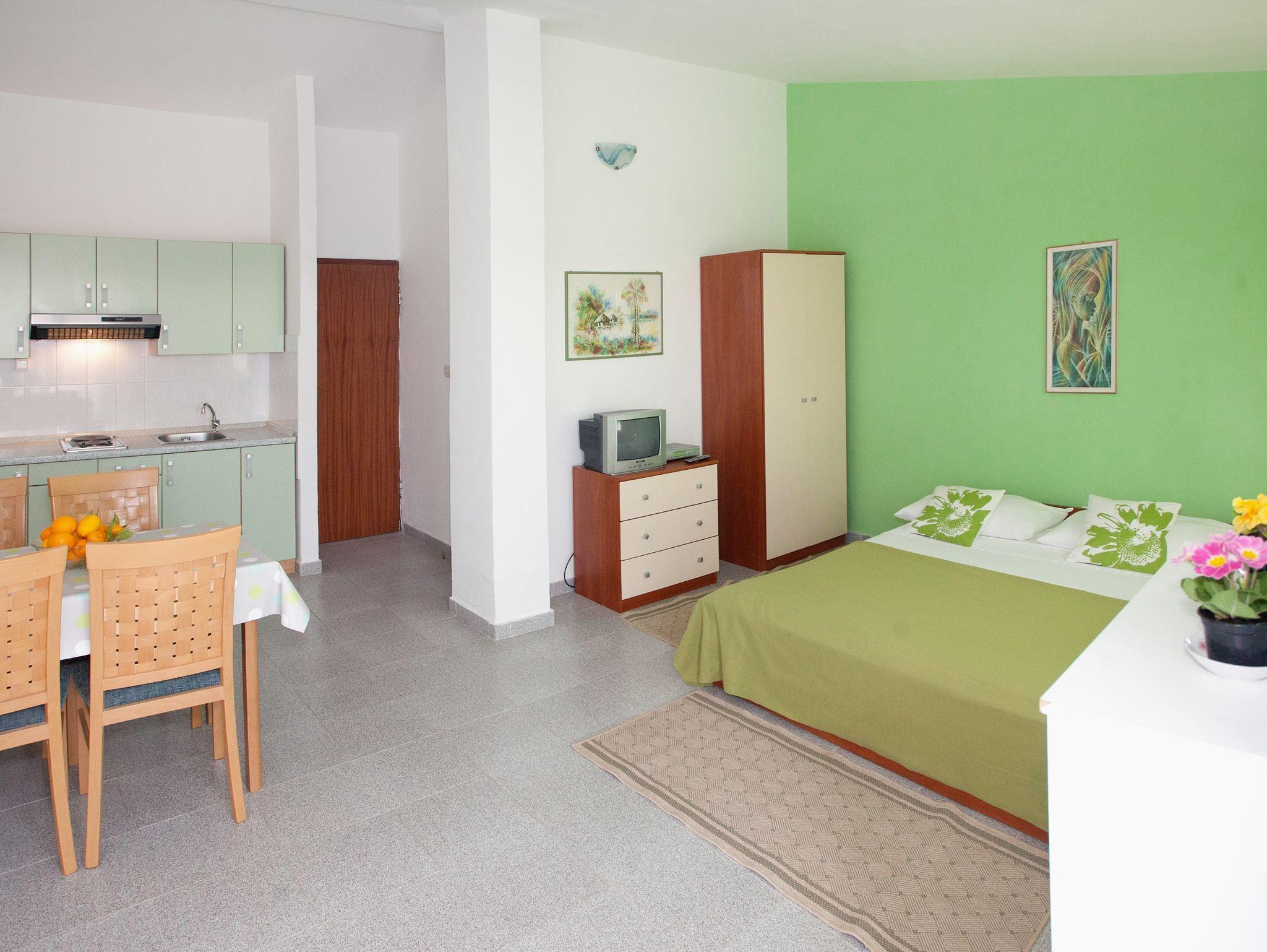 Studio bietet Platz für 3 Gäste. Die Betten sind in Schlafzimmern, die es 1 gibt, innerhalb einer Gesamtfläche von 25m2, angeordnet. Die Gäste haben eine eigene Terrasse zur Verfügung, auf der sie in warmen Sommernächten genießen können. Das Studio-Apartment bietet Meerblick. Es ist erlaubt, Speisen auf dem Gemeinschafts-Grill vorzubereiten. IM PREIS INBEGRIFFEN: Kurtaxe, Endreinigung, Klimatisierung, Parkplatz, Internet, Kinderbett. UNVERBINDLICHE ZUSÄTZLICHE KOSTEN: Zusatzbett (5,00 € pro Nacht). Die Verfügbarkeit zusätzlicher Dienstleistungen in Ihrem reservierten Termin und die Preise derselben (falls nicht aufgeführt) müssen im Voraus überprüft werden. Zusätzliche Dienstleistungen die in der Zahlungsaufforderung nicht aufgeführt sind werden direkt beim Vermieter bezahlt, angenommen der Gast nutzt auch diese.
