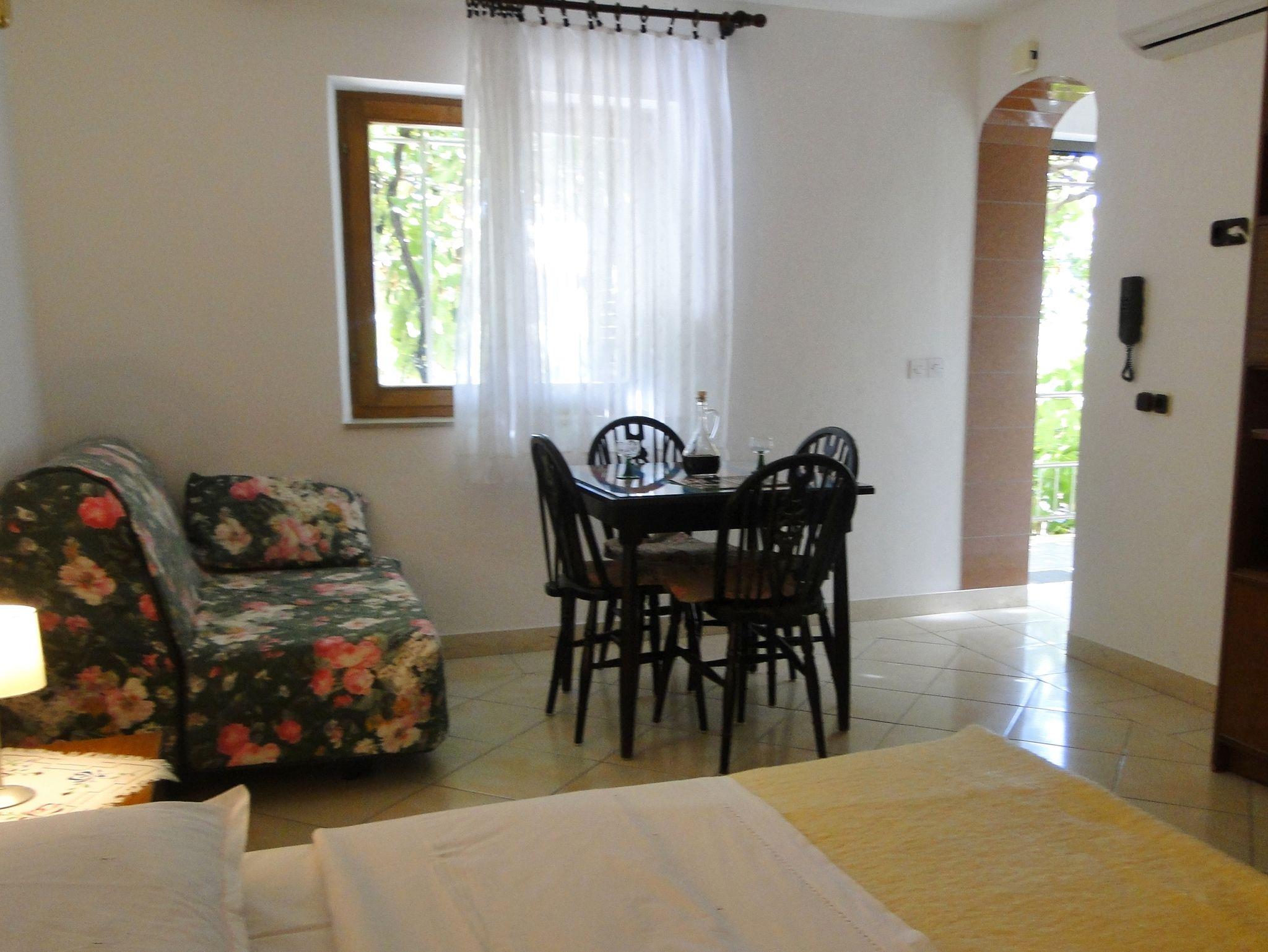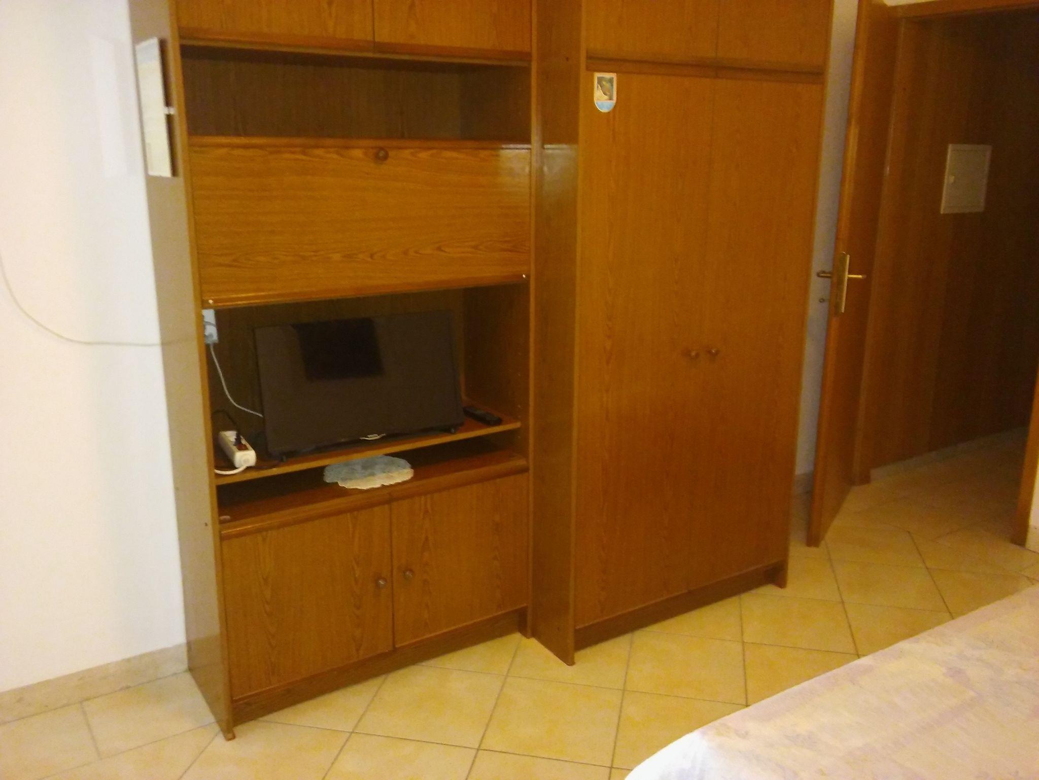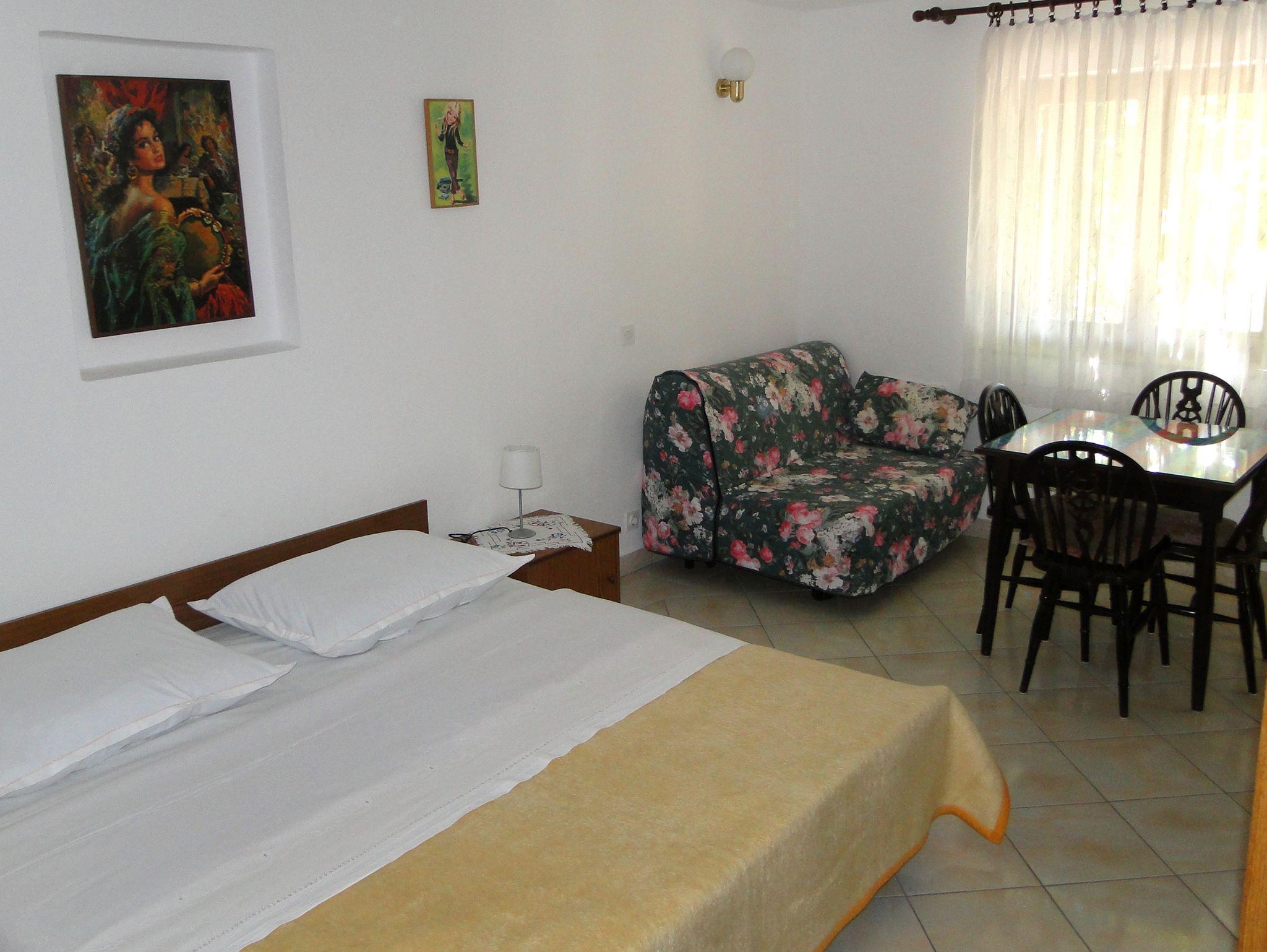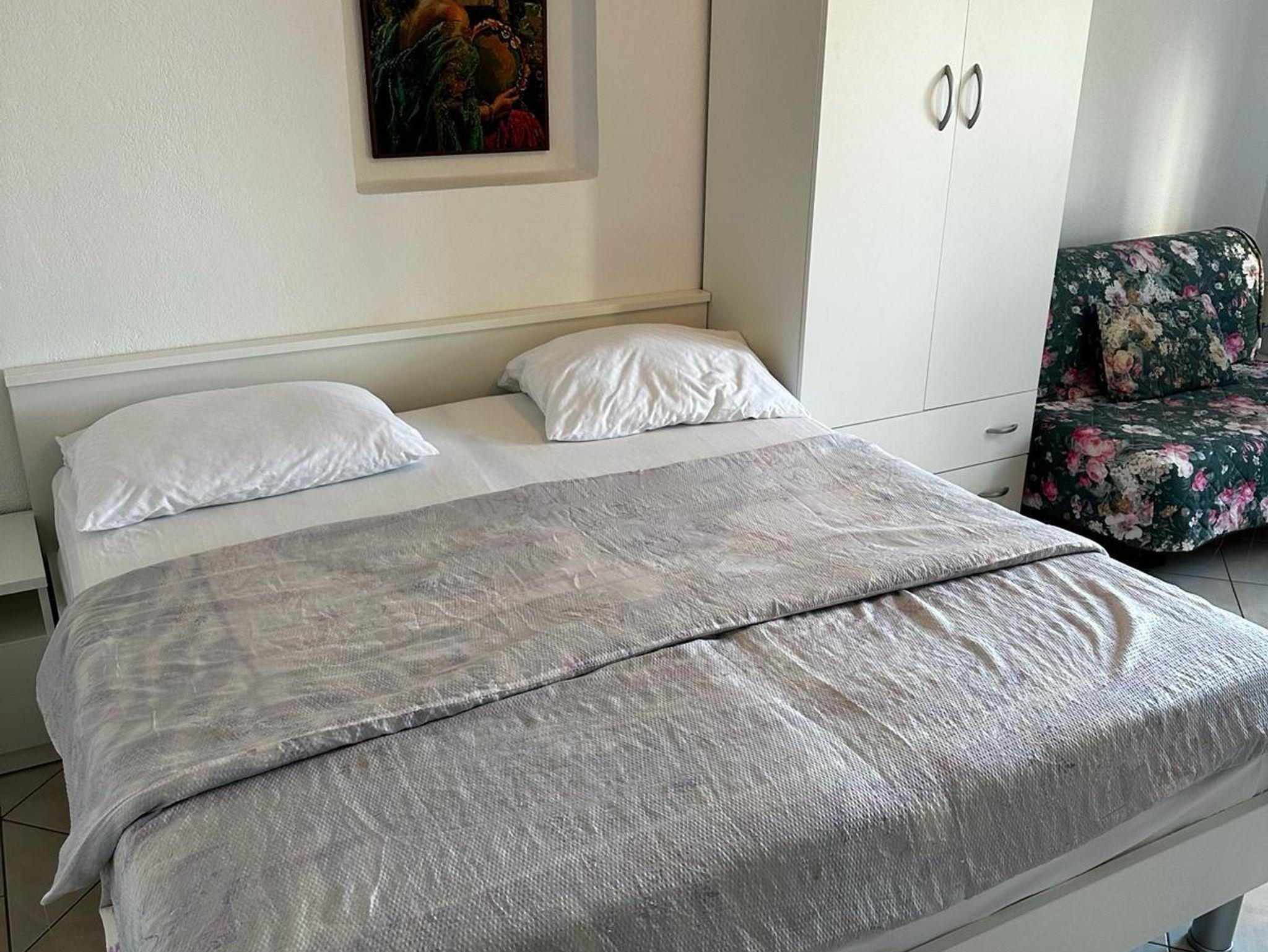 Studio bietet Platz für 4 Gäste. Die Betten sind in Schlafzimmern, die es 1 gibt, und in Esszimmer, innerhalb einer Gesamtfläche von 28m2, angeordnet. Die Gäste haben eine eigene Terrasse zur Verfügung, auf der sie in warmen Sommernächten genießen können. Das Studio-Apartment bietet Meerblick. Es ist erlaubt, Speisen auf dem Gemeinschafts-Grill vorzubereiten. Während ihres Aufenthalts können Gäste das gemeinsam zur Nutzung stehende Schwimmbad benutzen. IM PREIS INBEGRIFFEN: Kurtaxe, Endreinigung, Klimatisierung, Pool, Parkplatz, Internet, Bügeleisen, Bügelbrett, Föhn. VERBINDLICHE ZUSÄTZLICHE KOSTEN: Aufzahlung für Kurzaufenthalte (prozentualer Zuschlag pro Nächtigungsanzahl: 30% - 1, 20% - 2, 10% - 3). UNVERBINDLICHE ZUSÄTZLICHE KOSTEN: Wäschewaschen (3,00 € Waschen). Die Verfügbarkeit zusätzlicher Dienstleistungen in Ihrem reservierten Termin und die Preise derselben (falls nicht aufgeführt) müssen im Voraus überprüft werden. Zusätzliche Dienstleistungen die in der Zahlungsaufforderung nicht aufgeführt sind werden direkt beim Vermieter bezahlt, angenommen der Gast nutzt auch diese.