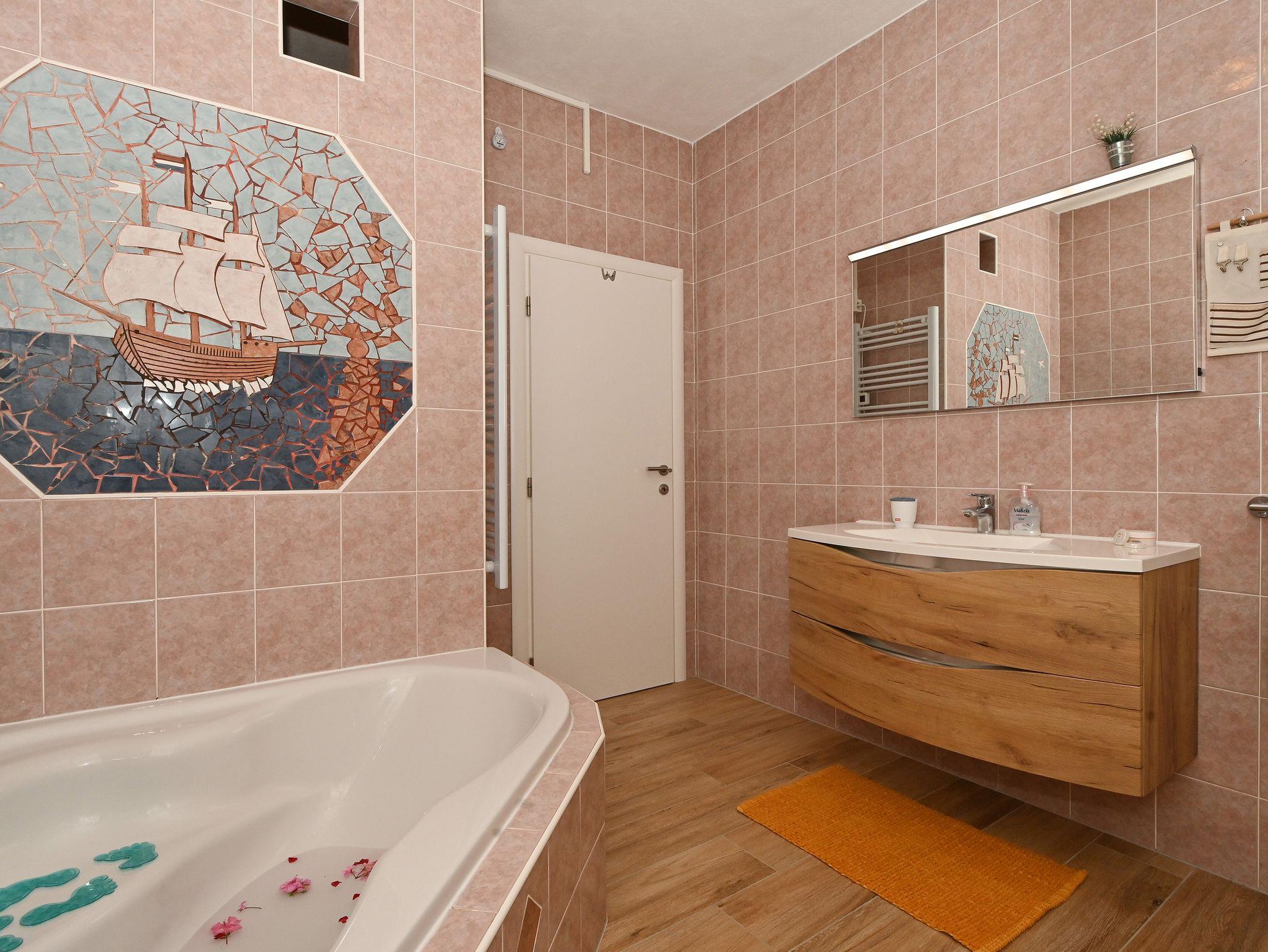 Ferienwohnung bietet Platz für 7 Gäste. Die Betten sind in Schlafzimmern, die es 3 gibt, innerhalb einer Gesamtfläche von 101m2, angeordnet. Die Gäste haben eine eigene Terrasse zur Verfügung, auf der sie in warmen Sommernächten genießen können. Das Apartment bietet Meerblick. Es ist erlaubt, Speisen auf dem Gemeinschafts-Grill vorzubereiten. IM PREIS INBEGRIFFEN: Kurtaxe, Endreinigung, Klimatisierung, Parkplatz, Internet, Kinderbett, Bügeleisen, Bügelbrett, Föhn. UNVERBINDLICHE ZUSÄTZLICHE KOSTEN: Zusatzbett (20,00 € pro Nacht). Die Verfügbarkeit zusätzlicher Dienstleistungen in Ihrem reservierten Termin und die Preise derselben (falls nicht aufgeführt) müssen im Voraus überprüft werden. Zusätzliche Dienstleistungen die in der Zahlungsaufforderung nicht aufgeführt sind werden direkt beim Vermieter bezahlt, angenommen der Gast nutzt auch diese.