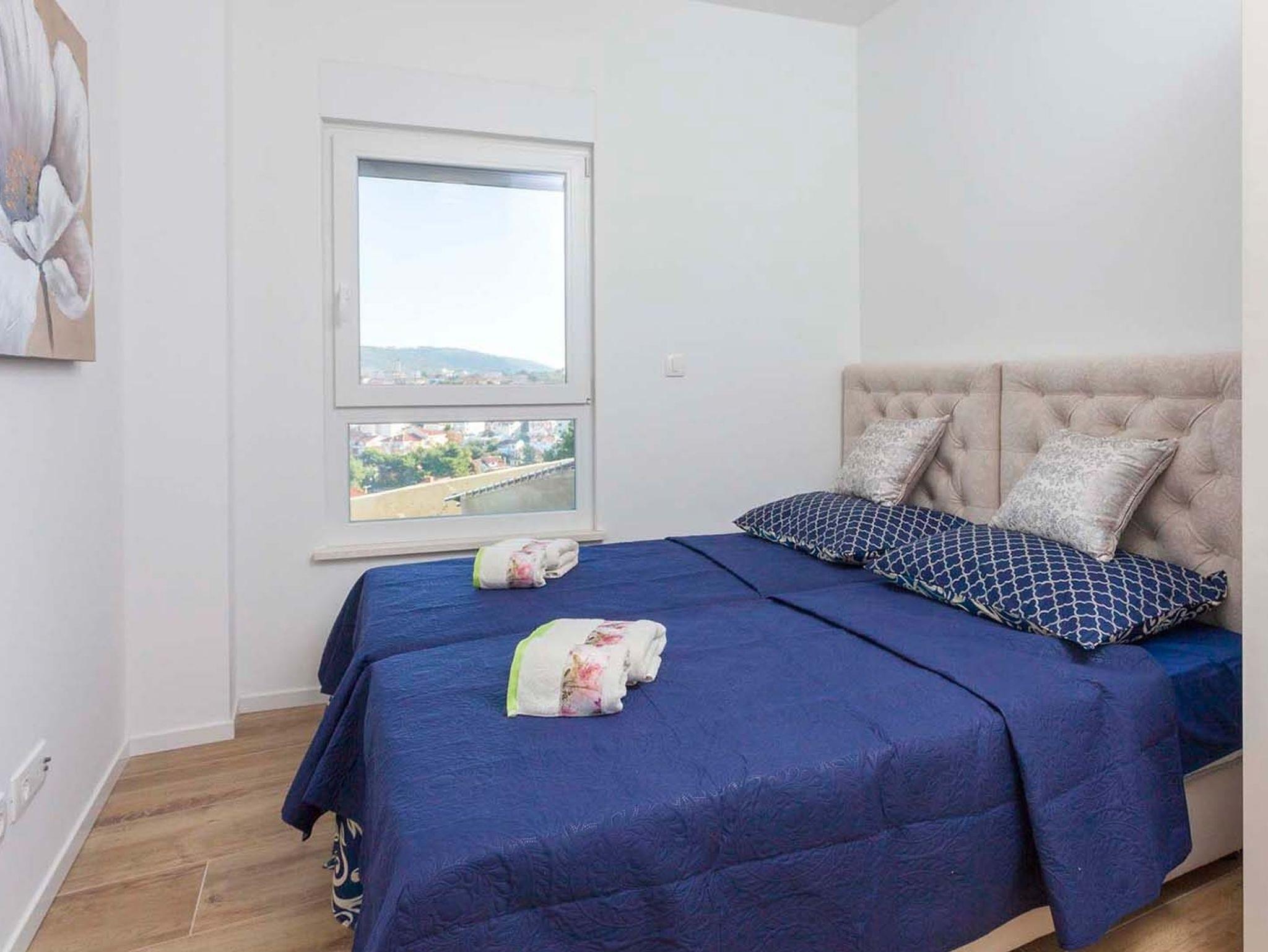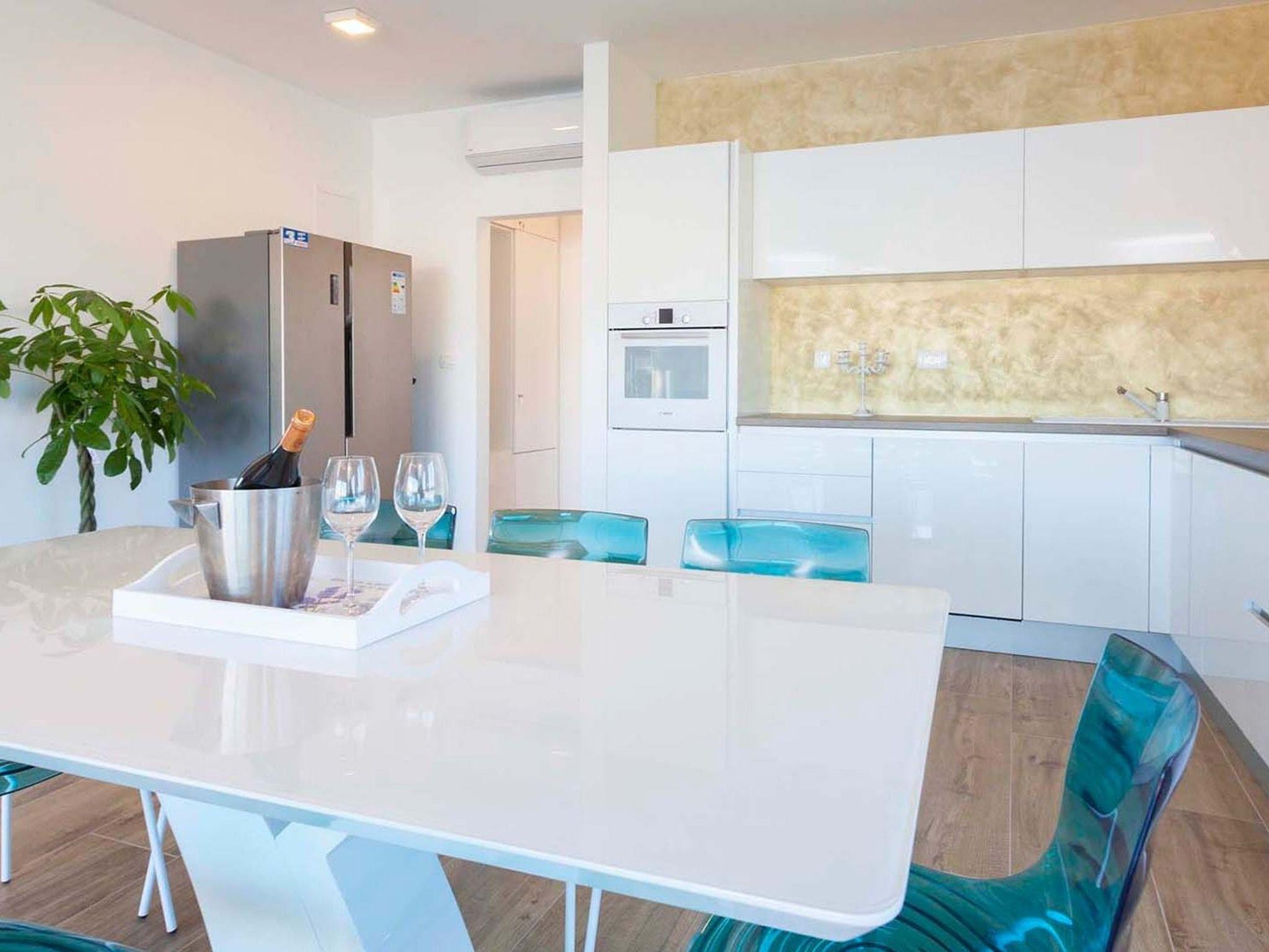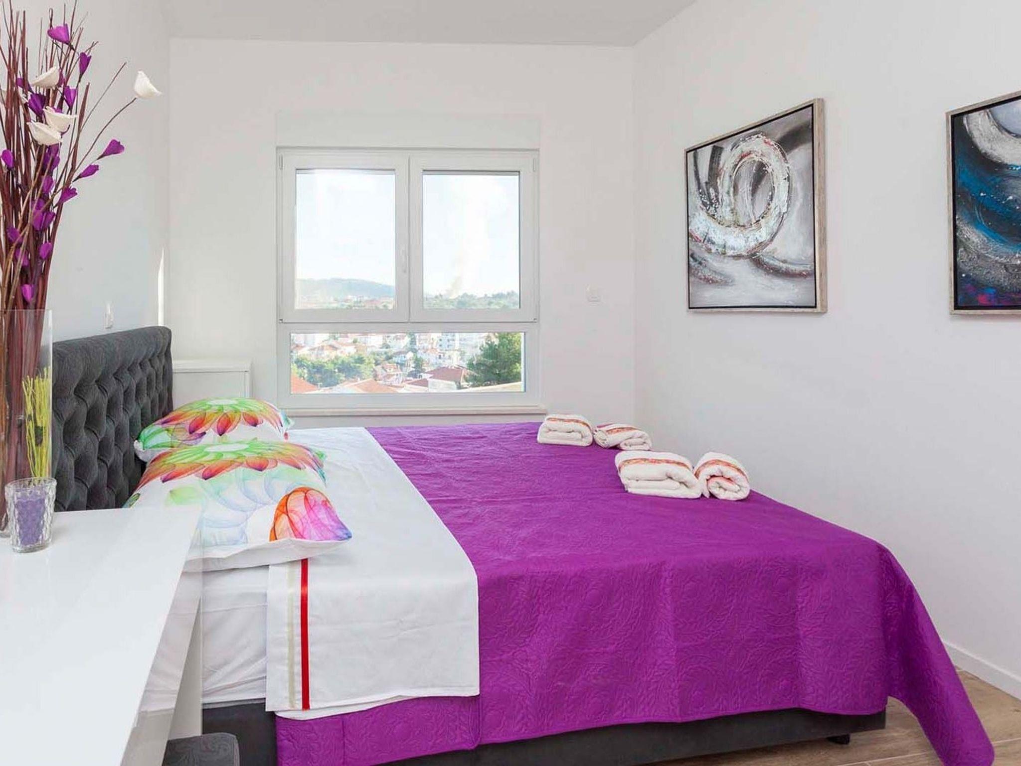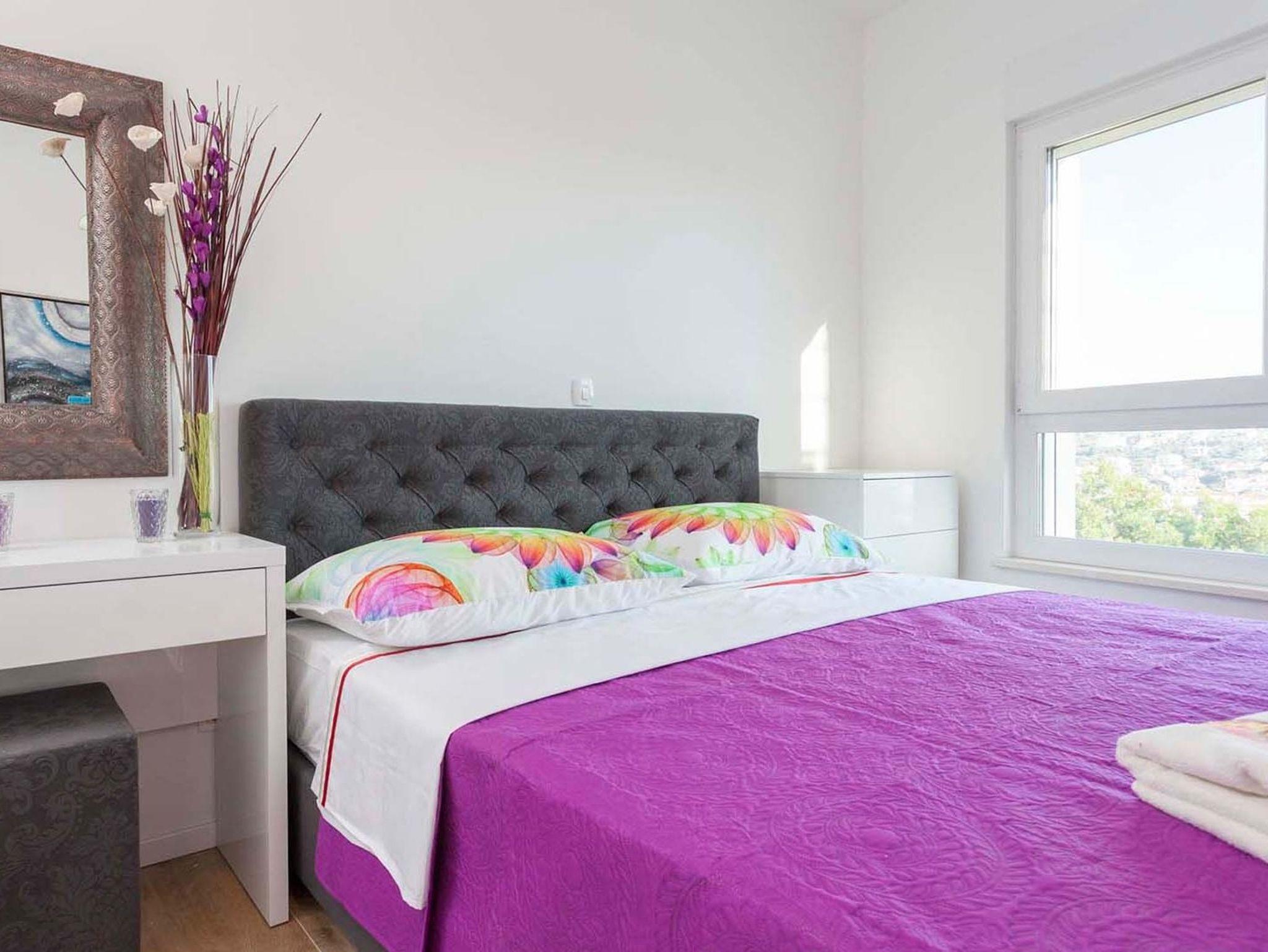 Ferienwohnung bietet Platz für 6 Gäste. Die Betten sind in Schlafzimmern, die es 3 gibt, innerhalb einer Gesamtfläche von 122m2, angeordnet. Die Gäste haben eine eigene Terrasse zur Verfügung, auf der sie in warmen Sommernächten genießen können. Das Apartment bietet Meerblick. Für vollen Genuss und Entspannung gibt es einen privaten Grill für Gäste dieser Unterkunft. Während ihres Aufenthalts können Gäste das gemeinsam zur Nutzung stehende Schwimmbad benutzen. IM PREIS INBEGRIFFEN: Kurtaxe, Endreinigung, Klimatisierung, Pool, Parkplatz, Internet, Kinderbett, Bügeleisen, Bügelbrett, Föhn, tragbarer Grill. Die Verfügbarkeit zusätzlicher Dienstleistungen in Ihrem reservierten Termin und die Preise derselben (falls nicht aufgeführt) müssen im Voraus überprüft werden. Zusätzliche Dienstleistungen die in der Zahlungsaufforderung nicht aufgeführt sind werden direkt beim Vermieter bezahlt, angenommen der Gast nutzt auch diese.