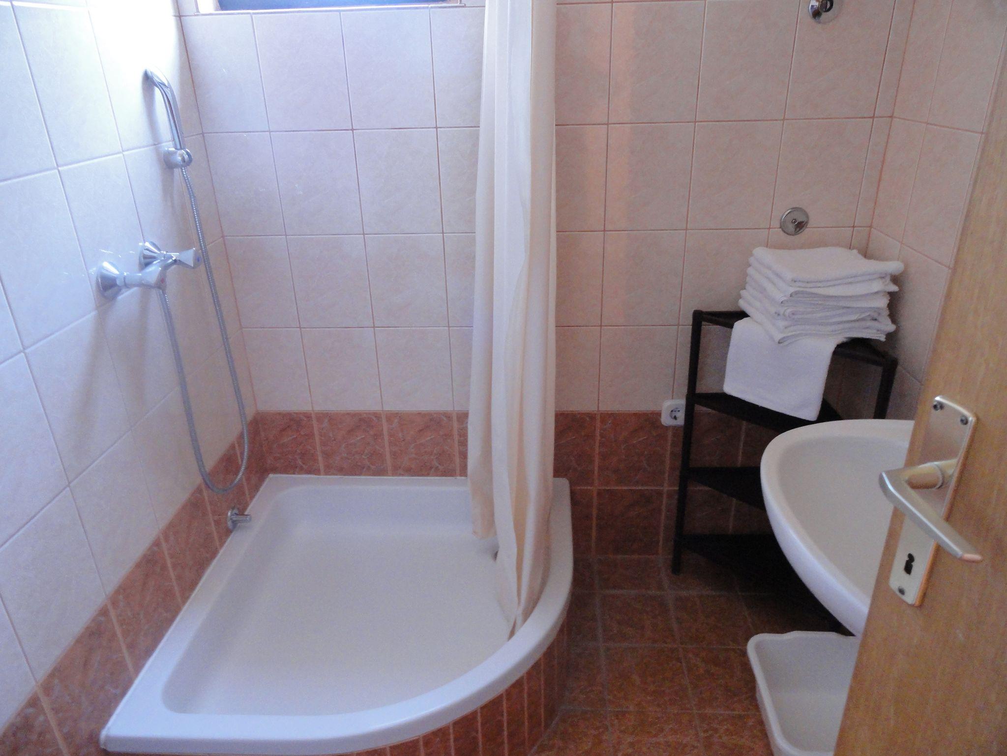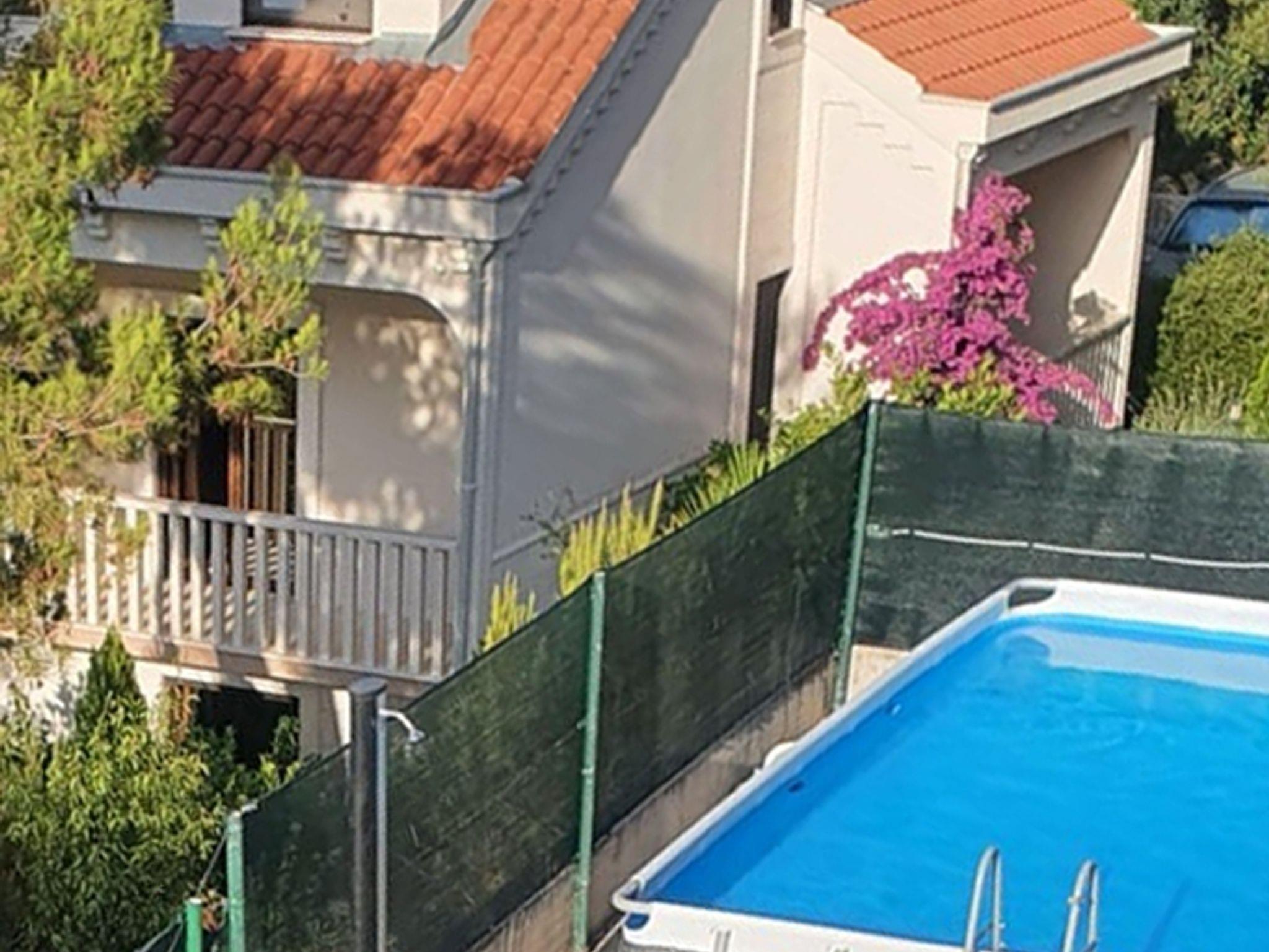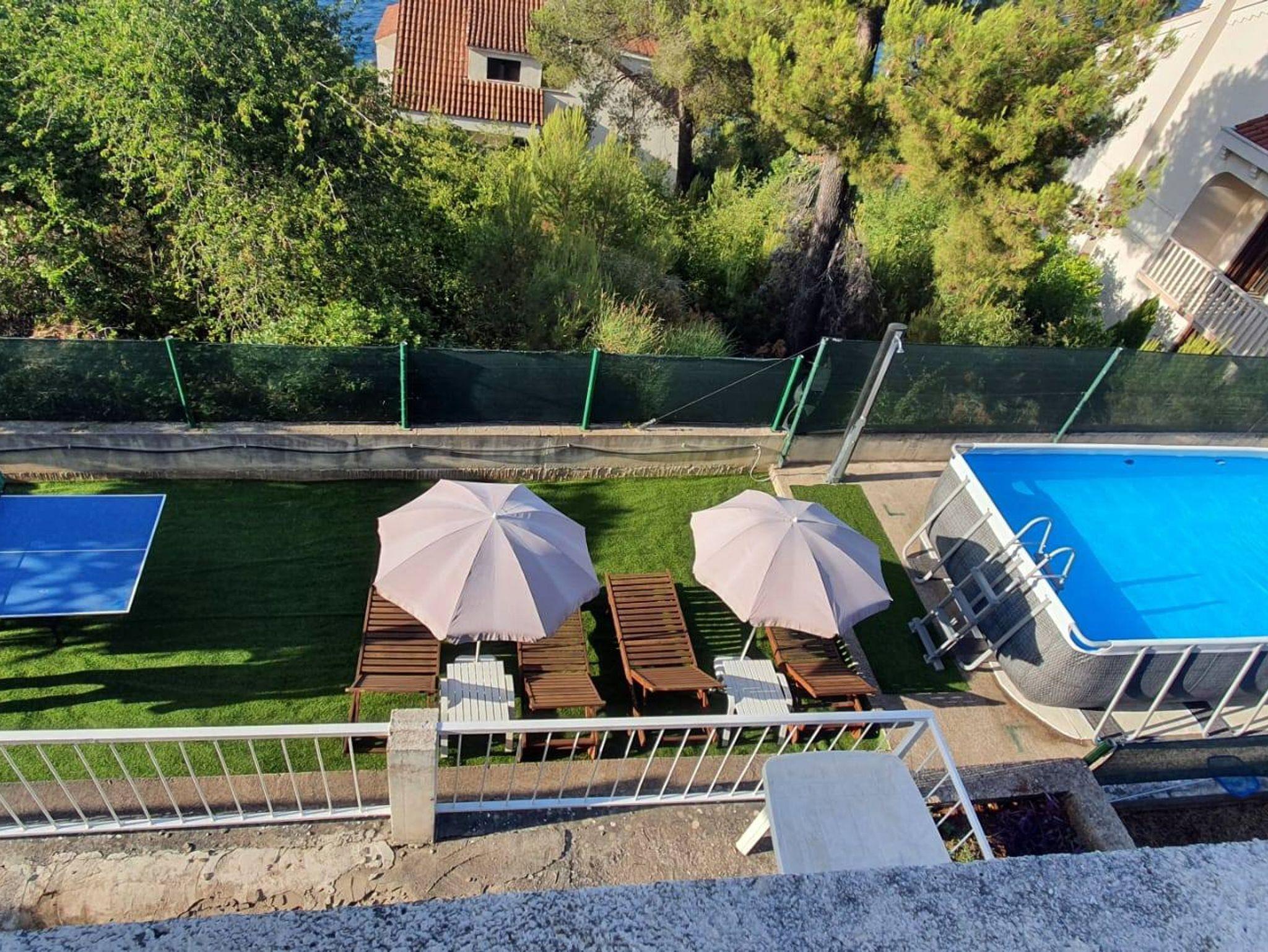 Umgebung des Objekts (Ordentlich), Hof (450m2, Kinderbereich, Sitzbereich), Parkplatz (Anzahl der Parkplätze: 3, Entfernung vom Objekt: 70 m), Pool: privat, Wassertyp: Süßwasser, WiFi Internet, Föhn, Bügeleisen, Liegestühle, Kinderbett