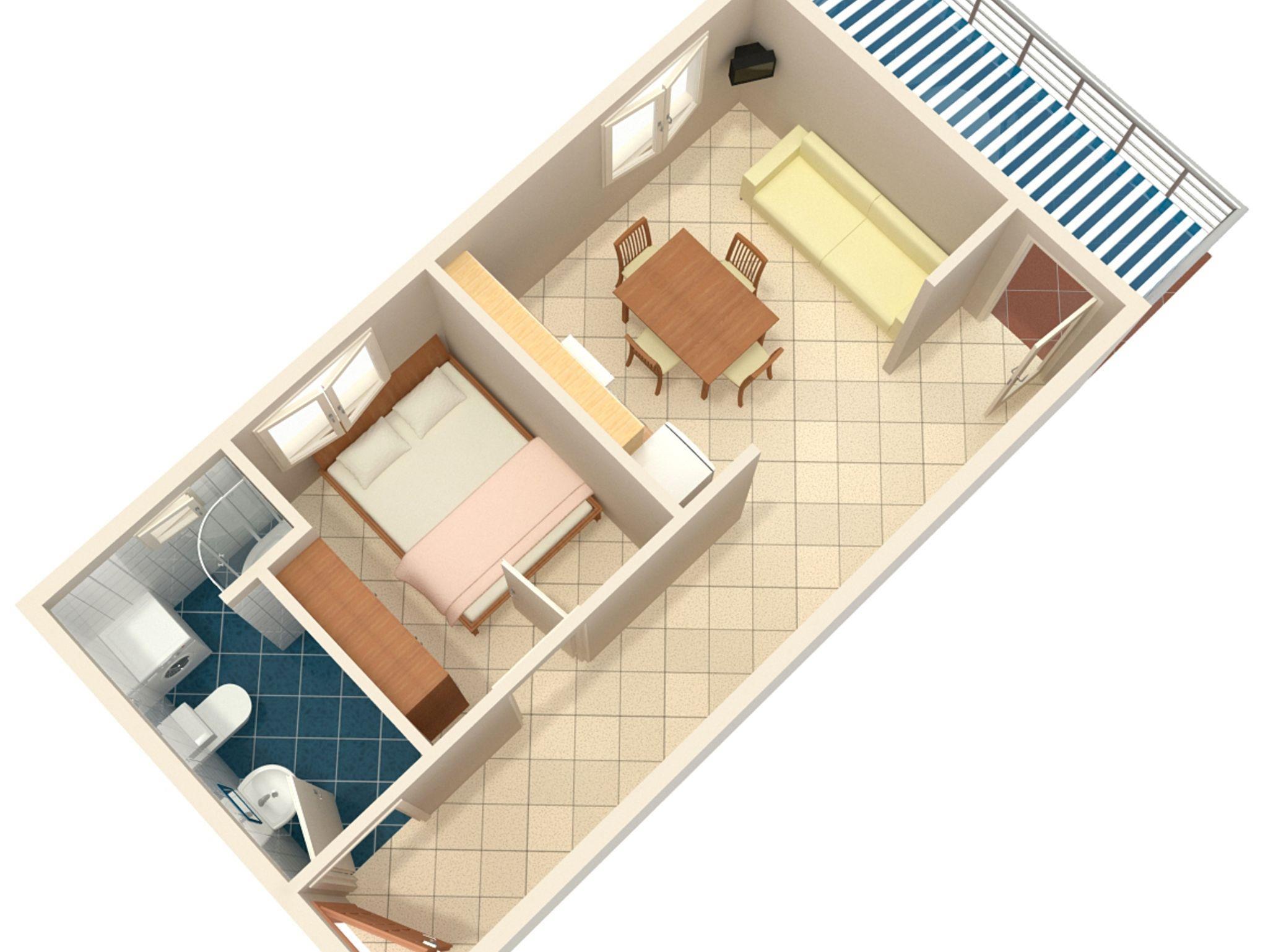 Ferienwohnung bietet Platz für 3 Gäste. Die Betten sind in Schlafzimmern, die es 1 gibt, und in Wohnzimmer, innerhalb einer Gesamtfläche von 32m2, angeordnet. Die Gäste haben eine eigene Terrasse zur Verfügung, auf der sie in warmen Sommernächten genießen können. Das Apartment bietet Meerblick. IM PREIS INBEGRIFFEN: Kurtaxe, Endreinigung, Klimatisierung, Parkplatz, Internet. VERBINDLICHE ZUSÄTZLICHE KOSTEN: Aufzahlung für Kurzaufenthalte (prozentualer Zuschlag pro Nächtigungsanzahl: 30% - 1, 20% - 2, 10% - 3). Die Verfügbarkeit zusätzlicher Dienstleistungen in Ihrem reservierten Termin und die Preise derselben (falls nicht aufgeführt) müssen im Voraus überprüft werden. Zusätzliche Dienstleistungen die in der Zahlungsaufforderung nicht aufgeführt sind werden direkt beim Vermieter bezahlt, angenommen der Gast nutzt auch diese.