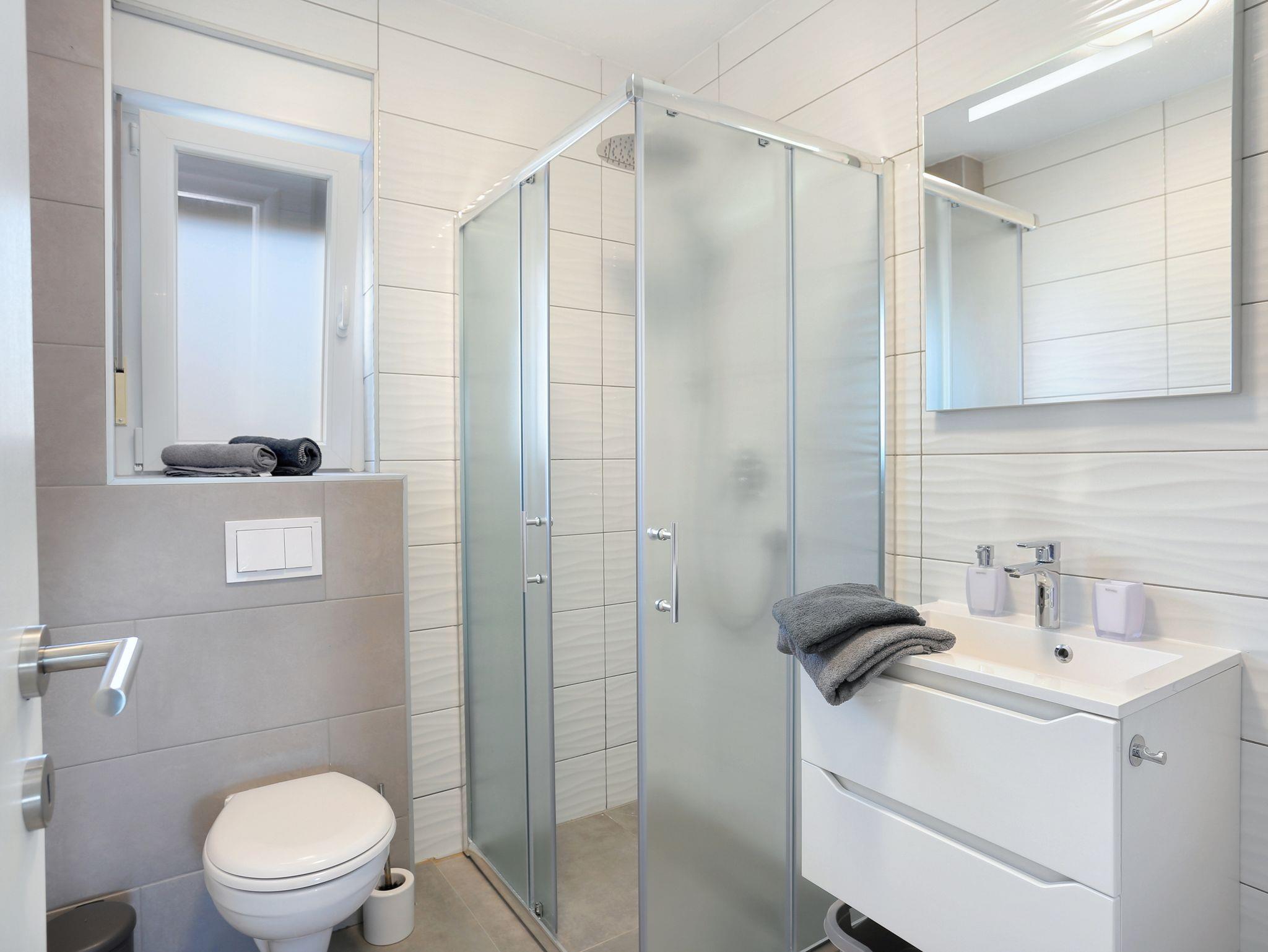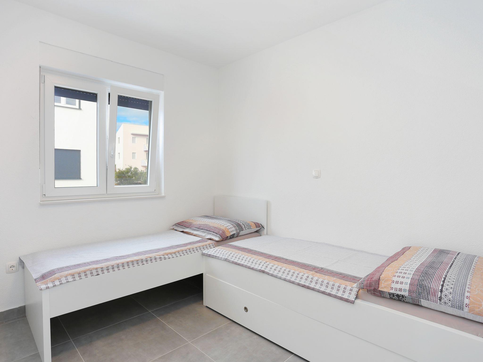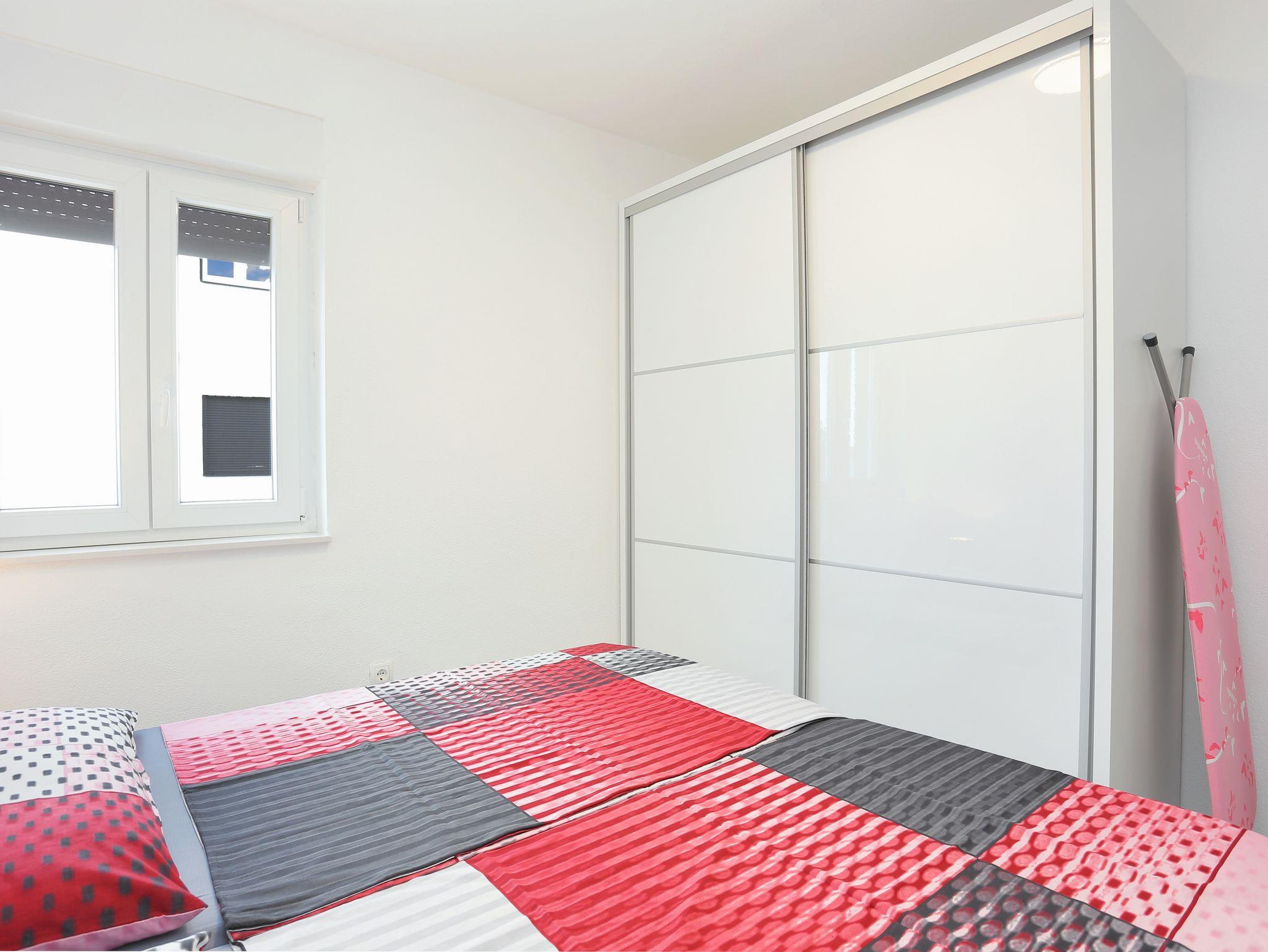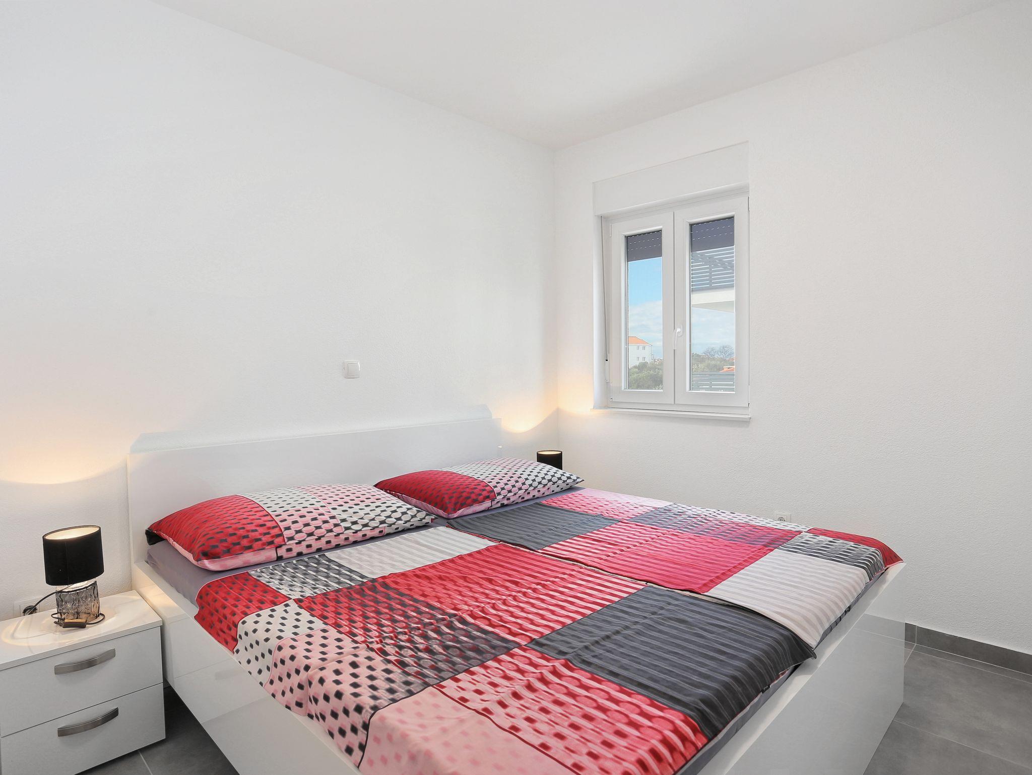 Ferienwohnung bietet Platz für 4 Gäste. Die Betten sind in Schlafzimmern, die es 2 gibt, innerhalb einer Gesamtfläche von 53m2, angeordnet. Die Gäste haben eine eigene Terrasse zur Verfügung, auf der sie in warmen Sommernächten genießen können. Das Apartment bietet Meerblick. Es ist erlaubt, Speisen auf dem Gemeinschafts-Grill vorzubereiten. Während ihres Aufenthalts können Gäste das gemeinsam zur Nutzung stehende Schwimmbad benutzen. Unterkunftseinheit hat Räume, die von dem Rest der Einheit abgetrennt werden. In der gebuchten Unterkunftseinheit zahlt man am Ort ein Depositum ( der Preis ist an der Internetseite angeführt ). IM PREIS INBEGRIFFEN: Kurtaxe, Endreinigung, Klimatisierung, Pool, Parkplatz, Internet, Bügeleisen, Bügelbrett, Föhn, 1 Bett für Kinder (im Preis enthalten). VERBINDLICHE ZUSÄTZLICHE KOSTEN: Kaution (200,00 € Einmalzahlung), Aufzahlung für Kurzaufenthalte (prozentualer Zuschlag pro Nächtigungsanzahl: 30% - 1, 20% - 2, 10% - 3). Die Verfügbarkeit zusätzlicher Dienstleistungen in Ihrem reservierten Termin und die Preise derselben (falls nicht aufgeführt) müssen im Voraus überprüft werden. Zusätzliche Dienstleistungen die in der Zahlungsaufforderung nicht aufgeführt sind werden direkt beim Vermieter bezahlt, angenommen der Gast nutzt auch diese. Ermäßigung auf den Grundpreis: Gratistag 14=13 (bei einem Aufenthalt von 14 Tagen oder mehr erhalten Sie einen Gratistag für den Aufenthalt bis 31.12.26).