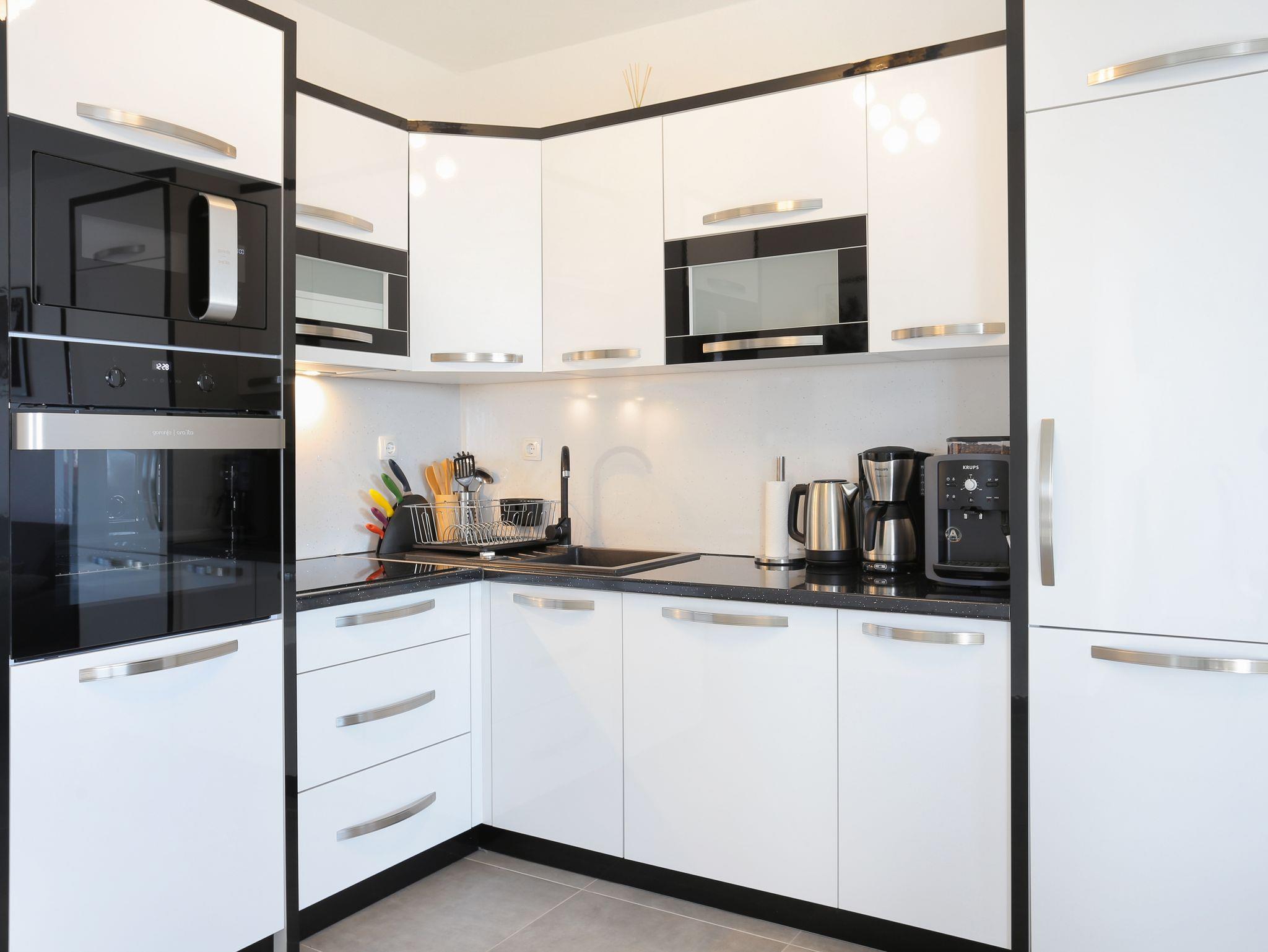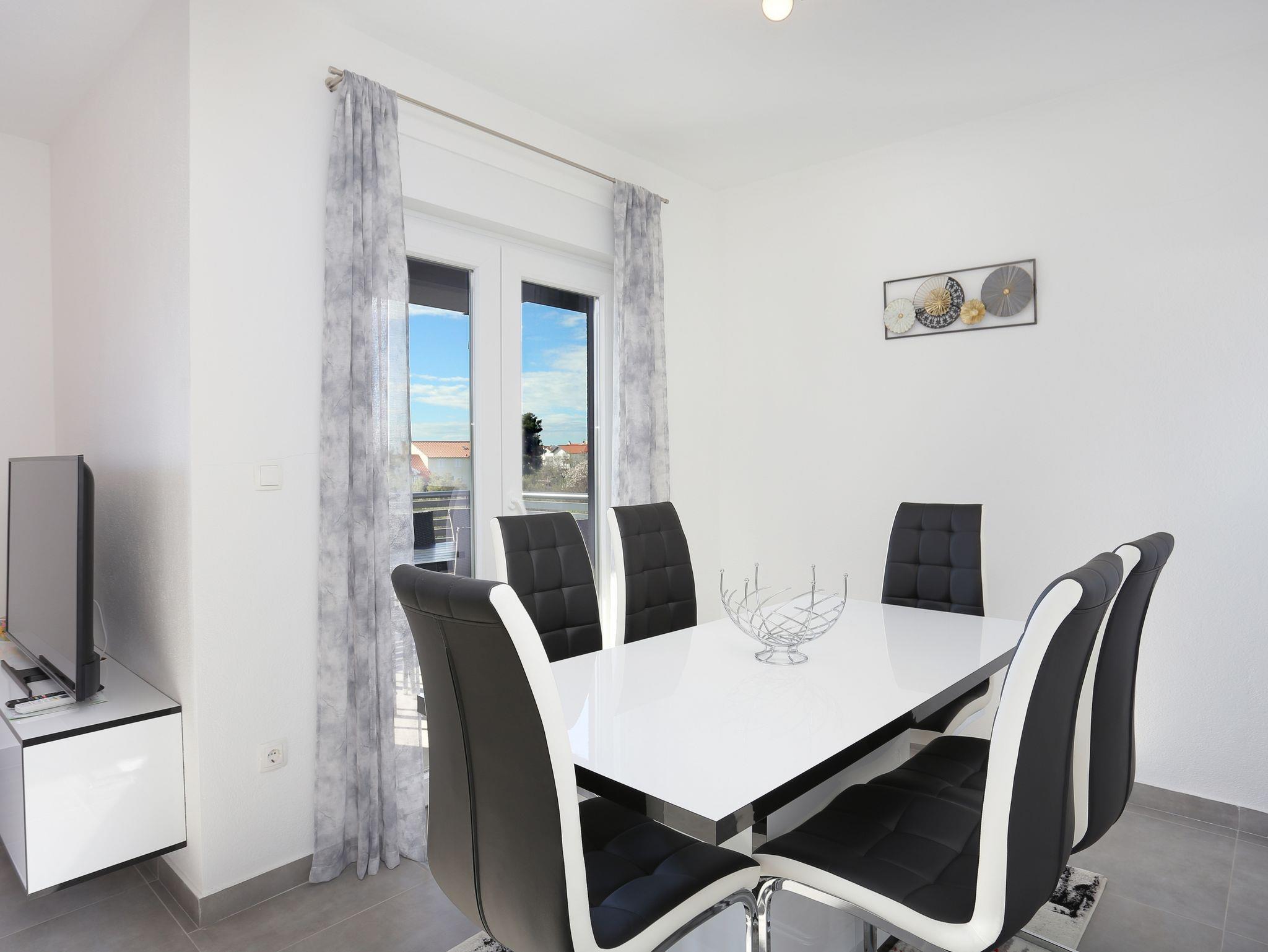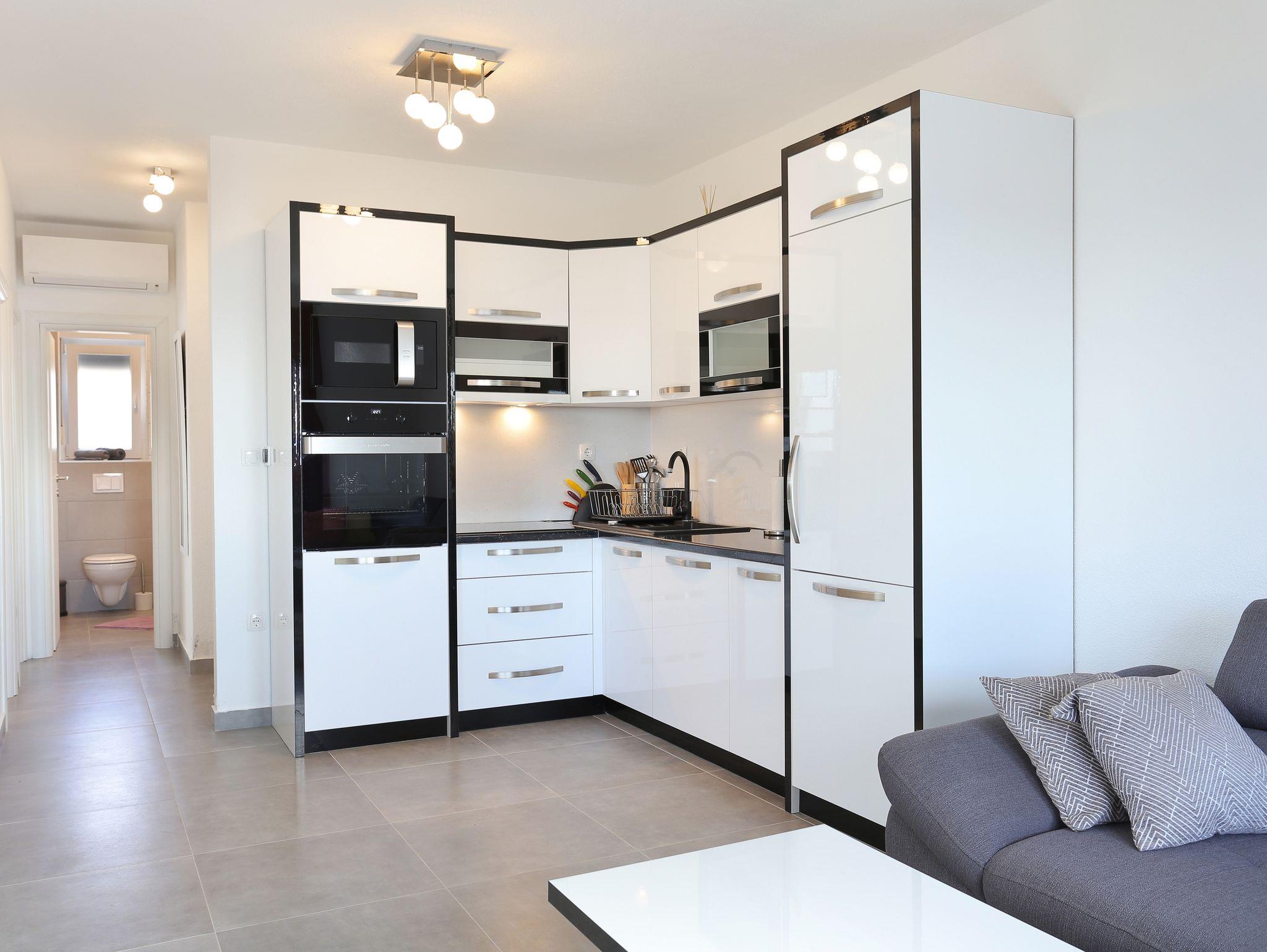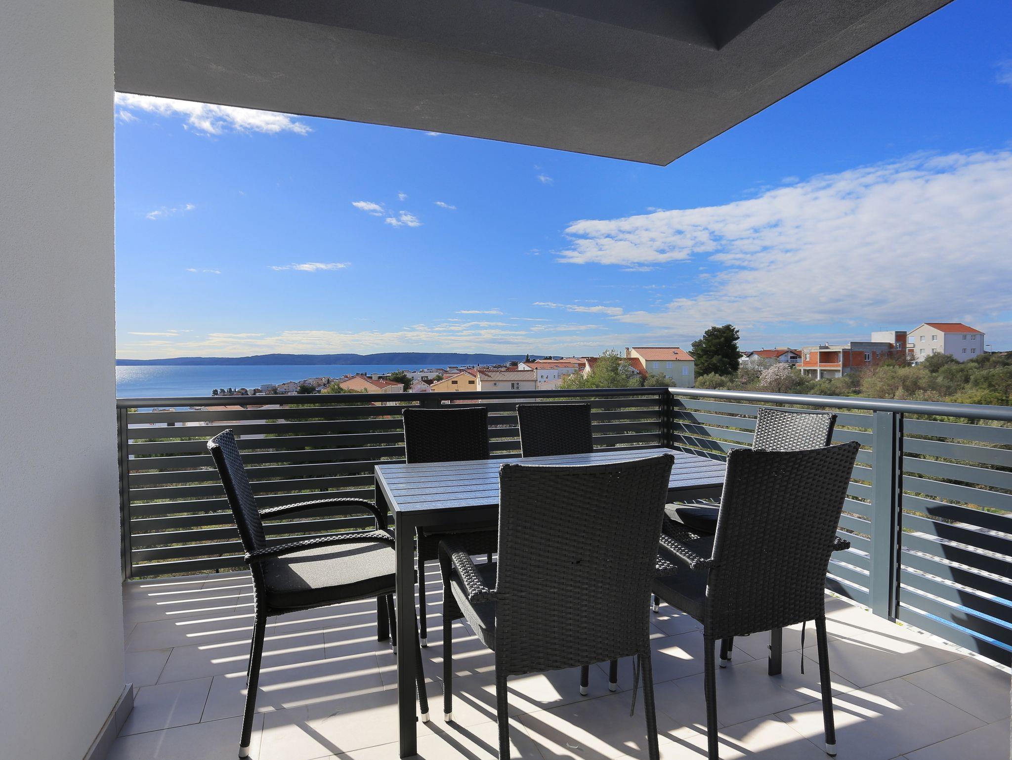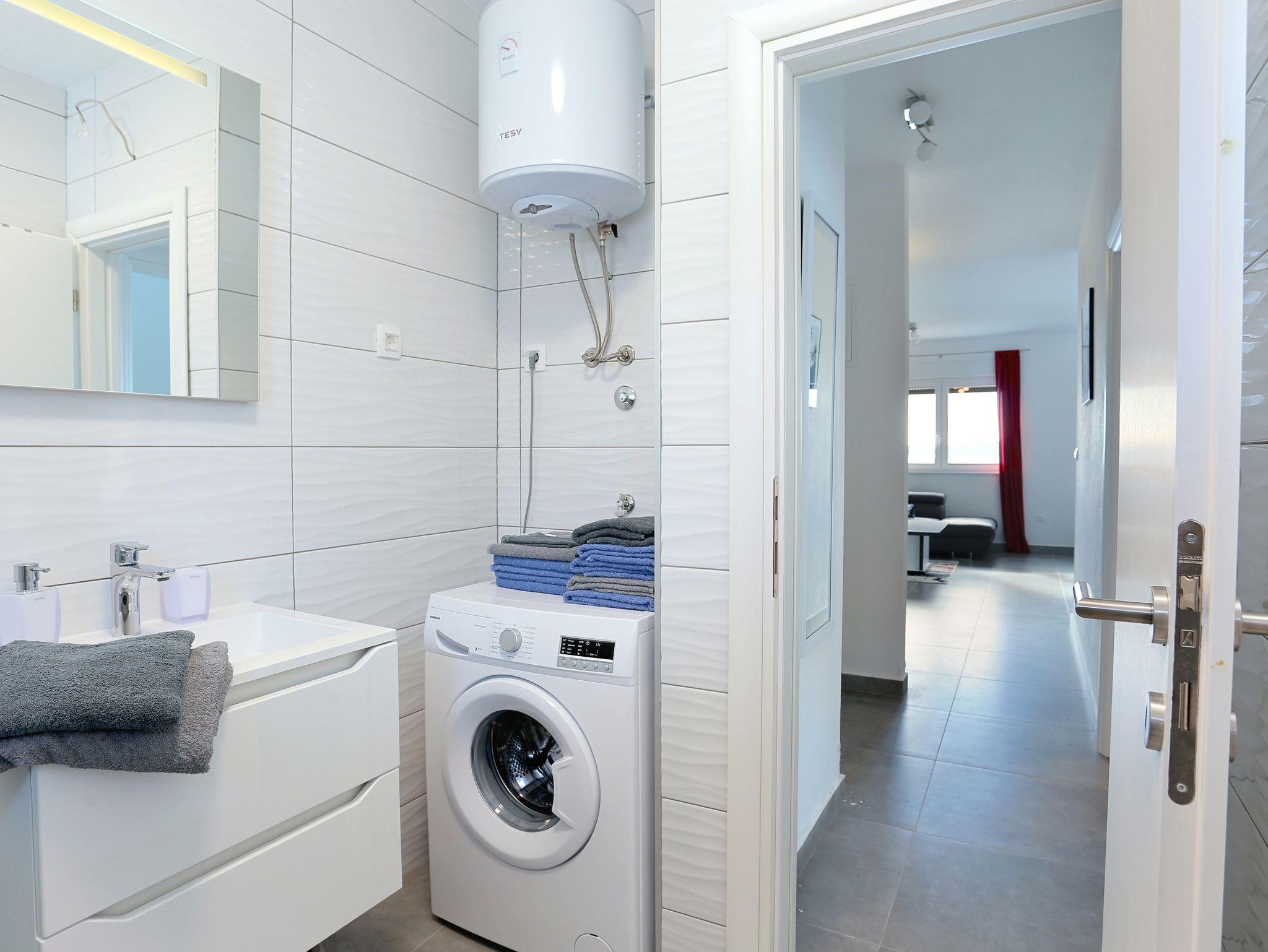 Ferienwohnung bietet Platz für 4 Gäste. Die Betten sind in Schlafzimmern, die es 2 gibt, innerhalb einer Gesamtfläche von 53m2, angeordnet. Die Gäste haben eine eigene Terrasse zur Verfügung, auf der sie in warmen Sommernächten genießen können. Das Apartment bietet Meerblick. Es ist erlaubt, Speisen auf dem Gemeinschafts-Grill vorzubereiten. Während ihres Aufenthalts können Gäste das gemeinsam zur Nutzung stehende Schwimmbad benutzen. Unterkunftseinheit hat Räume, die von dem Rest der Einheit abgetrennt werden. In der gebuchten Unterkunftseinheit zahlt man am Ort ein Depositum ( der Preis ist an der Internetseite angeführt ). IM PREIS INBEGRIFFEN: Kurtaxe, Endreinigung, Klimatisierung, Pool, Parkplatz, Internet, Bügeleisen, Bügelbrett, Föhn, 1 Bett für Kinder (im Preis enthalten). VERBINDLICHE ZUSÄTZLICHE KOSTEN: Kaution (200,00 € Einmalzahlung), Aufzahlung für Kurzaufenthalte (prozentualer Zuschlag pro Nächtigungsanzahl: 30% - 1, 20% - 2, 10% - 3). Die Verfügbarkeit zusätzlicher Dienstleistungen in Ihrem reservierten Termin und die Preise derselben (falls nicht aufgeführt) müssen im Voraus überprüft werden. Zusätzliche Dienstleistungen die in der Zahlungsaufforderung nicht aufgeführt sind werden direkt beim Vermieter bezahlt, angenommen der Gast nutzt auch diese. Ermäßigung auf den Grundpreis: Gratistag 14=13 (bei einem Aufenthalt von 14 Tagen oder mehr erhalten Sie einen Gratistag für den Aufenthalt bis 31.12.26).
