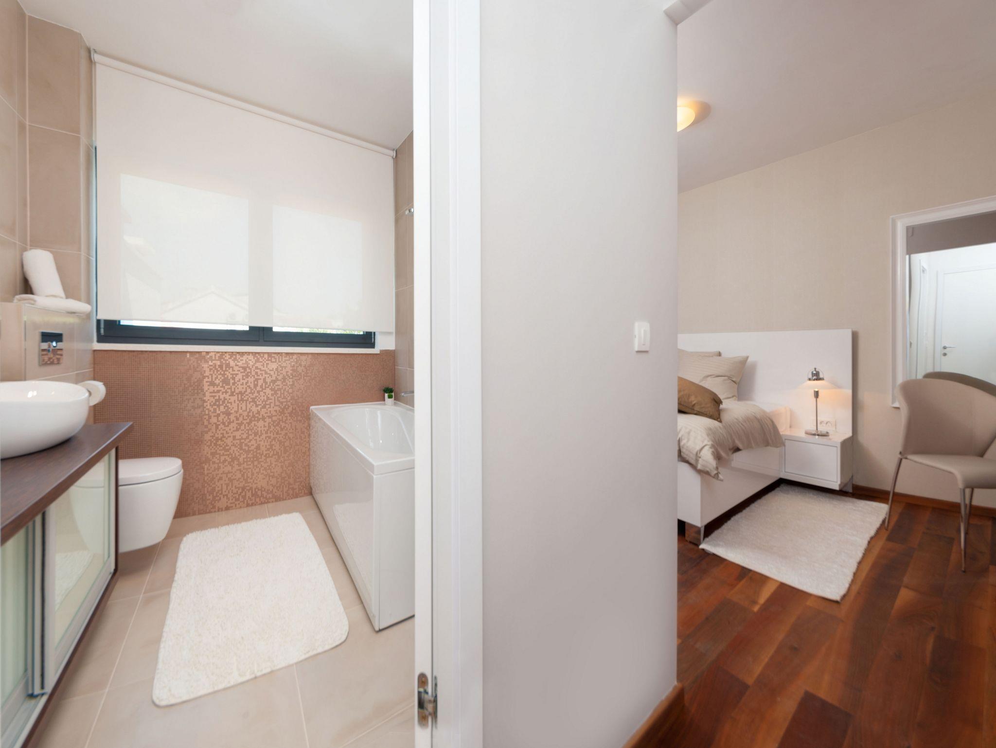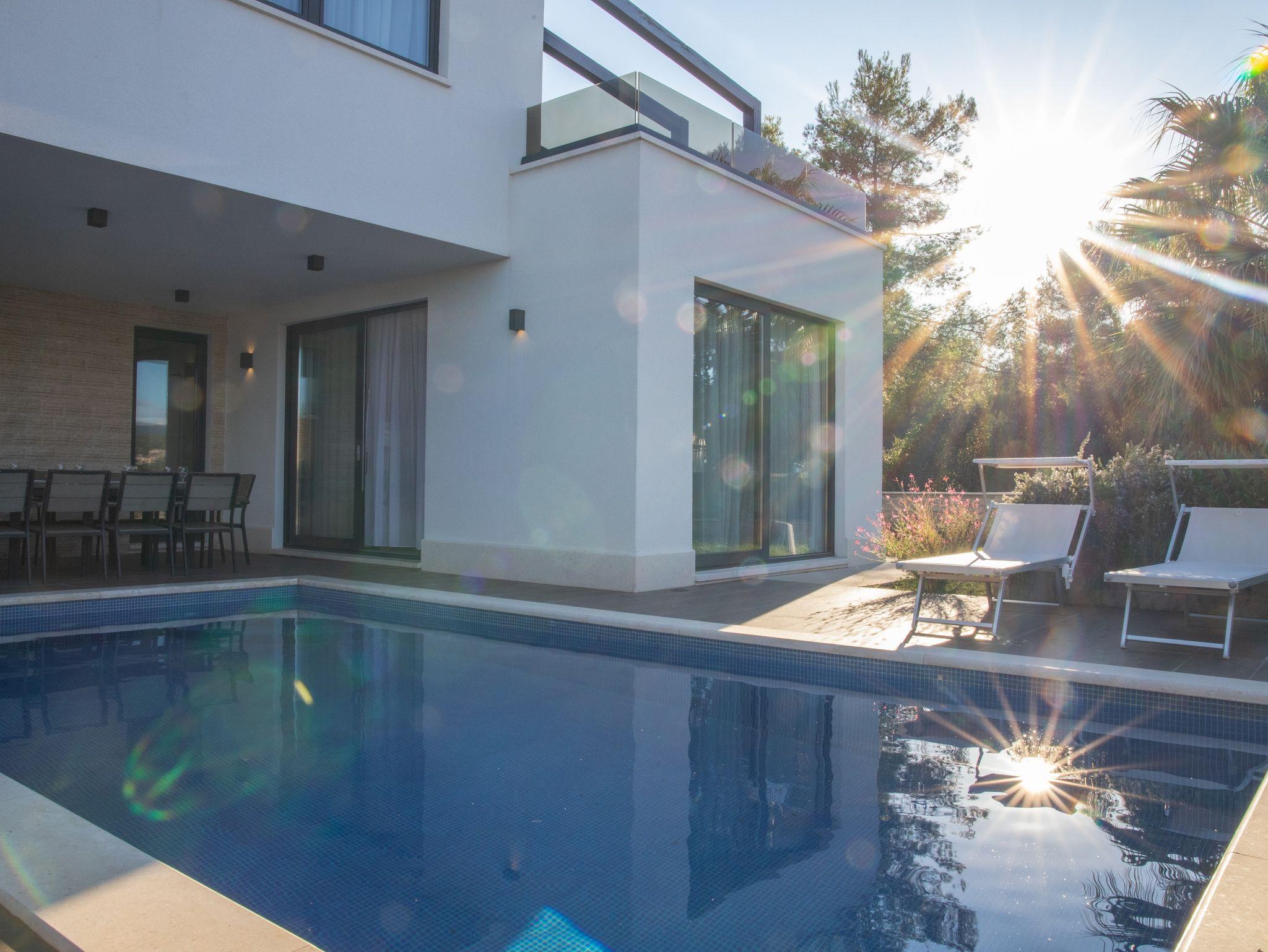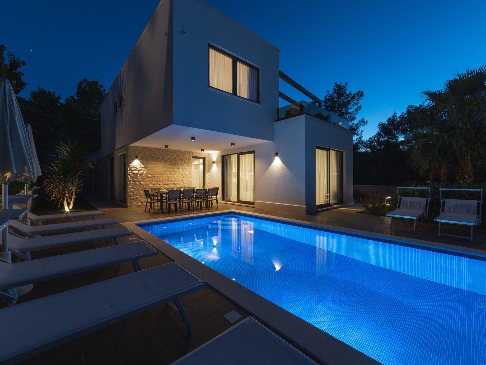 Haus bietet Platz für 11 Gäste. Die Betten sind in Schlafzimmern, die es 6 gibt, innerhalb einer Gesamtfläche von 185m2, angeordnet. Die Gäste haben eine eigene Terrasse zur Verfügung, auf der sie in warmen Sommernächten genießen können. Das Haus bietet Meerblick. Für vollen Genuss und Entspannung gibt es einen privaten Grill für Gäste dieser Unterkunft. Während ihres Aufenthalts können sich Gäste im privaten Schwimmbad entspannen. IM PREIS INBEGRIFFEN: Kurtaxe, Endreinigung, Klimatisierung, Pool, Parkplatz, Internet, Bootsanlegeplatz, Fahrrad, Kinderbett, Bügeleisen, Bügelbrett, Föhn. UNVERBINDLICHE ZUSÄTZLICHE KOSTEN: Zusatzbett (50,00 € pro Nacht). Die Verfügbarkeit zusätzlicher Dienstleistungen in Ihrem reservierten Termin und die Preise derselben (falls nicht aufgeführt) müssen im Voraus überprüft werden. Zusätzliche Dienstleistungen die in der Zahlungsaufforderung nicht aufgeführt sind werden direkt beim Vermieter bezahlt, angenommen der Gast nutzt auch diese.