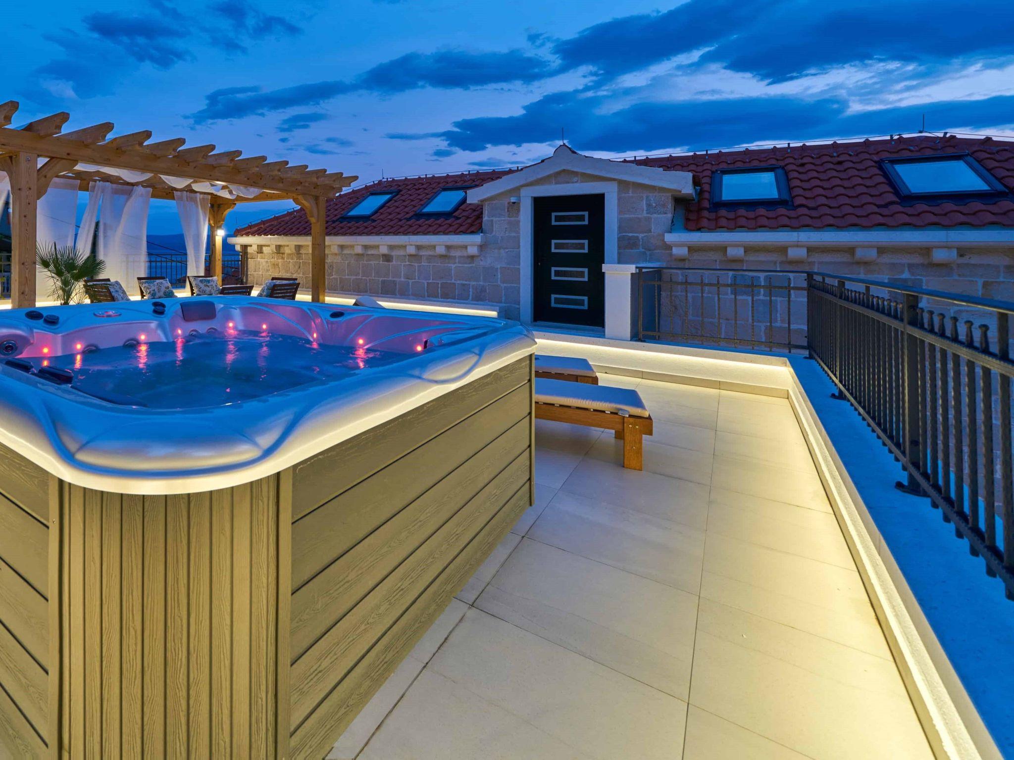 Rooftop Terrace and floor: 160 m2, sunbeds for 12 persons, sun chairs for 10 persons, whirlpool for 6 persons, sauna, billiard table, gaming area, flat TW connected to Wi-Fi, Play Station 4.