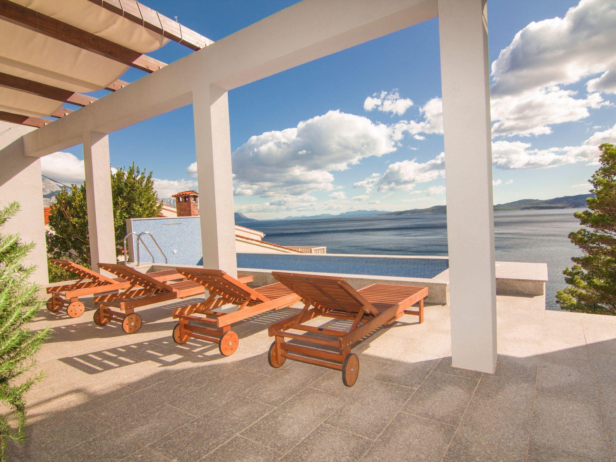 Best sea-view in Marušici with pool and garden areaNear Omiš, Split and Makarska. Great location to explore Dalmatia. There is a oilerie in the village where you can go to tryout some olive oils,cheese and vine.The house is a 3 level villa, with a beautifull sea-view. The apartment is perfect for 6 guests, but it can easily accommodate 12 guests. Parking for 4 cars guarantiedUnlimited free wifiAppliances: Air-conditioning, cooking stove (gas and electric), electric oven, fridge, hairdryer, mixer, stick blender, slicer, pancake maker, iron, ozone generator, 32" TV, Android TV, safe, darts game...ectThe terrace is equipped with a table and chairs. The pool area has a grill, loungers and table with chairs for all guest to use. The garden has a smoker grill, loungers and a playhouse for children. The property is fenced and the garden has fruits, herbs and vegetables that all guest can eat and use.One level is suitable for wheelchairs. There are some areas on the property where unsupervised children can hurt themselves. So caution is advised.The owner lives in Zagreb so a person in Marušici will be assigned to you for all help and advice. You can contact him any time or the assigned person via email, Viber, Watsapp. All important information, travel suggestions will await you at your arrival.You have two main beaches aprox. 5-10 min away on foot. Marušici is a old seaside village, in these day it is more oriented towards turism.The distance to the beach is not far but it has a steep descent and climb back. The apartment and house is approx. 50 meters above sea level, like climbing a staircase to the 15th floor of a building. You cannot approach any beach in Marušici by car, but there are beaches in the surrounding area which you can access by car (5min drive).Omiš is 12km away (old Roman city, with a lot of attractions like boat trips to Brac, River rafting, free climbing, submarine trip, big sandy beach, summer pirate festivals, festival of traditional acapella singing, ect.)Makarska 24km away (a town which is mostly oriented to tourist attractions with a huge beach, great for family visit and night clubbing)Split is 36km away (also old Roman City with a lot of summer festivals, attractions and museums, good for family visit or night clubbing)There are also interesting small towns like Pisak, Brela, Baška voda.There is a food market near the main road. This and all other useful information and tips for the location, trip suggestions ect. will await you on your arrival.