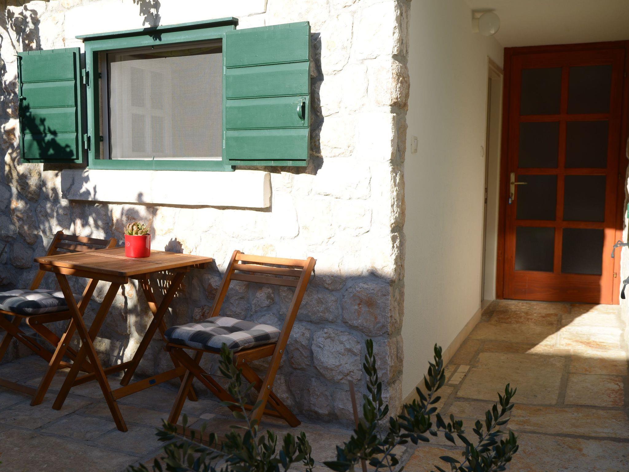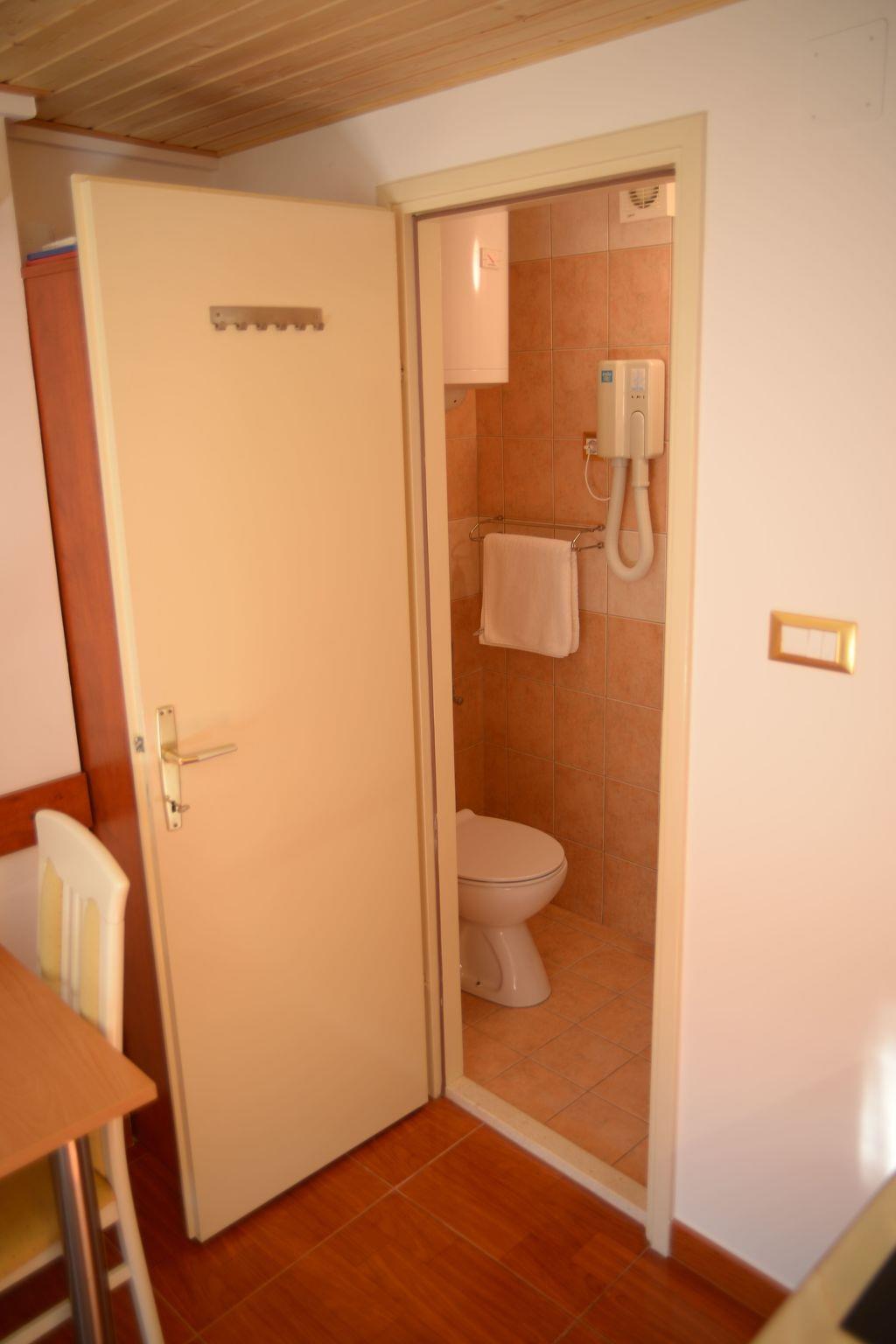 This 20m² holiday apartment for two people is the smallest apartment, a studio that is ideal for guests who would like t enjoy their Dalmatian summer outdoor or who just need a base for exploring the region during the day. The studio has the same amenities as the other apartments, apart from a sofa with a table. It has a little dining table with chairs, a TV with Astra satellite channels, and air conditioning. There is also a little integrated kitchen with a two-ring hob, a fridge and a kettle, as well as a bathroom with a shower cubicle, hairdryer and WC. The sleeping area consists of two single beds (80 x 190cm).