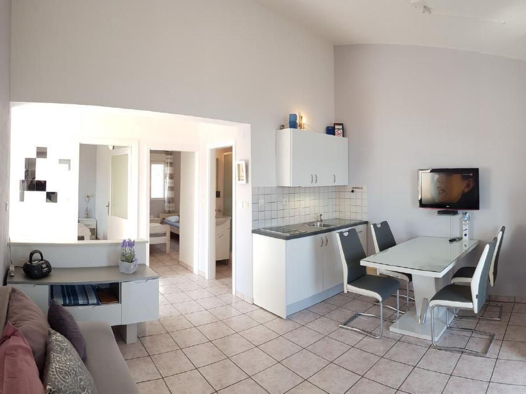 All 5 apartments are new and modern furnished and have a beautiful direct sea view.The apartments have a fully equipped kitchen and a fridge with freezer compartment, satellite TV CD player and air conditioning.The linen is made available. Parking is available.The house has 5 apartments :ground floor, 1st floor, 2nd floor, 3rd floor :AK ground floor, (2+2) 35 m² + terrace 25 m²1 bedroom , living room with sofa bed for 2 toilets kitchen, TV - SAT, air condition (Time Reader), bathroom and garden terrace about 35 m2 with sea view.AB 1st floor, (2+1) 30 m²1 bedroom , living room with sofa bed , kitchen - dinning , TV - SAT , air condition (Time Reader), bathroom and balcony with sea view.AA 1st floor, (2+2) 50 m²1bedroom , living room with sofa bed 2 toilets kitchen, TV - SAT, air condition (Time Reader), bathroom and balcony with sea view.AC 2nd floor (4+1) 60 m² + 12 m² balcony2 bedrooms, living room with sofa bed f 1 pers. , Kitchen (toaster, radio, table grill, Gr. Fridge .... etc), TV - SAT, air condition (Time Reader), bathroom and terrace with sea view.AF 2nd floor (4+2) 60 m² + 8 m² balcony6 people only with 4 adults and 2 small children up to 6 year)2 bedrooms, living - dining room with sofa bed for 2 pers. (small children) - Kitchen ( . Microsystems , toaster, DVD radio, tabletop grill, kettle, size fridge .... etc), 51-inch satellite TV, air condition (Time Reader), bathroom (hair dryer) and terrace with sea view.AR ground floor (4+4) approximately 75 m² + terrace 80 m²Quite a bit larger with garden and terrace space about 80 m² with 2 bedrooms (with double bed)+ 1 additionally bed another small room with a double bed, living room with sofa bed for 2 pers. + 1 additionally bed, kitchen (toaster, kettle), TV - SAT, air condition (Time Reader).2 bathroom (WC/shower/bidet)+(WC/shower art in the sleeping room.Terrace about 30 m² and 80 m² garden with sea view.Includes:Internet: Wi-FiTaxbeddingExclusive:Extra charge air condition (Time Reader) 0.50 chargeable per hours.Buoy on requestDogs allowed only in Ap. F chargeable / dayTowels on request chargeable / week.Parking apartments A, B, C, F, I+K availableend cleaning chargeableaddition :Paid a deposit on arrival.Short description 1Number of kitchens : 1Bedroom 1Other bedroom furniture : wardrobeBedroom 2Other bedroom furniture : Clothes dresser