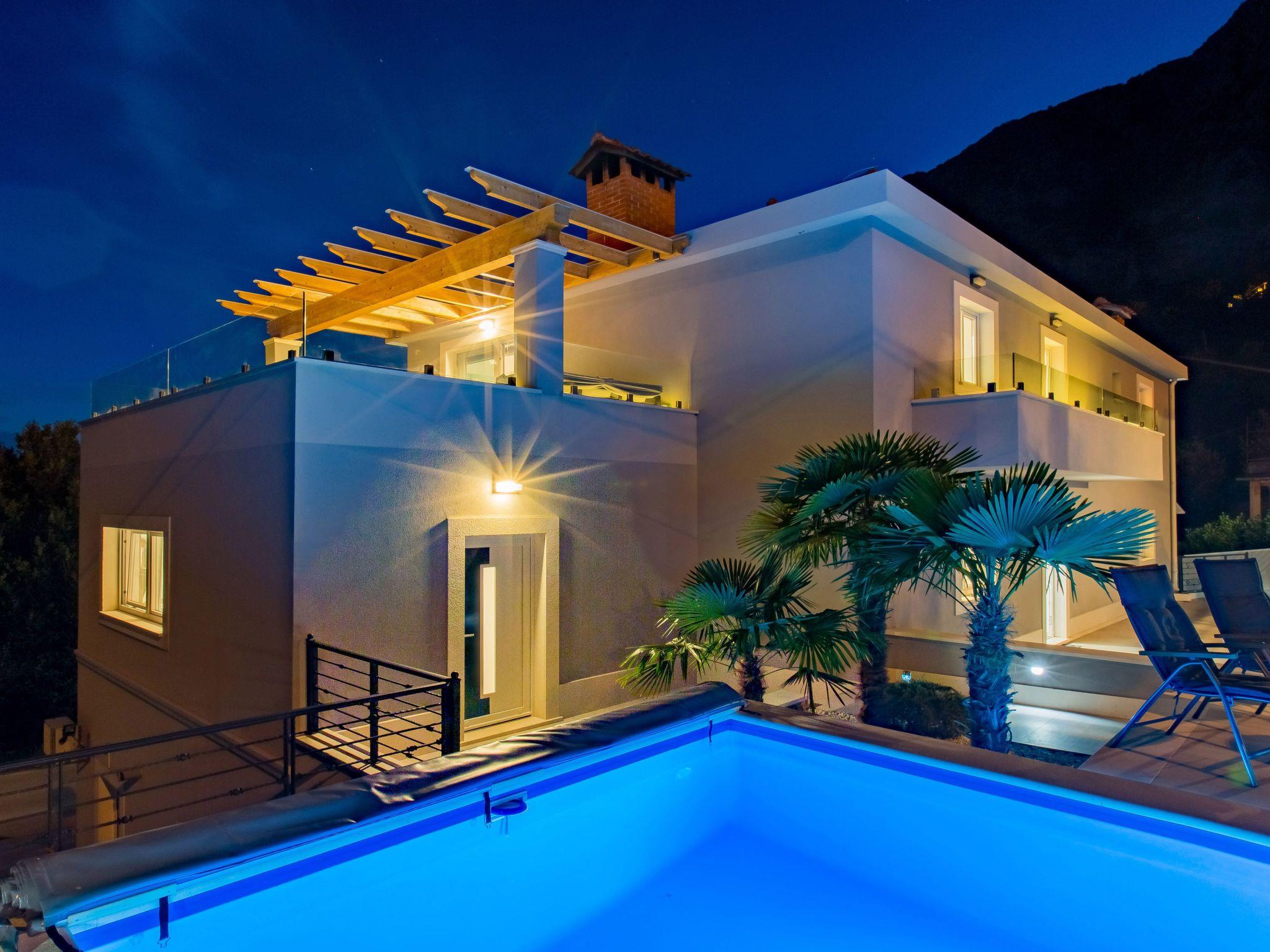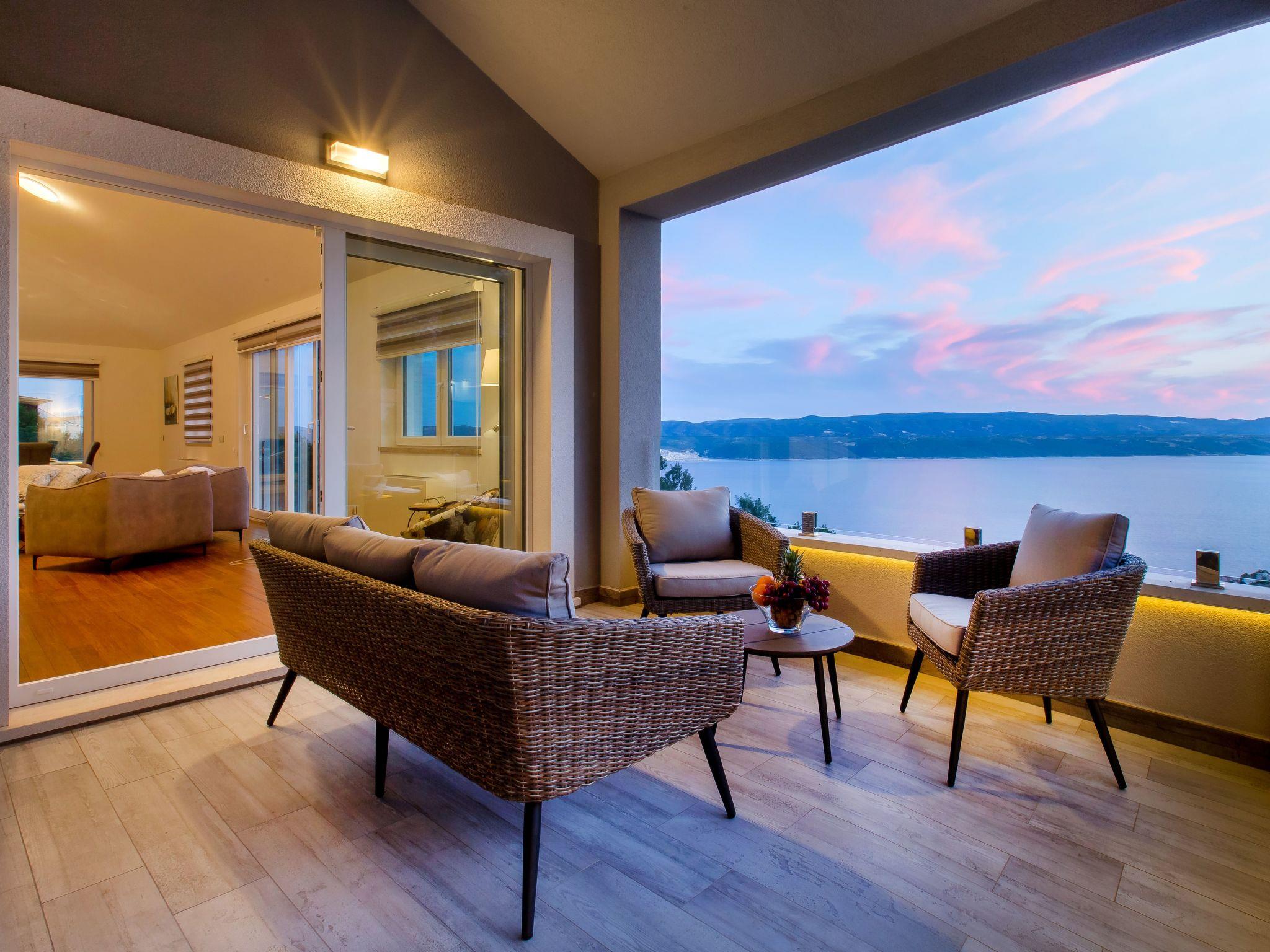 This unique luxurious villa for a relaxed holiday, with a magnificent sea view from the foot of the mountain Dinara, is situated in Lokva Rogoznica in Split-Dalmatia County. It consists of four bedrooms with double beds, four bathrooms, a cozy living room with a dining area, a fully-equipped kitchen, a patio with a swimming pool, and a summer kitchen with a BBQ. It can accommodate up to 8 persons.