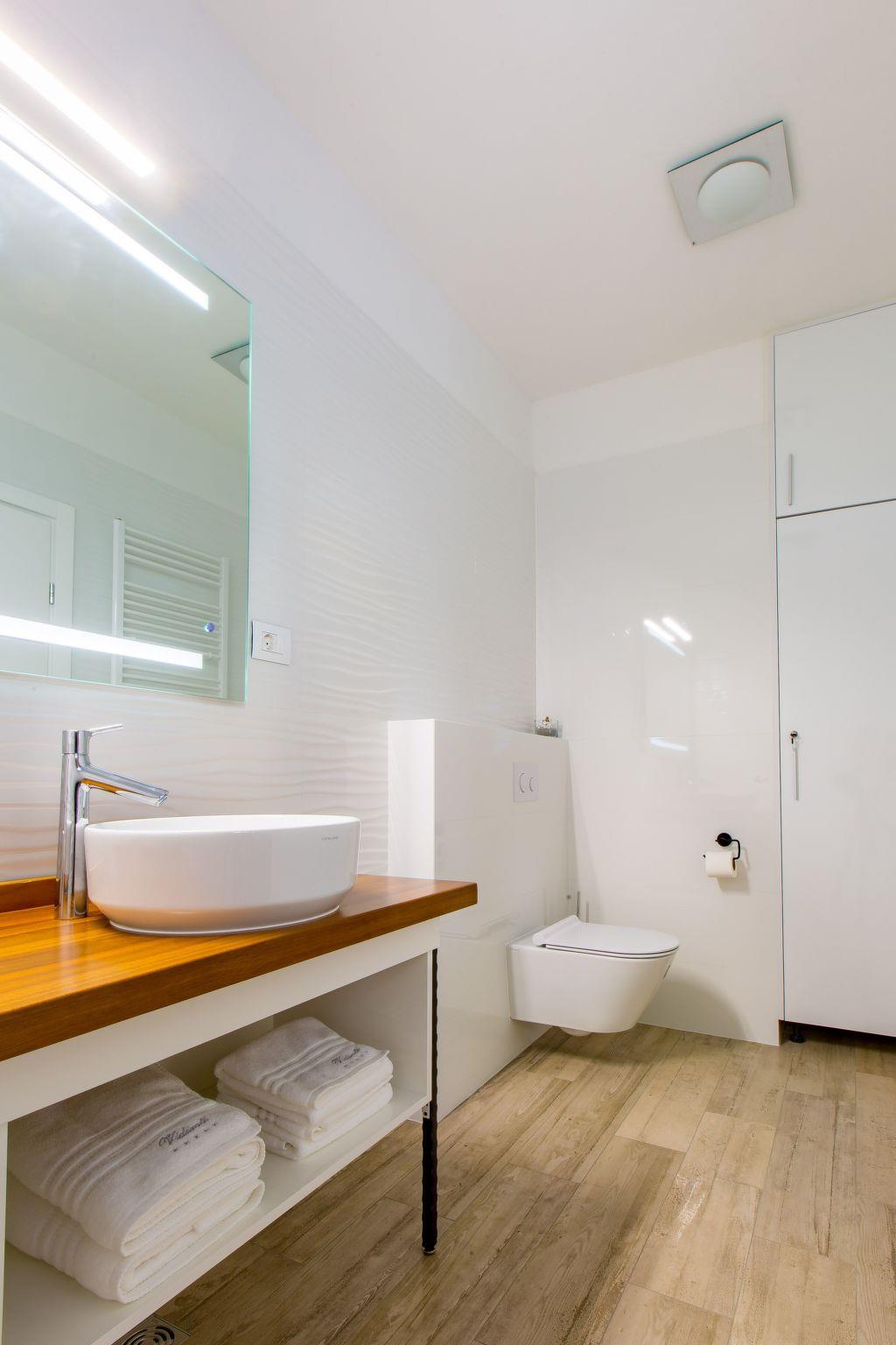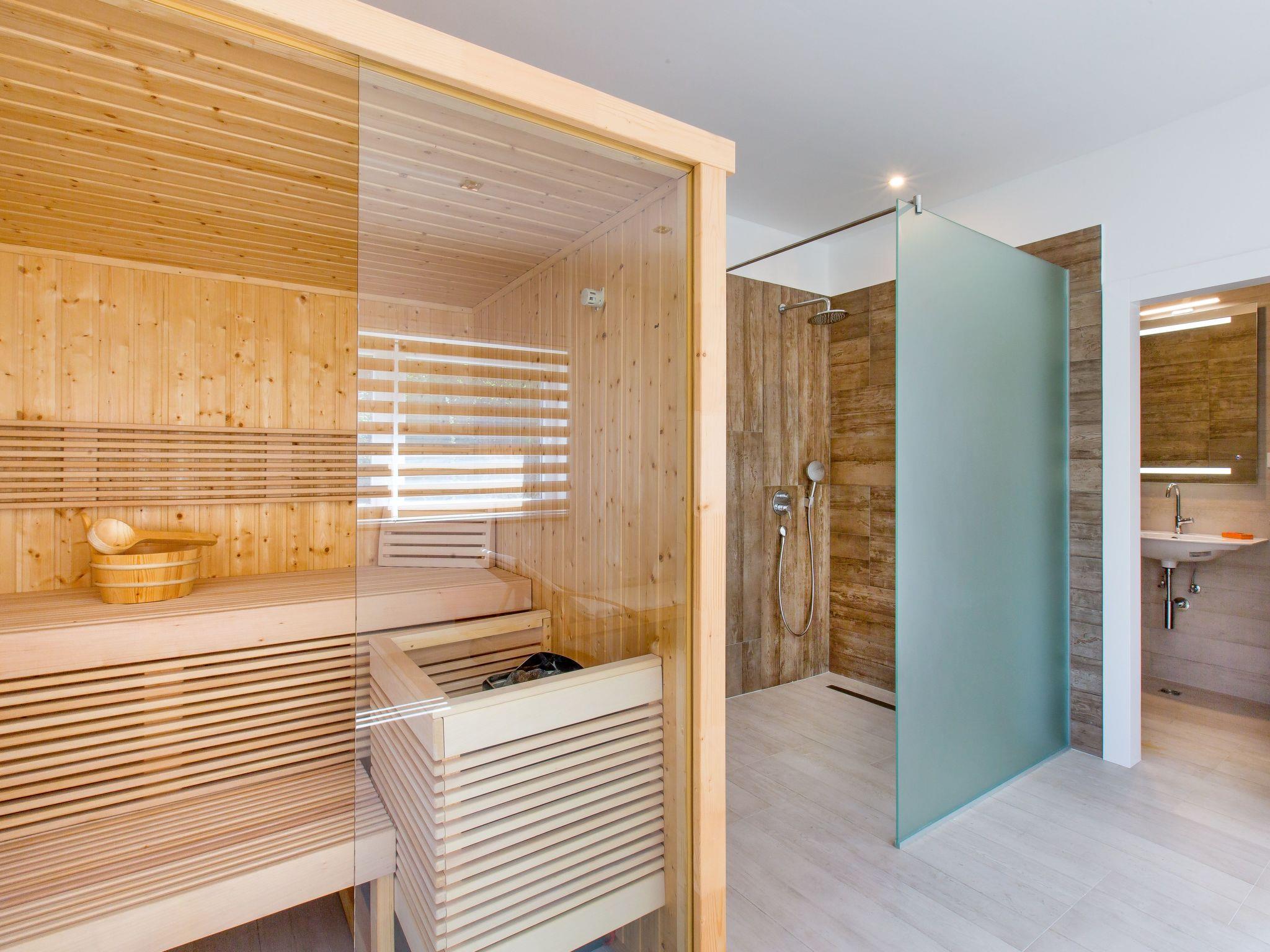 Moving from the first floor of the house, you will have at your disposal three bedrooms with large double beds, a flat-screen TV and en-suite bathrooms. There is also a spacious sauna with a shower and an additional toilet.