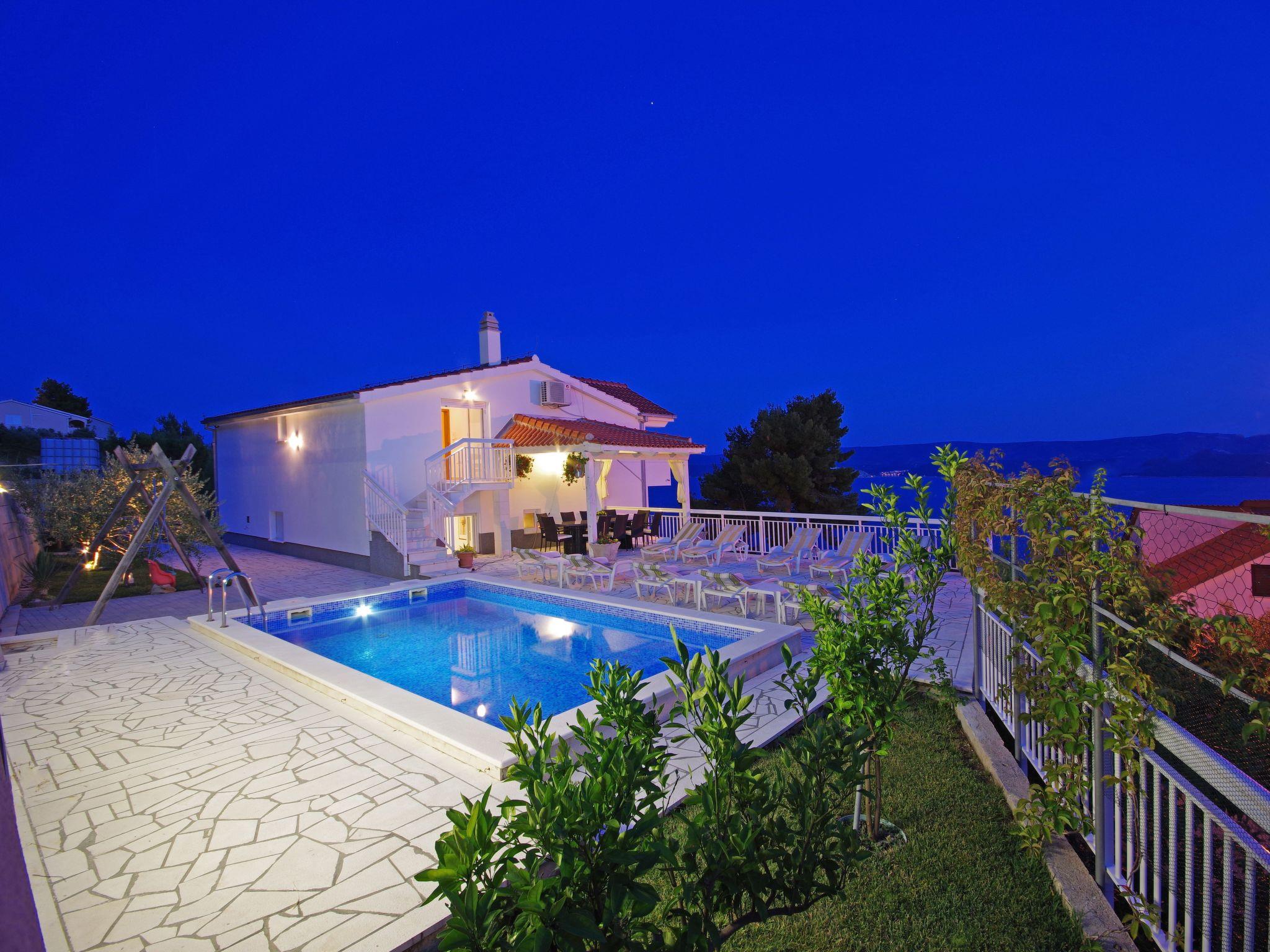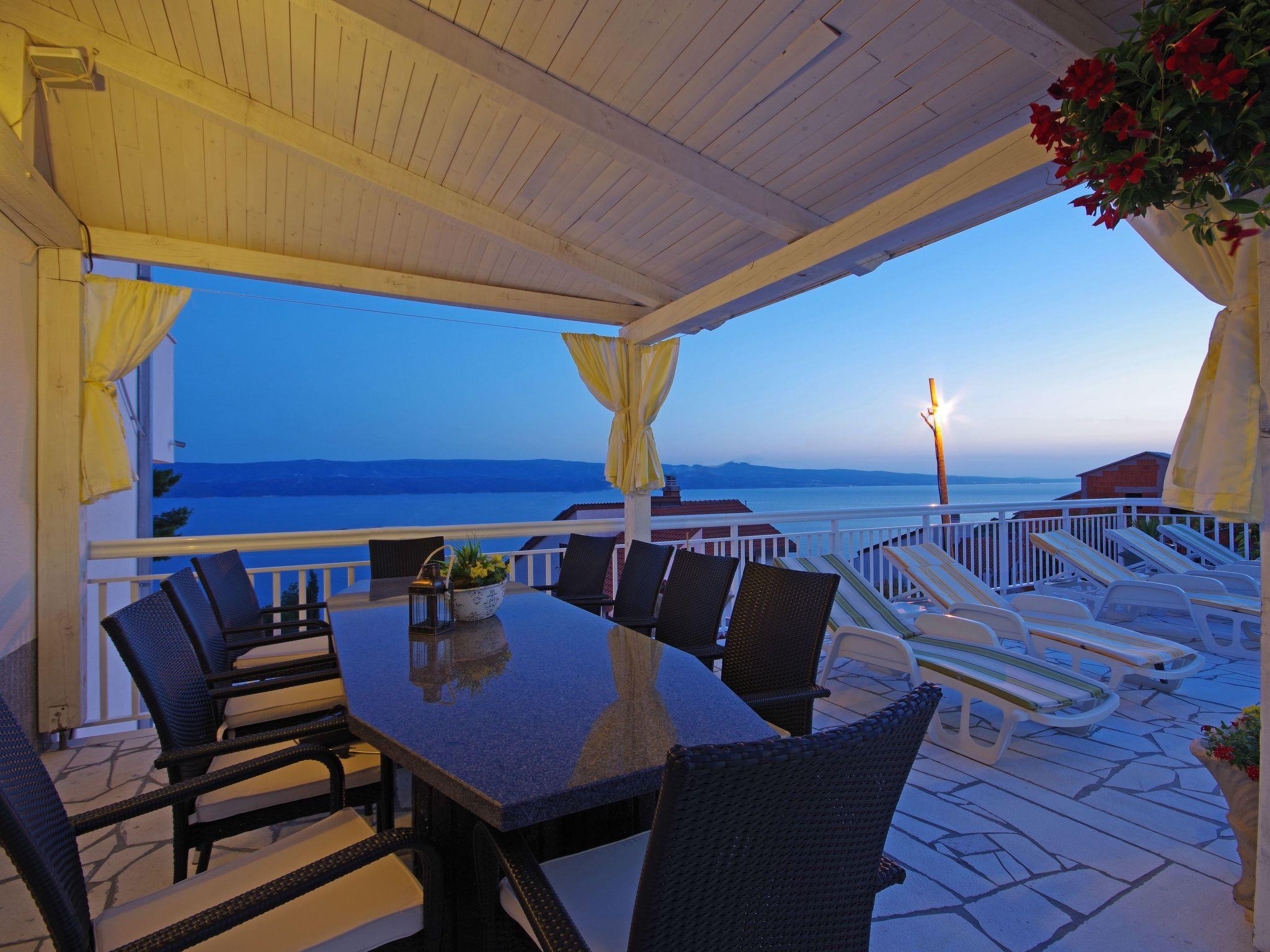 The villa is a very spacious property located on a mountainside near the town of Omiš, offering a beautiful view of the coast, the sea, and the island of Brac. This stunning view can be enjoyed at any time of the day—from the midday sun sparkling on the water of the Brac Channel to the evening sunsets illuminated by the pink glow of the setting sun on the horizon. Two dining terraces are located in front of the villa, and enjoying a sunset meal here will leave you with some of your best holiday photographs and memories.