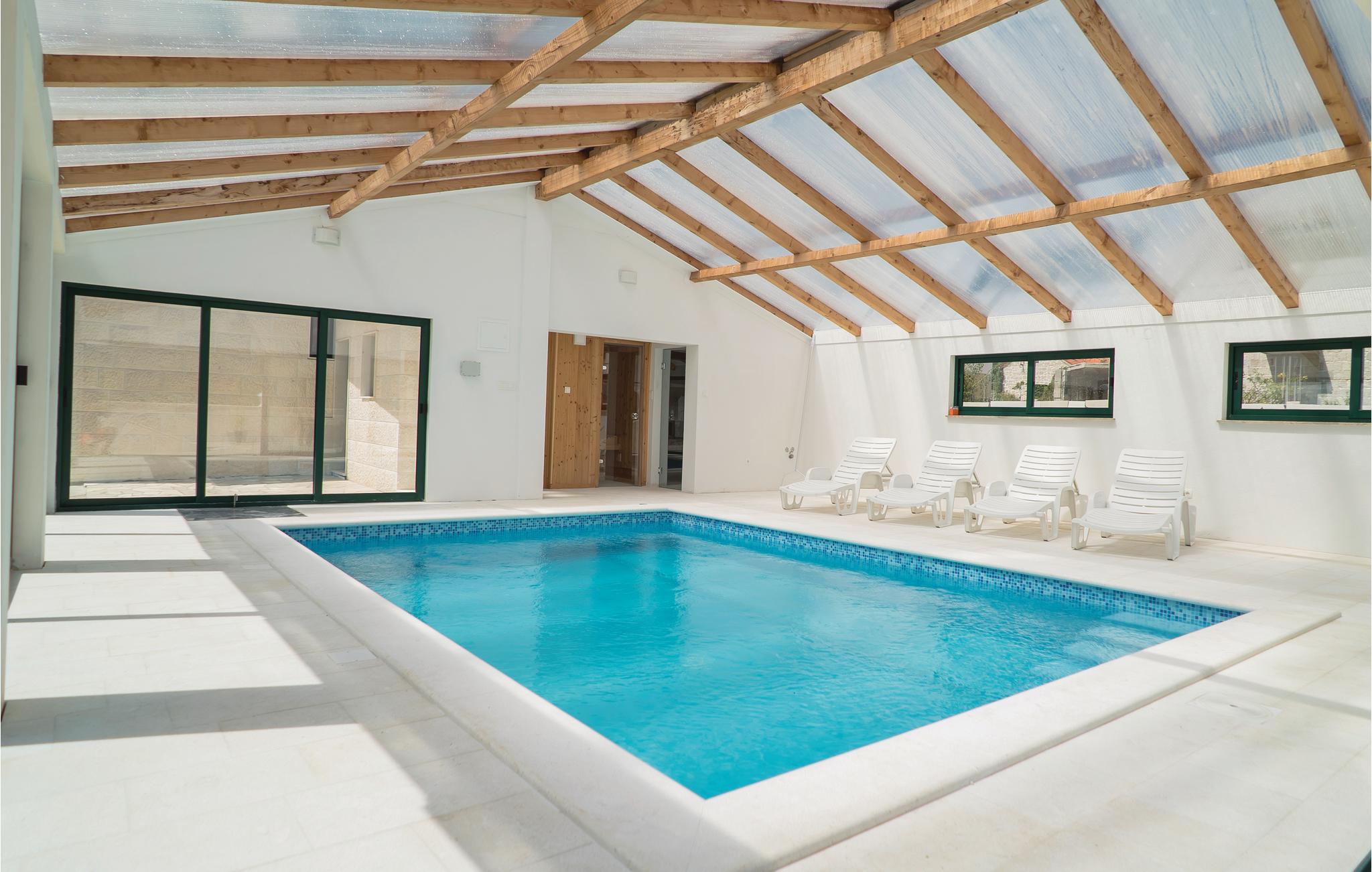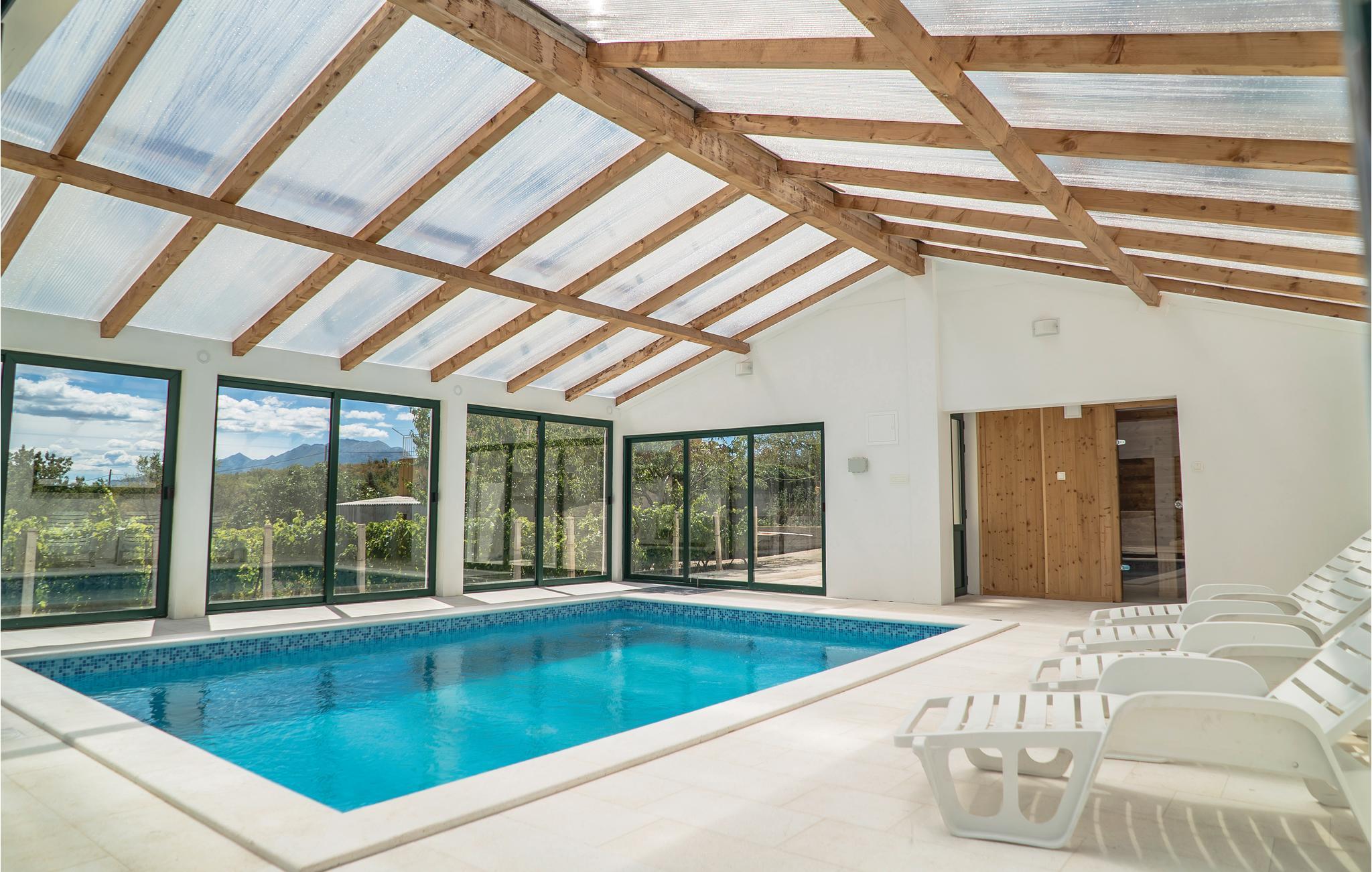 Dette skønne feriehus ligger i den lille by Kreševo i Omiš bagland. Lejligheden rummer køkken, stue, badeværelse og tre soveværelser (det ene soveværelse er et gennemgangsrum). Ved siden af huset ligger poolen, der efter behov kan både opvarmes og overdækkes, en sauna og endnu et badeværelse. Slap af på terrassen med ved siden af poolen, her kan I lave mad på grillen og sidde i behagelige stole og bare nyde at have god til at snakke. Tag til floden Cetina med strandbred, mulighed for at rafte og svæve i zipline, eller kør til Omis ca. 15 km væk, hvor der er hav til alle former for vandsport.