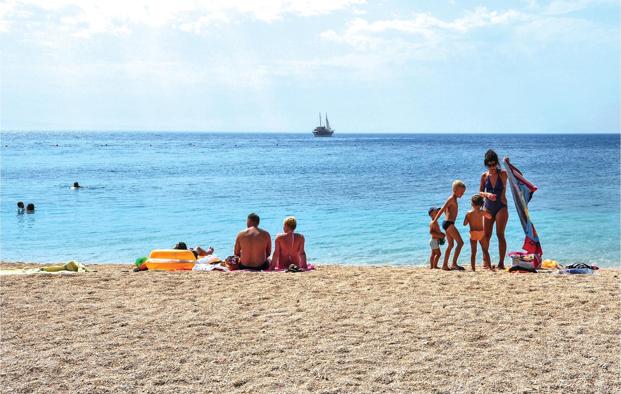 Nyd udsigten til havet fra terrassen fra jeres lejlighed. Kiesstranden ligger kun få skridt fra ejendommen. Hvis I ikke ønsker at undvære den sportslige udfoldelse på ferien, kan I finde den i den nærliggende by Omis. Her er der muligheder for rafting på Cetina-floden, gratis klatring, dykning, fiskeri, bjergvandring samt windsurfing - og det er blot nogle af de aktiviteter, som den unikke Omis Riviera tilbyder sine besøgende.
