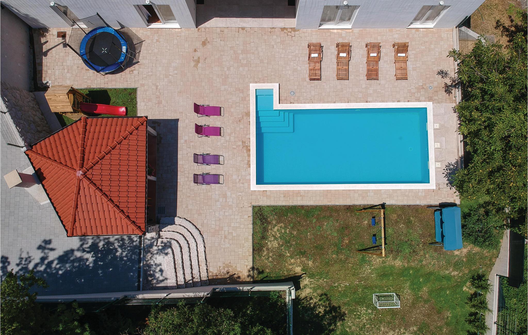 Tilbring ferien i et dejligt lunt klima ved en skøn pool omgivet af natur. Her ligger to huse der udgør en samlet ferieenhed på en lukket grund. De to huse er i et plan og i det ene er der køkken og soveværelse, mens det andet har to soveværelser. Poolen bliver feriens naturlige midtpunkt, hvor der også er gynge og trampolin for børnen. Den lille feriebebyggelse ligger i den lille rolige landsby Svinisce, en del af Omis opland. Omis er derudover et besøg værd med den gamle middelalderby og sandstrandene omkring byen er desuden også dejlige.