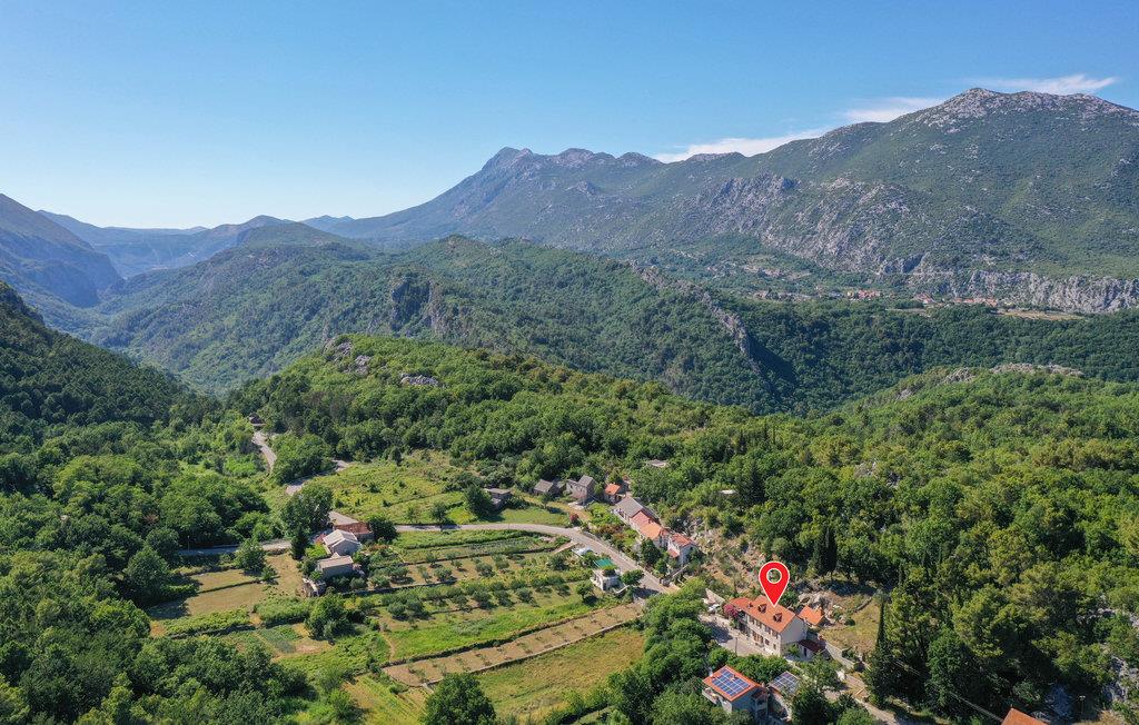 Det ligger ca. 12 km fra Omiš og ca. 35 km fra Makarska og Split. Terrassen bag huset er udstyret med boblebad og sommerkøkken. Huset består i stueetagen af et køkken og spiseplads, der er forbundet med den dalmatiske "Konoba" og et badeværelse. 4 soveværelser, badeværelse og stue er på 1. sal. På loftet er der en hems med en dobbeltseng.