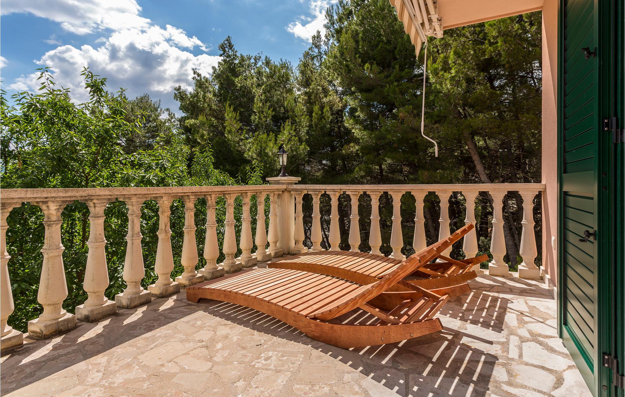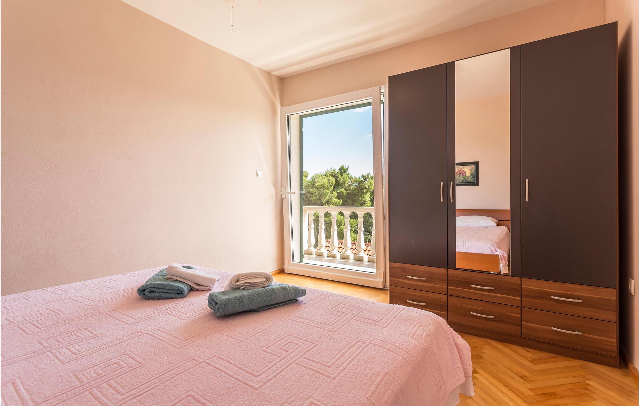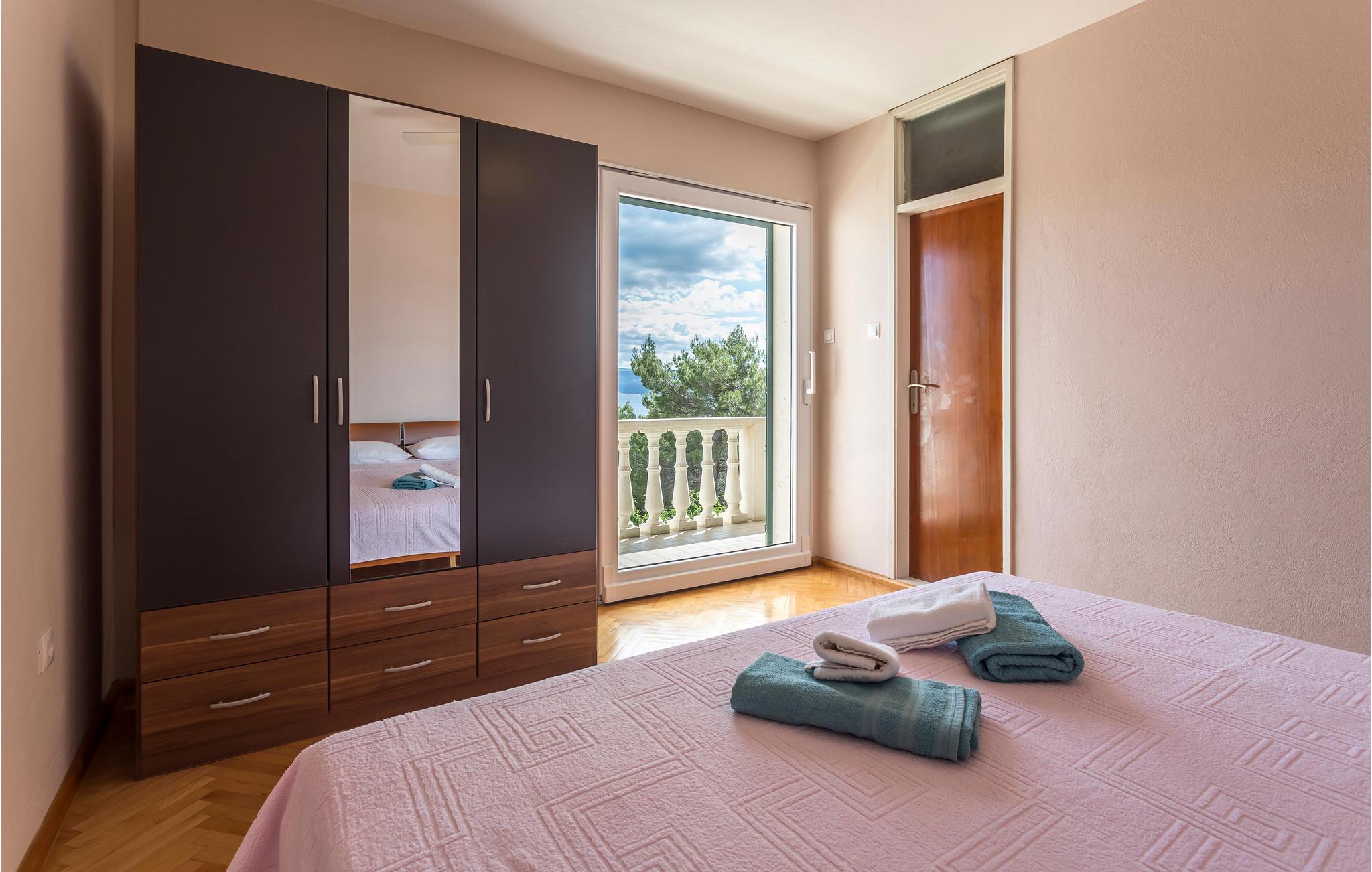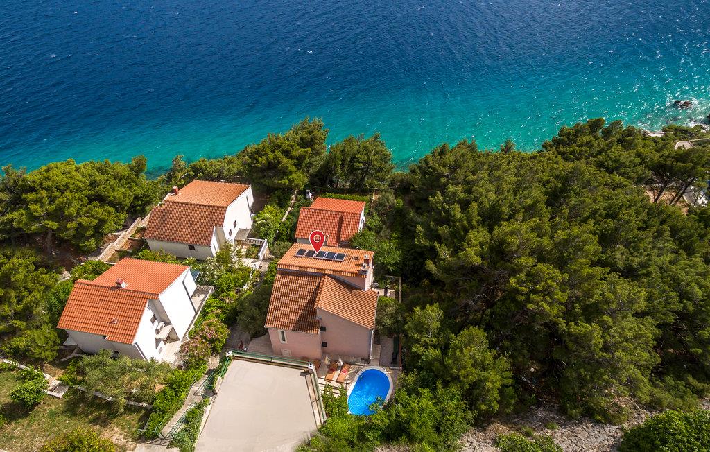 I de bakkede landskaber der omgiver byen Medic, i anden række fra havet, ligger dette feriehus. Det består af to enheder, der er forbundet med indre trapper. På første sal ligger køkkenet i åben forbindelse med stuen og direkte udgang til den skønne store terrasse med havudsigt, samt endnu et soveværelse med badeværelse en suite. Det andet soveværelse ligger på anden sal med udgang til en balkon. På første sal, på den nordlige side, ligger poolen og en havepavillon. Stueplan benyttes af husets ejer, der af og til bor der. Til kiesstranden fører en snoet trappe. Besøg den livlige ferieby Omis, med både historie, kultur og mange muligheder for at dyrke sport.