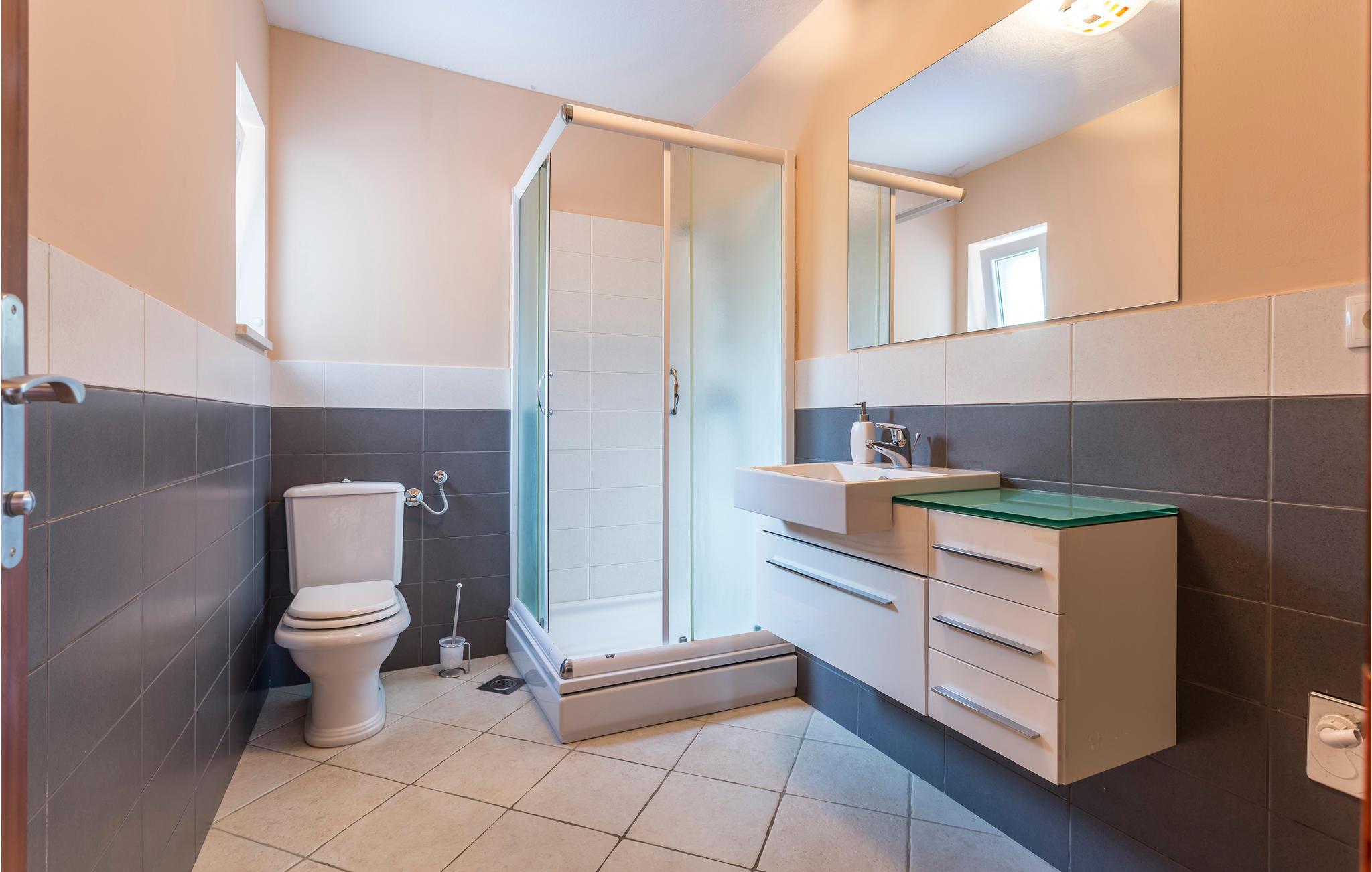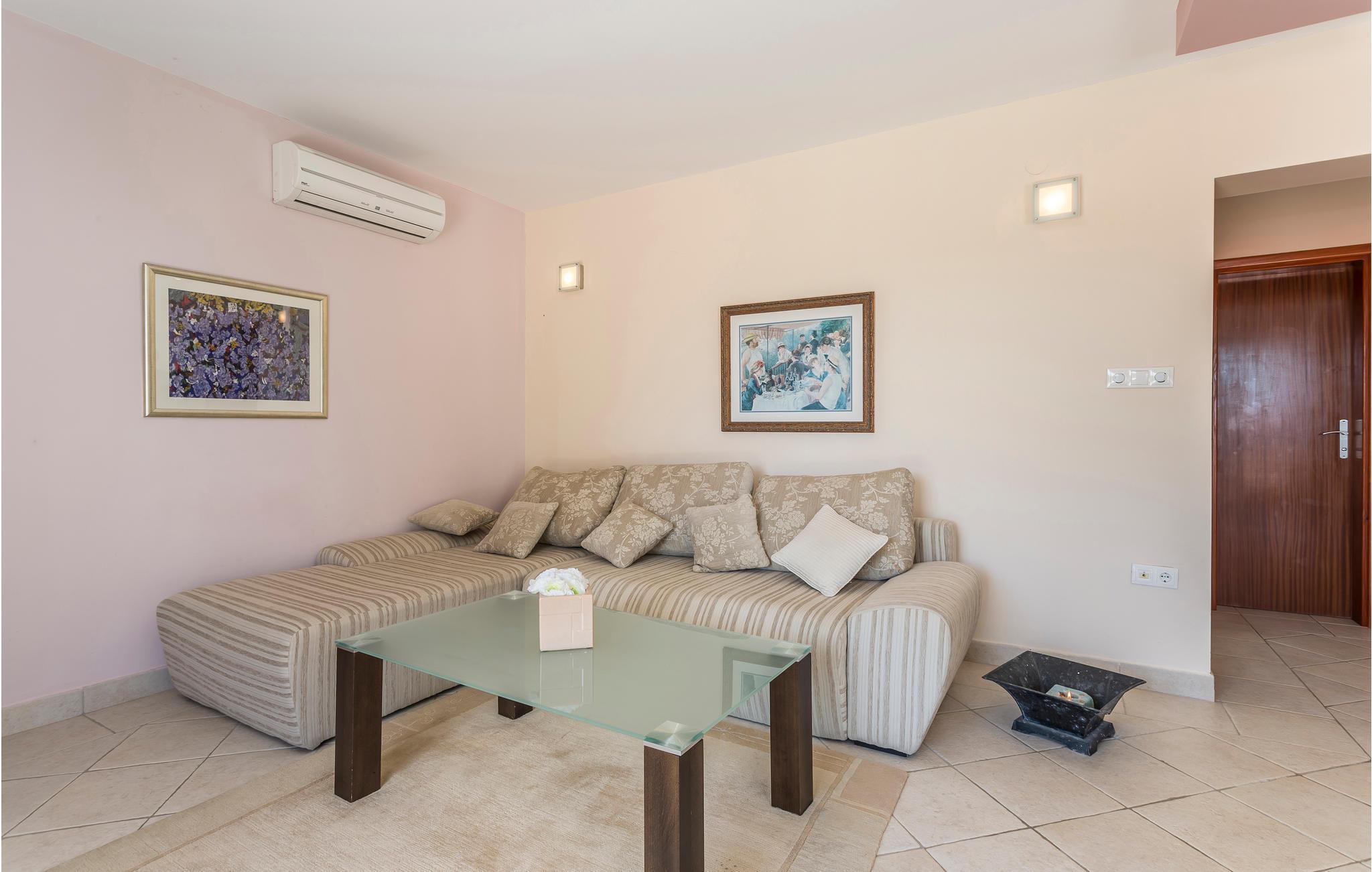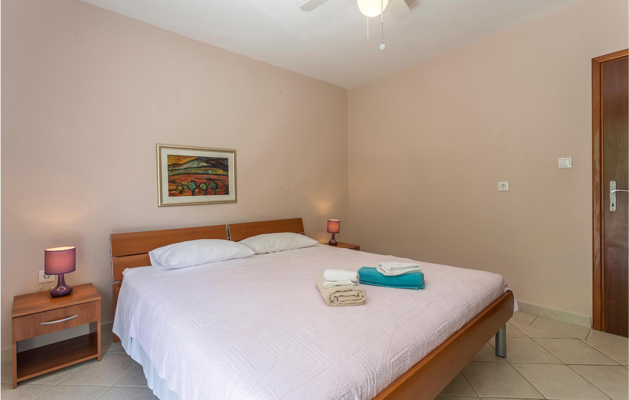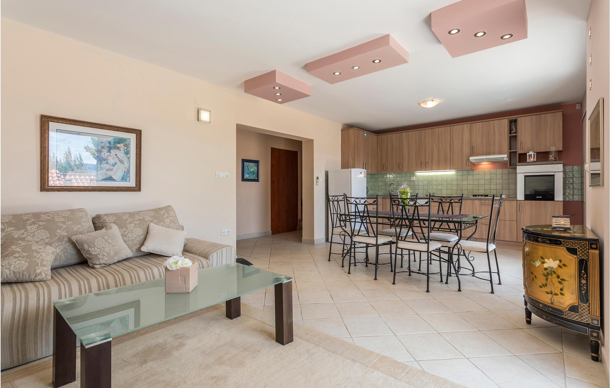 I de bakkede landskaber der omgiver byen Medic, i anden række fra havet, ligger dette feriehus. Det består af to enheder, der er forbundet med indre trapper. På første sal ligger køkkenet i åben forbindelse med stuen og direkte udgang til den skønne store terrasse med havudsigt, samt endnu et soveværelse med badeværelse en suite. Det andet soveværelse ligger på anden sal med udgang til en balkon. På første sal, på den nordlige side, ligger poolen og en havepavillon. Stueplan benyttes af husets ejer, der af og til bor der. Til kiesstranden fører en snoet trappe. Besøg den livlige ferieby Omis, med både historie, kultur og mange muligheder for at dyrke sport.