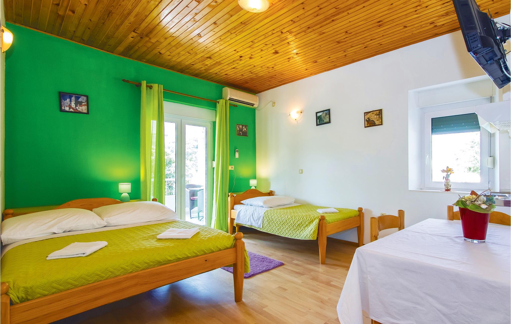 Denne praktisk indrettede ferielejlighed med whirlpool ligger på første sal i et hus der hører til en idyllisk gammel bondegård. I stueetagen er de ren rolig café hvor der også er billarbord som I kan benytte. På den store grund er der endda en Bocciabane. Børnene kan se frem til at hilse på landbrugets mange dyr ligesom de kan opleve hvordan husejeren fremstiller sine produkter. Det tager kun 10 minutter at komme til Omiš med byens skønne sand- og stenstrande og ikke mindst et stort udvalg af gastronomiske tilbud. Desuden kan det anbefales at I tager på udflugt til den betagende smukke Cetina Slugt.