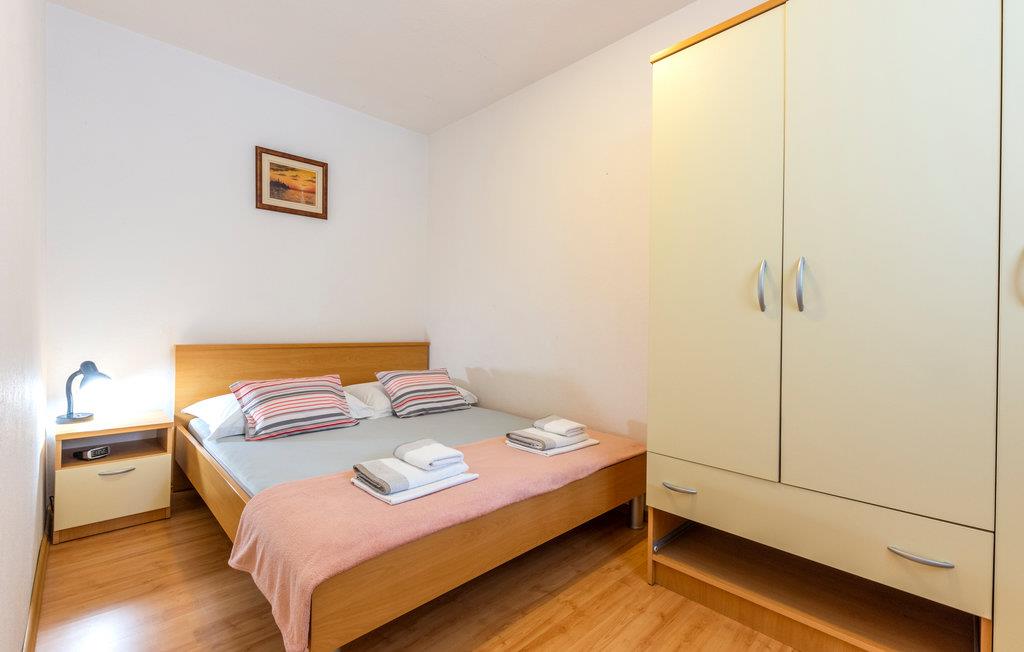Lejligheden ligger på 1. sal i en bygning, der kun ligger 200 m fra stenstranden. Lejligheden er udstyret med 1 soveværelse og 1 badeværelse og er ideel til en lille familie eller et par, der ønsker at tilbringe en ferie med sol, strand og hav. Der er også en stue med køkken og badeværelse.