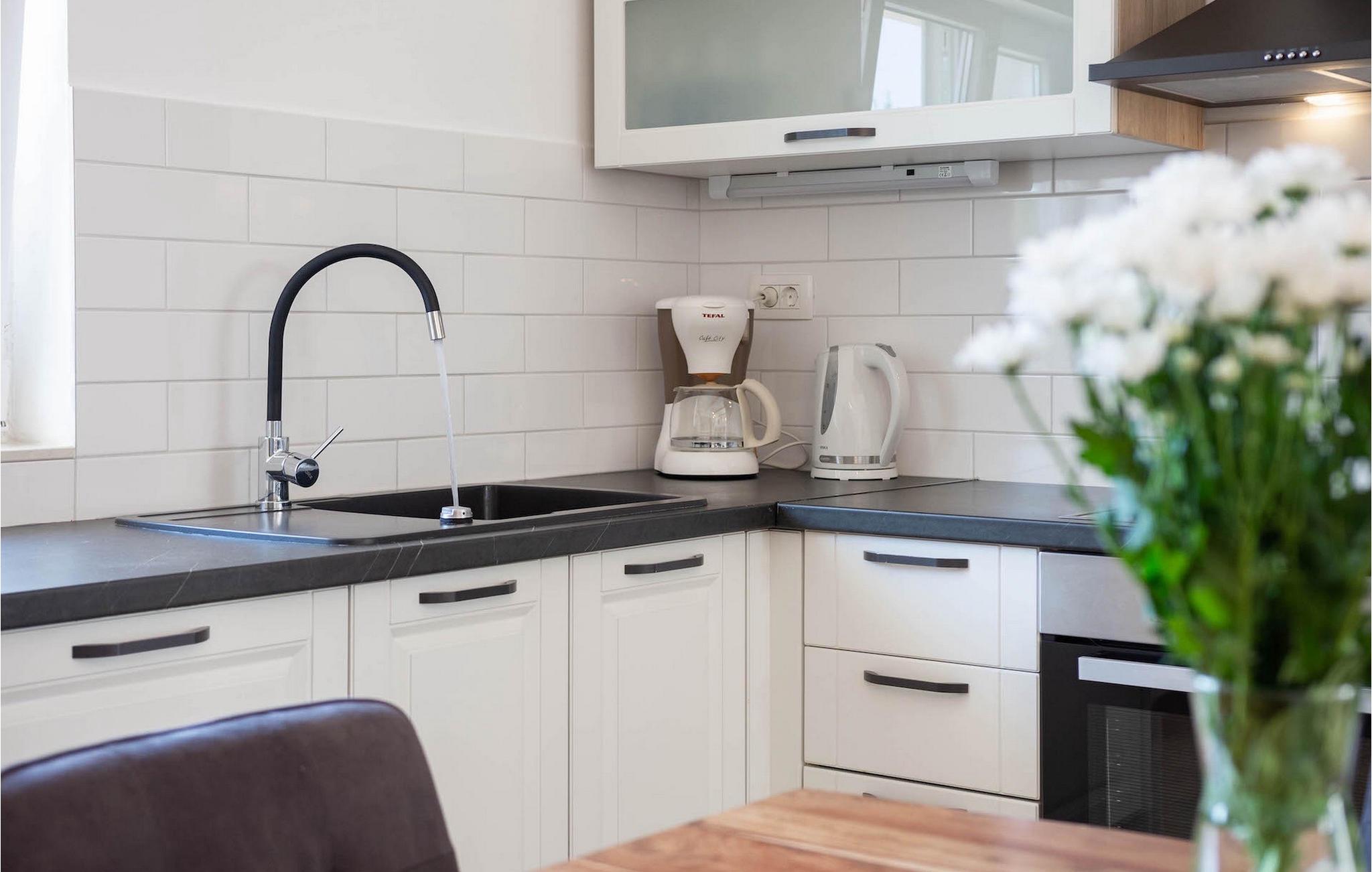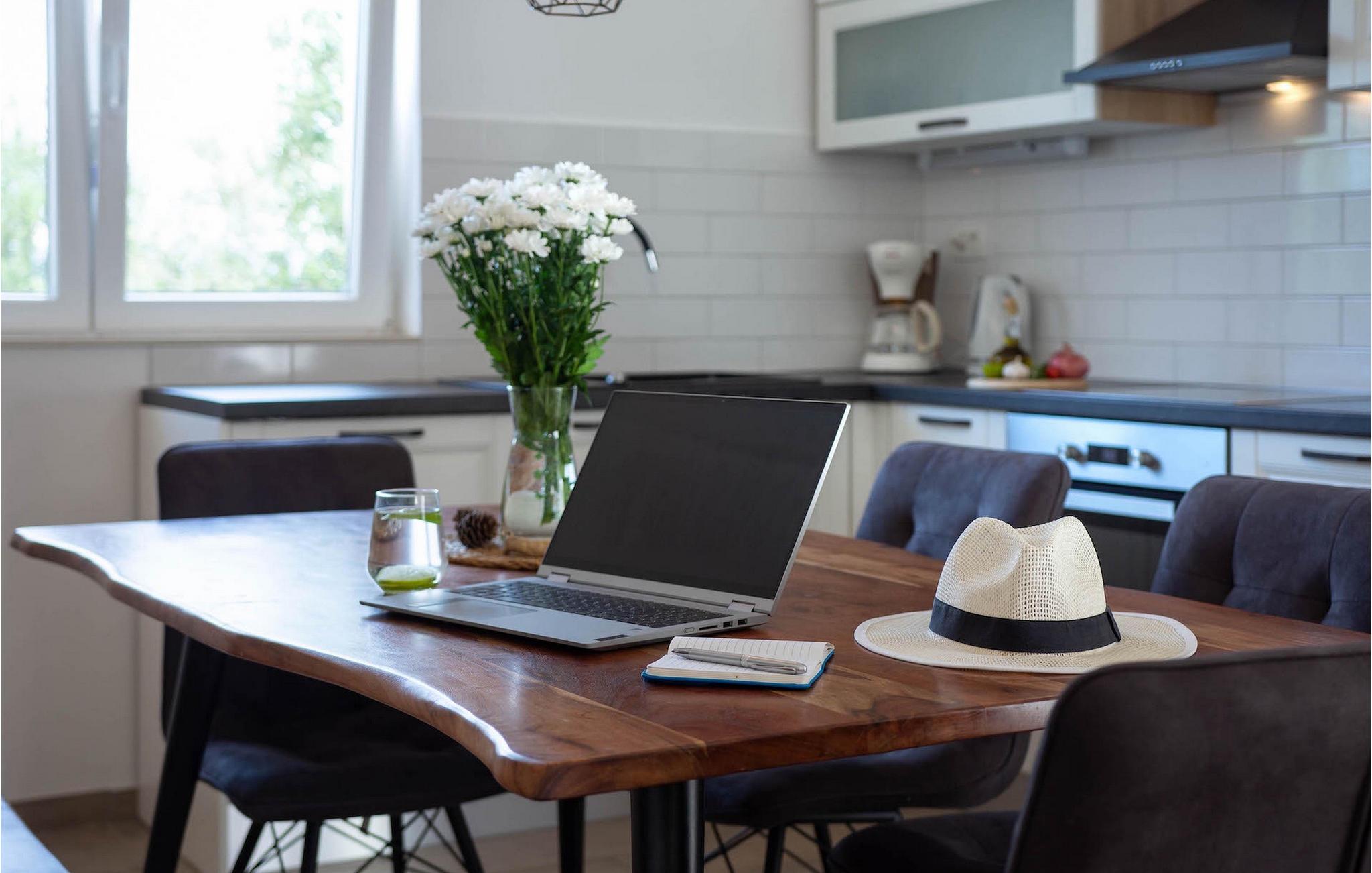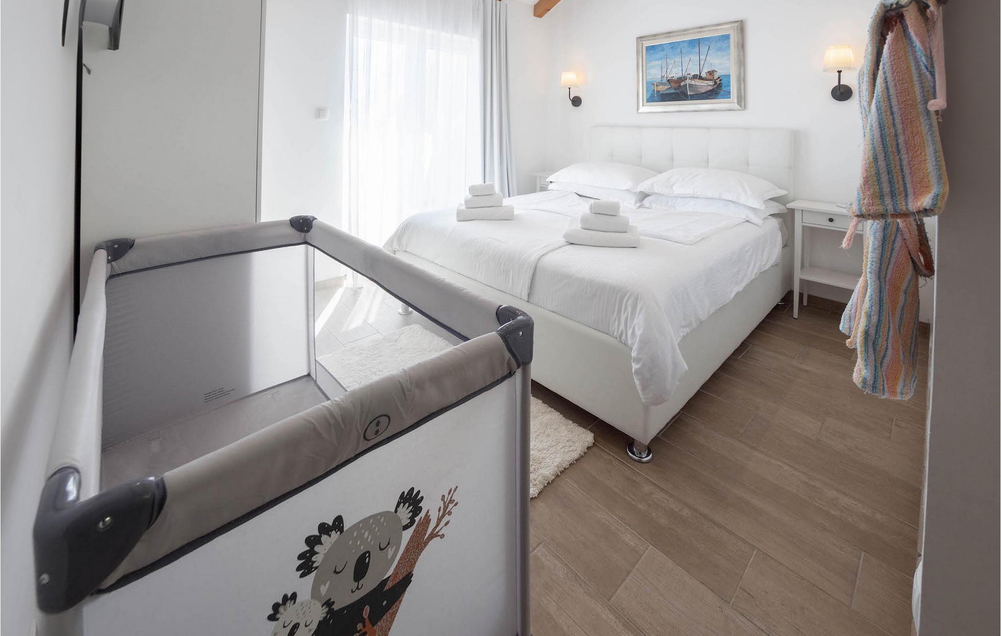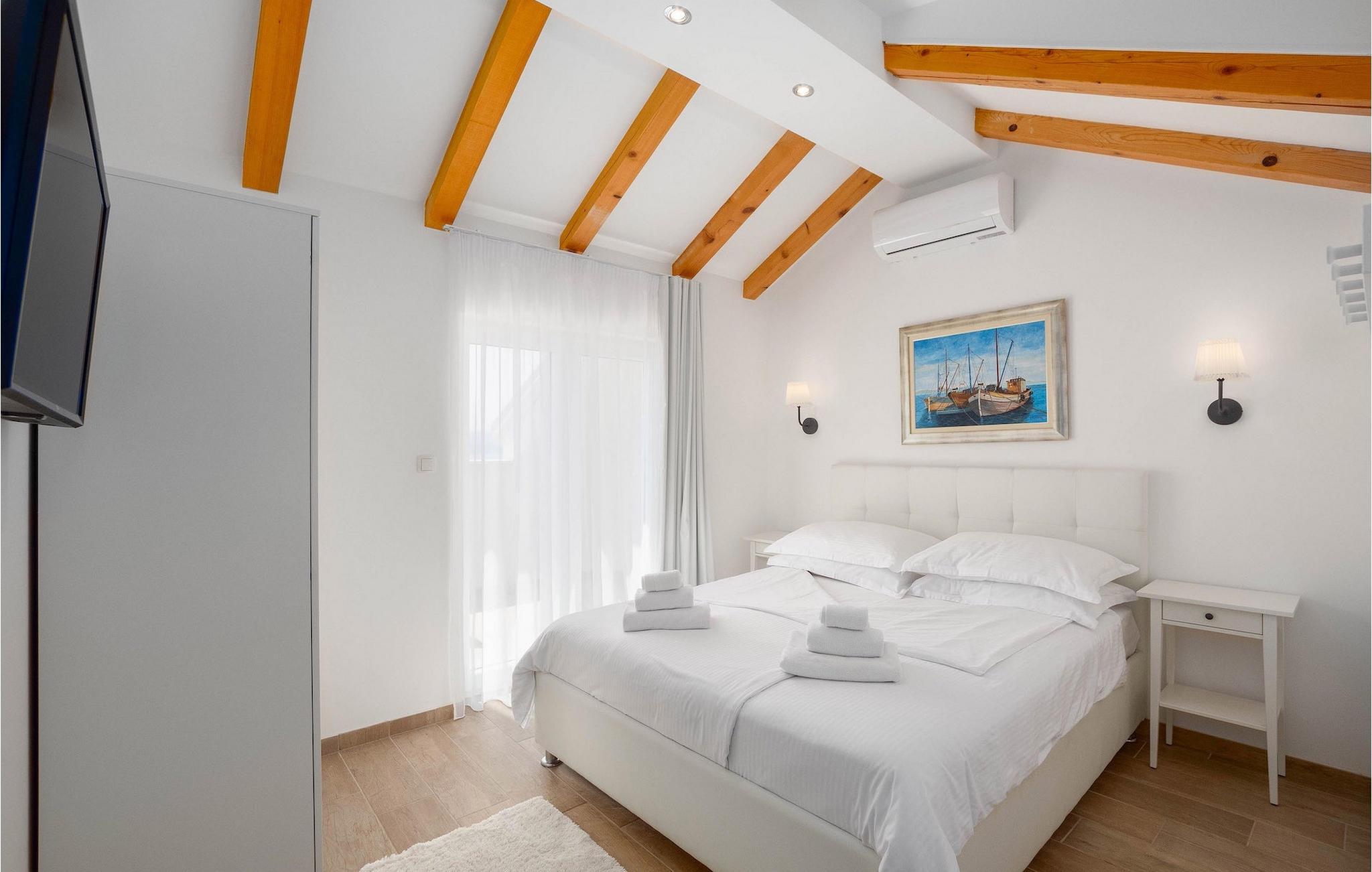 Im Erdgeschoss befindet sich eine voll ausgestattete Küche mit allem, was Sie brauchen, um Ihre Lieblingsdelikatessen zuzubereiten oder vielleicht ein neues lokales Rezept auszuprobieren. Auf der gleichen Etage befindet sich ein modernes Schlafzimmer mit eigenem Bad und separater Toilette für noch mehr Bequemlichkeit. Auf der obersten Etage der Villa befinden sich zwei liebevoll und sorgfältig eingerichtete Schlafzimmer, beide mit eigenen Badezimmern. Beide Schlafzimmer haben einen eigenen Balkon mit Möbeln für einen komfortablen Aufenthalt auf dem Balkon, der einen schönen Blick auf das Meer bietet. Es lädt ein sich zu entspannen und frisch gebrühten Kaffee oder Tee zu trinken. Zusätzliche Fahrrad-, Kajak- und SUP-Verleihdienste sind auf Anfrage gegen Aufpreis verfügbar.