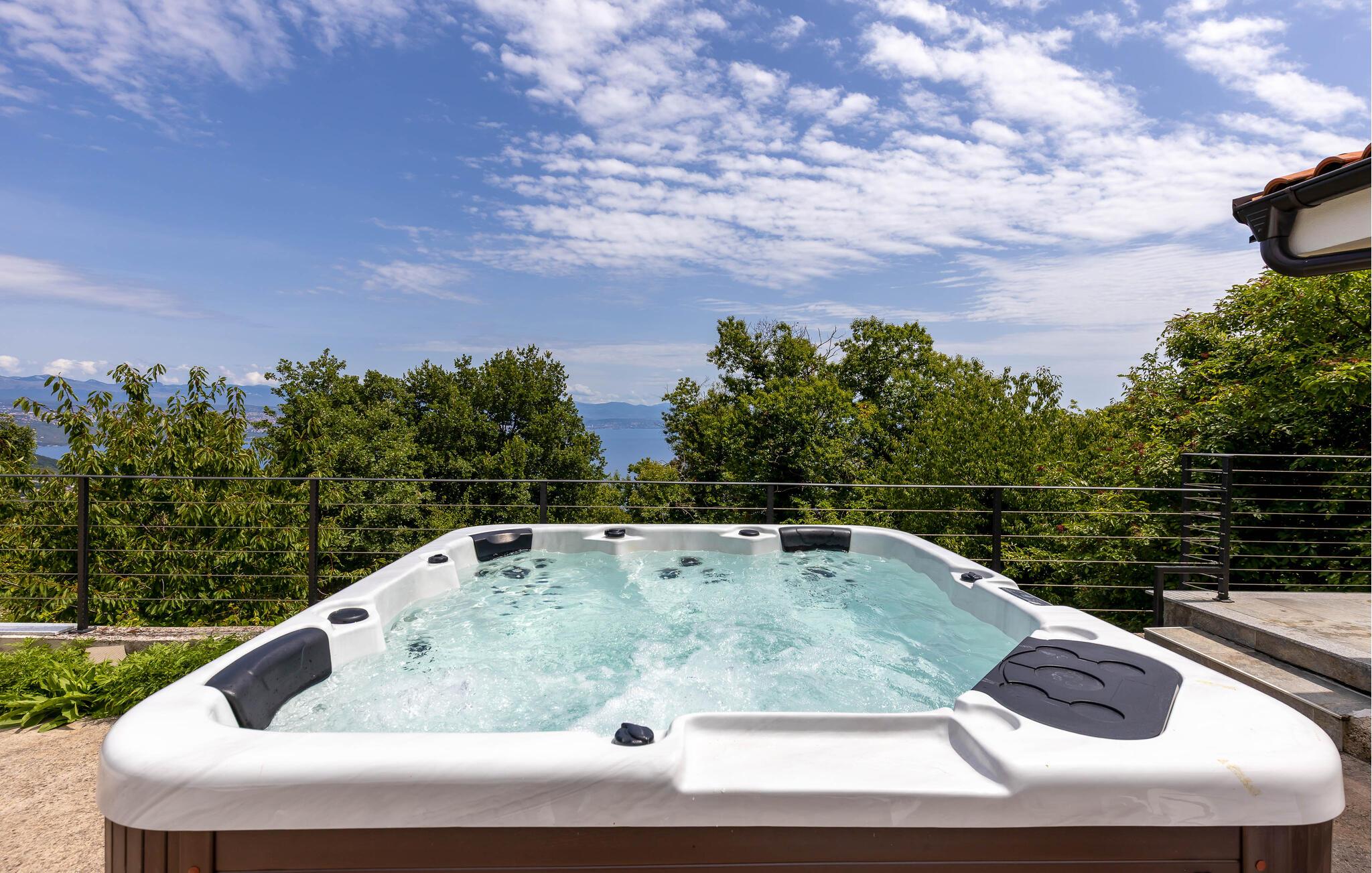 Nyd en afslappende ferie i dette moderne feriehus med spabad og panoramaudsigt.