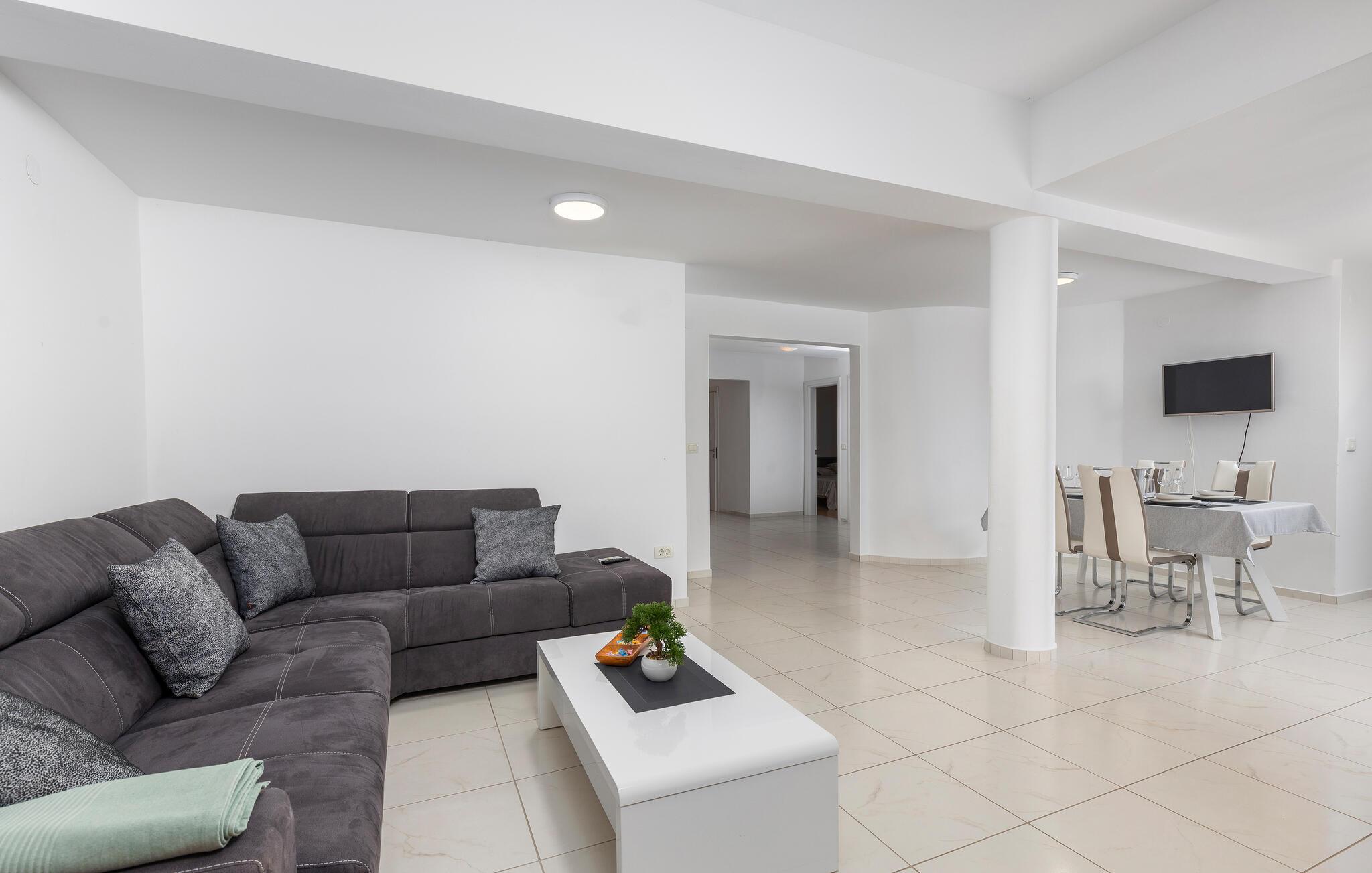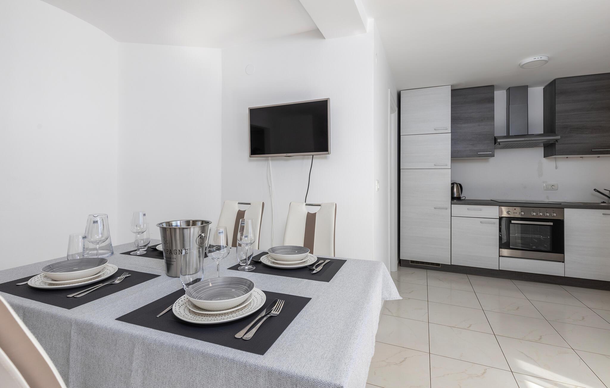 Tag familien under armen og rejs til det nordlige Kroatien, hvor lige ved kysten venter jer en vidunderlig base i denne lækre lejlighed. Indretningen fremtræder lyst og moderne med mange gode faciliteter, hvor I kan tage jer god tid til madlavningen og dække op til det store festmåltid ved spisebordet, inden I runder af i sofaen med en god film eller brætspil efter en dejlig feriedag.