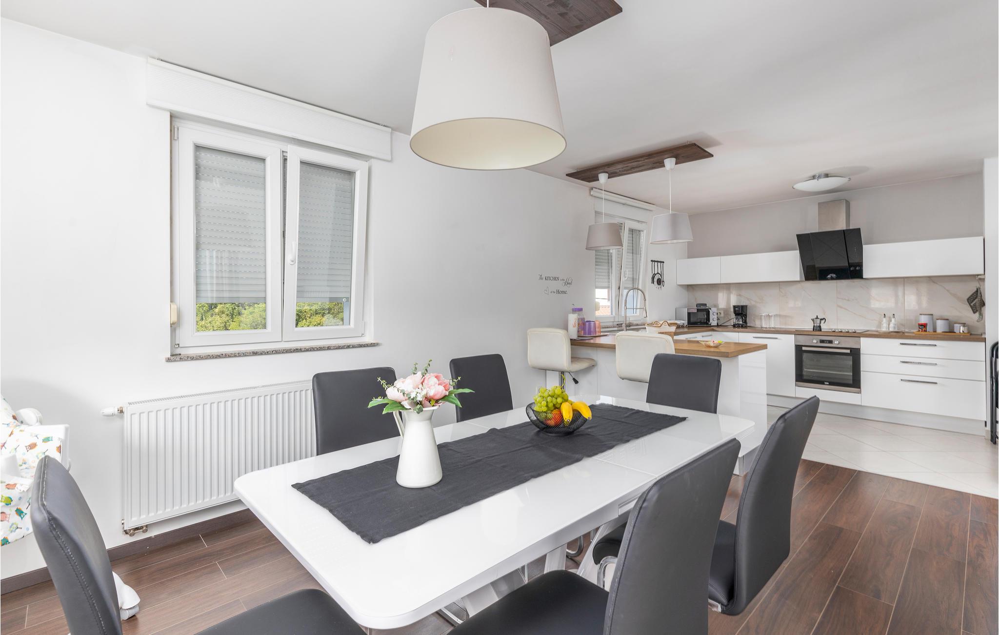 Den komfortable og rummelige lejlighed byder jer velkommen i en rolig beliggenhed i Rijekas bagland, omgivet af en skov og er det ideelle sted for en afslappende ferie omgivet af smuk natur. Lyse værelser og moderne indretning gør jeres ophold her til en vellykket oplevelse. Start jeres dag med en lækker morgenmad på terrassen med fantastisk udsigt over landskabet og læg planer for jeres aktiviteter. I kan også se frem til hyggelige aftener sammen i jeres ferieoase.