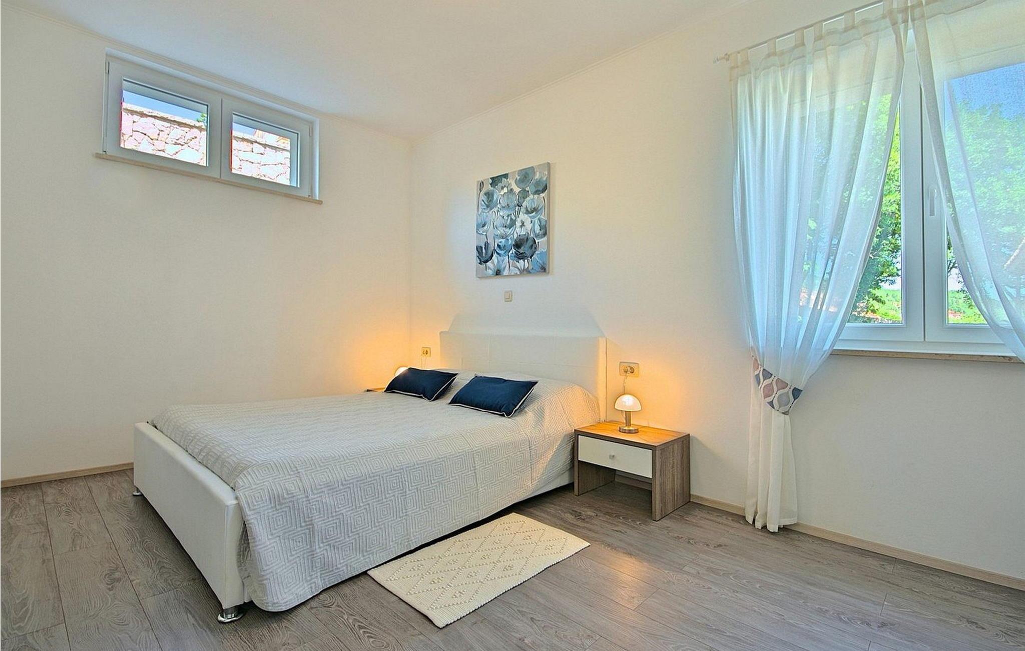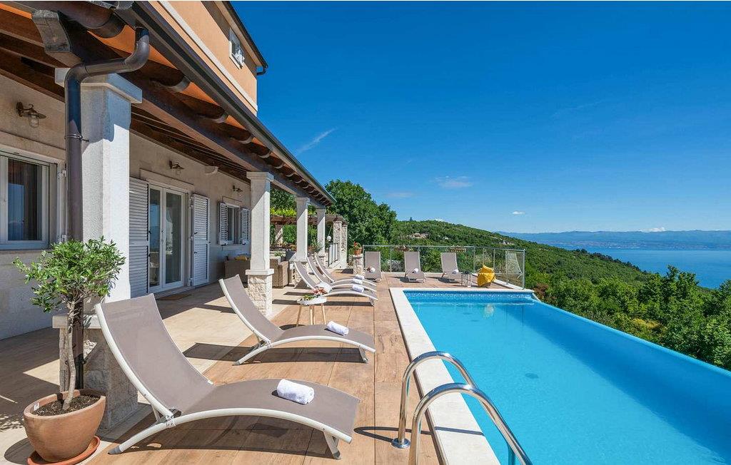 Gæsterne i dette smukke, moderne feriehus kan nyde den enestående udsigt over havet og de omkringliggende øer fra de øverste etager. I nærheden af huset ligger færgehavnen, ideel for dem, der ønsker at besøge øerne Cres og Losinj. Den nærmeste butik og restaurant samt stranden ligger i landsbyen Brsec, kun 2,5 km væk. På en lukket grund på 1500 kvm er der udendørs swimmingpool på 24 kvm, overdækket terrasse med grill og spisebord, liggestole, tre parkeringspladser og en parkeringsplads i garagen.