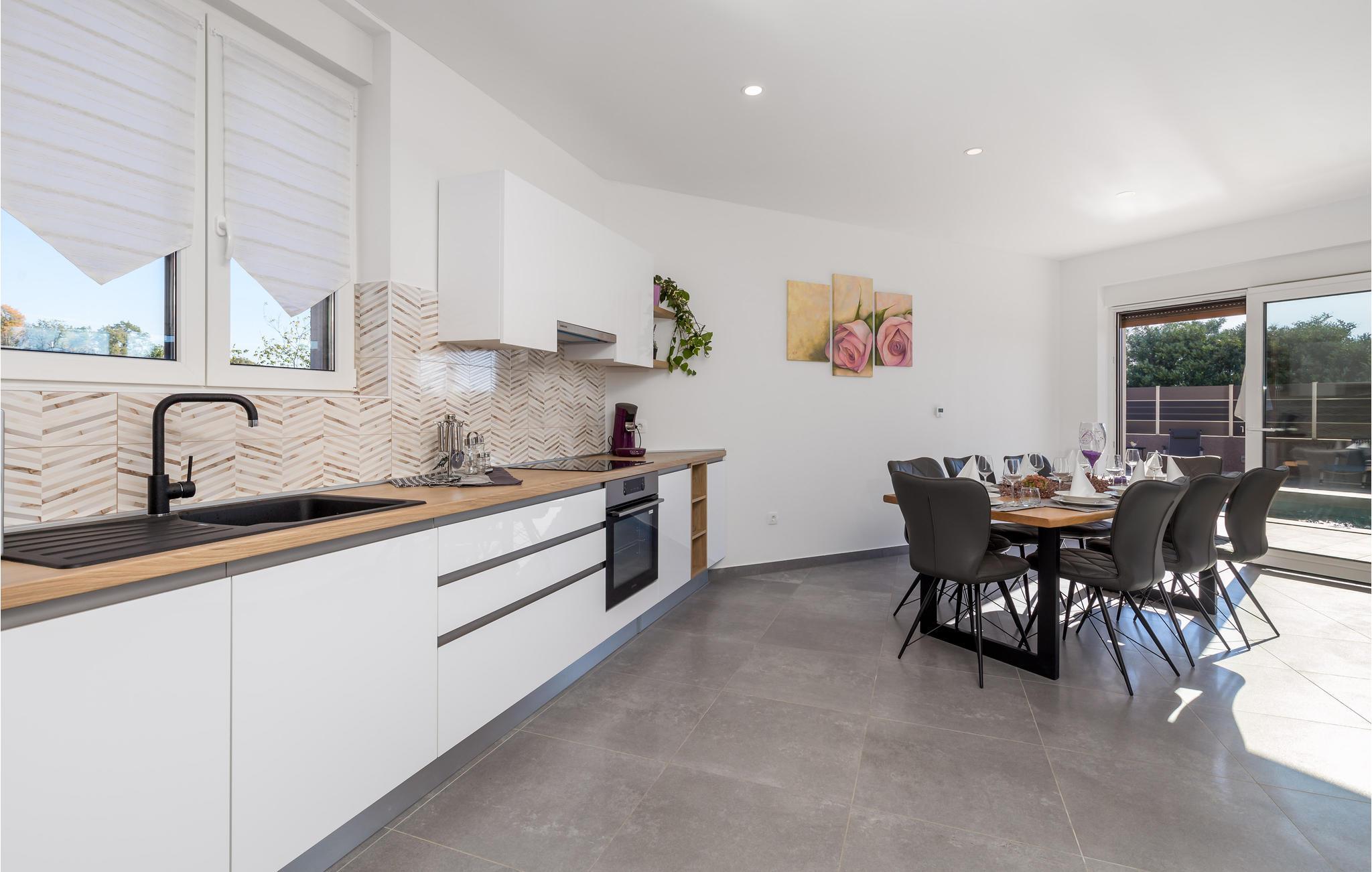 Glæd dig til en afslappende og behagelig ferie i dette familievenlige, ultramoderne og smukt indrettede feriehus. Hop ind i den private pool om morgenen og nyd morgenkaffen på terrassen. Slap af på liggestolene med en iskold forfriskning, mens dine børn leger på den indhegnede ejendom.