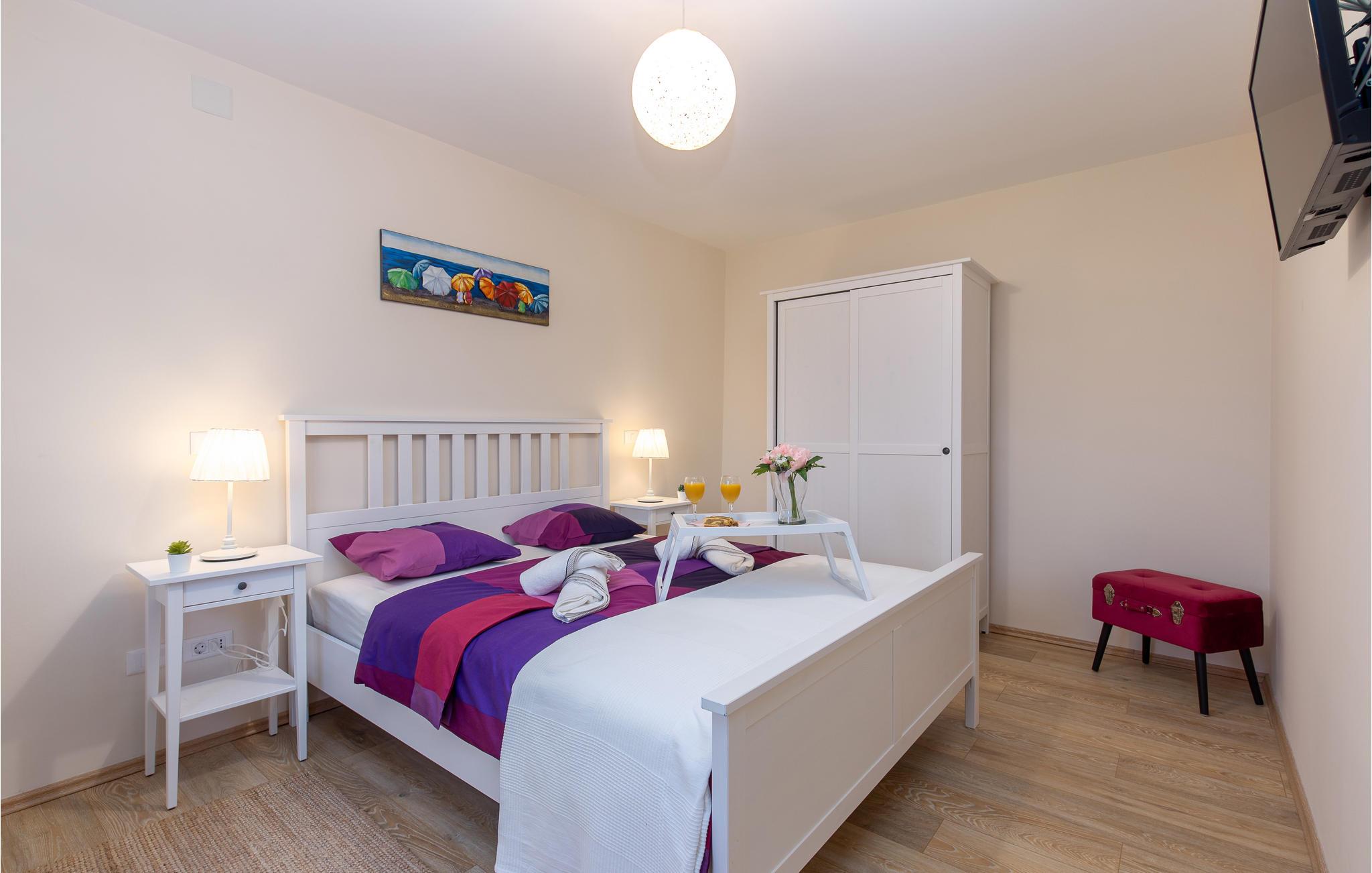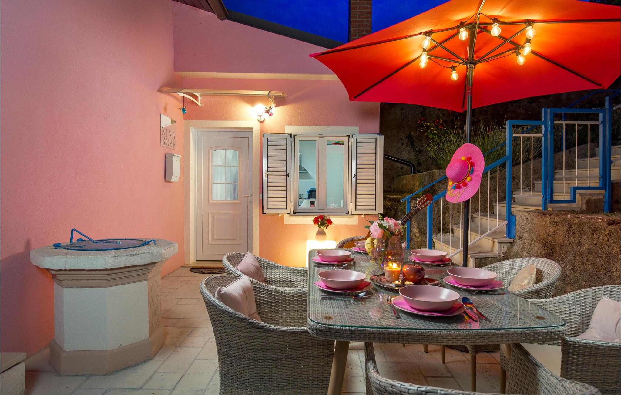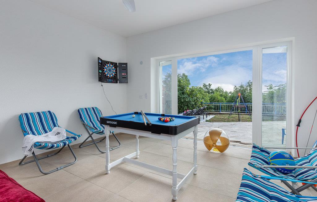 Tilbring en uforglemmelig ferie i dette renoverede feriehus med pool i den charmerende kystby Lovran ved Opatijas riviera. Det ligger på en stor grund over Lovran, med en flot panoramaudsigt over havet fra øverste etage. Huset består af to etager, som er forbundet med en udvendig trappe. På hver etage er en fuldt udstyret lejlighed, og derfor er denne feriebolig ideel til to familier, der ønsker at rejse sammen, samtidig at kunne bevare privatlivets fred. I haven er der to rummelige terrasser, en grill og en udendørs pool med solterrasse og bruser. I stueetagen er der et aktivitetsrum med billard, bordfodbold og dart. Her er også tænkt på legetøj til de yngste gæster. Et basketballnet og bueskydningssæt er også tilgængelige. Huset er møbleret med stor omhu og indrettet med moderne og praktiske møbler. Langs ejendommen fører en gågade direkte til centrum i Lovran og fører også til havet og stranden.