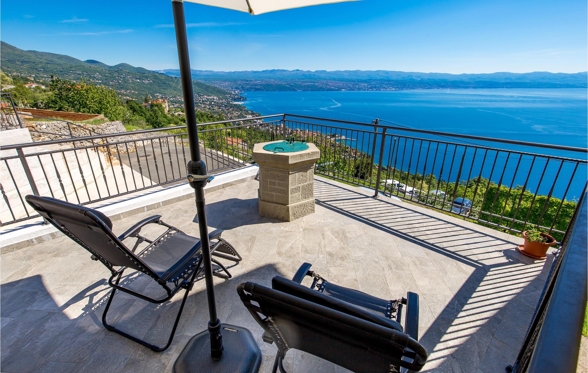 Den smukke strand, med det rene, krystalklare hav, ligger omkring ti minutters kørsel fra feriehuset, så vandhundene kan hurtigt komme i bølgerne. Hvis I vil tage en tur langs havnefronten, skal I gå til Opatija, og for dem, der ønsker at udforske området, anbefaler vi at besøge Ucka Nature Park og de nærliggende øer Cres og Krk.