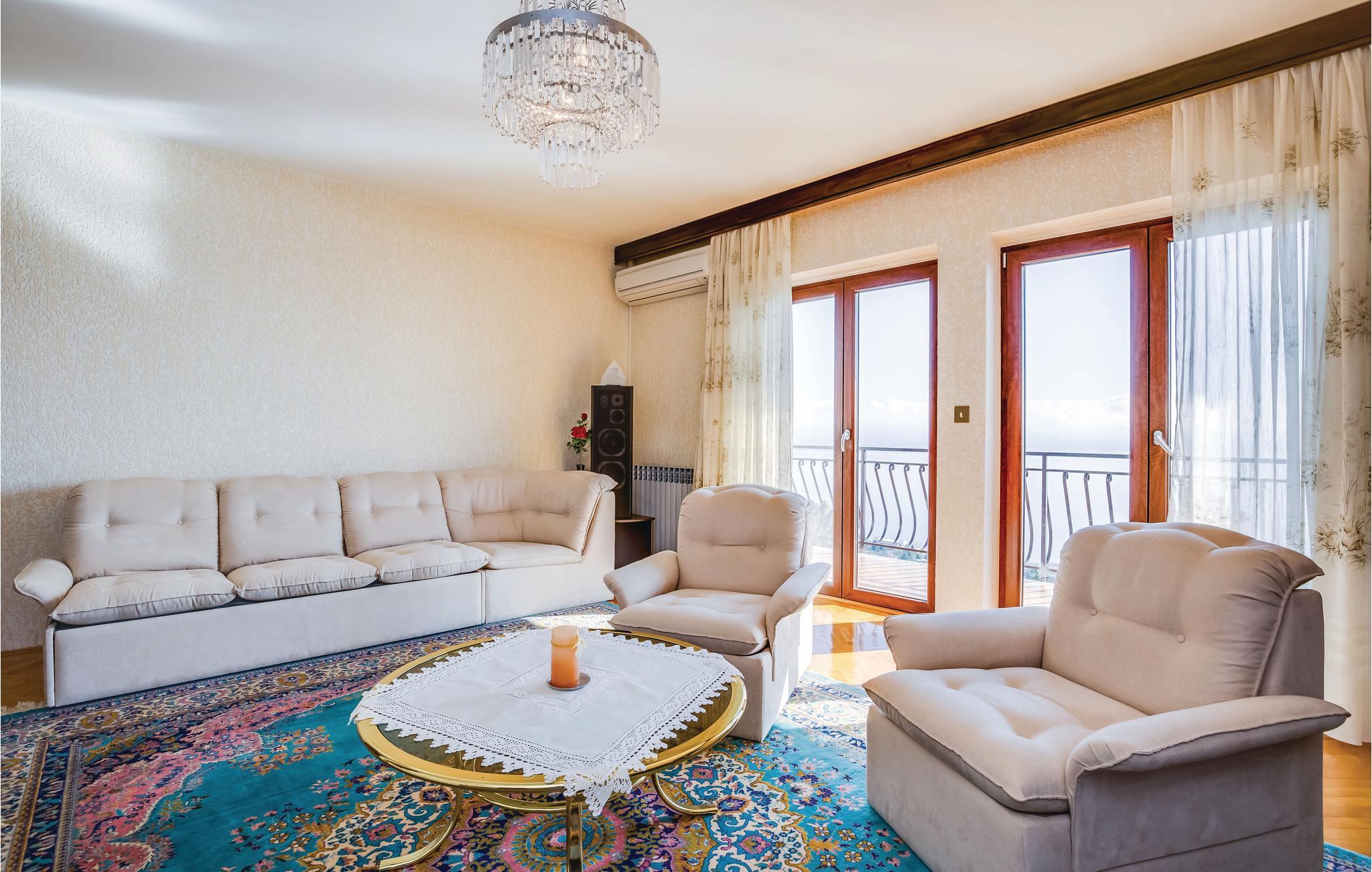 Denne hyggelige ferielejlighed ligger på anden sal ligger i den maleriske lille by Liganj, over Lovran, ved bjergskråningerne af Ucka. Slap af i det rolige område og nyd den dejlige udsigt til havet og de landlige omgivelser fra altanerne. Ferielejligheden ligger på en fælles grund, der er delt med ejeren og boligerne CKO635 og CKO637. Opdag rivieraen af Opatija, der prydes af vidunderlig natur, parker, havpromenader, strande, barer og restauranter. Ejer sørger gerne for at I kan få frugt og grønt fra hans store nyttehave.