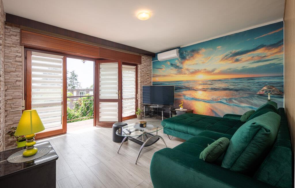 Velkommen til denne indbydende lejlighed, der ligger i skønne omgivelser tæt på havet i en hyggelig forstad til Lovran. Indretningen fremtræder yderst charmerende med rustikke og gode møbler, farverige tapeter og de faciliteter, I behøver for at kunne slappe af før og efter dagens udflugter. Efter dagens muntre leg kan I slappe af på terrassen med havudsigt, nyde den smukke udsigt og de varme sommeraftener med kolde drinks, mens I lægger planer for de kommende dage.