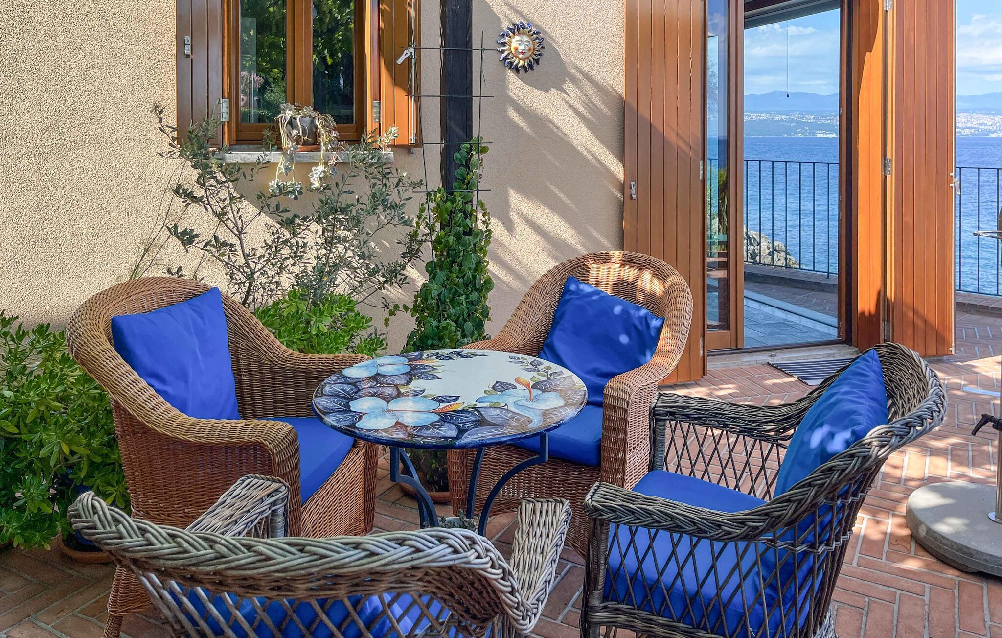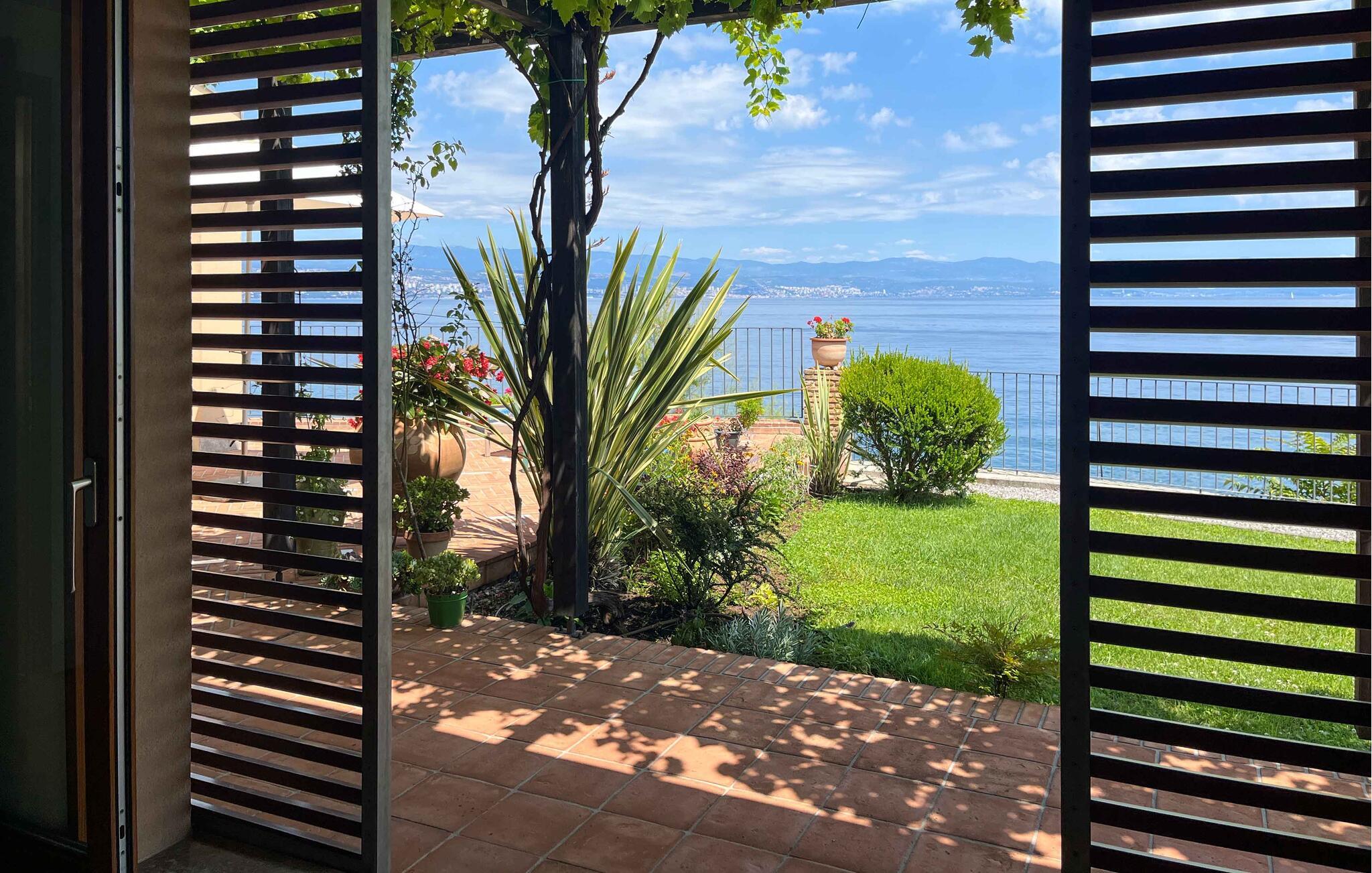 Villa Mirvami Lovran besteht aus 3 Ebenen: der ersten Ebene, wo sich die Parkplätze befinden, der zweiten, Hauptebene und der dritten, der so genannten Meeresebene. Von der ersten Ebene geht es hinunter zur Hauptebene, wo sich ein großer Wohnbereich mit Küche und Essbereich befindet. Die große Terrasse über dem Meer ist von einem wunderschönen mediterranen Garten umgeben (mit einem speziellem Bereich für Gemüse und Kräuter). Hier werden Sie auch eine geräumige Sommerküche mit einem schönen Essbereich unter der Pergola sowie einen Grill und eine separatenAußentoilette vorfinden. Von der Terrasse über dem Meer haben Sie einen spektakulären Blick über die Kvarner Bucht und die Inseln. Tagsüber können Sie sich am Esstisch und auf den Sofas im Schatten der Pergola vor der Sonne zurückziehen. Am Abend können Sie auf der schönen Terrasse direkt über der Klippe sitzen und erfrischende Brisen vom Berg Ucka genießen. An heißen Sommernächten ist da noch eine Terrasse oberhalb des privaten Strandes, wo Sie auch bei Nacht schwimmen können.