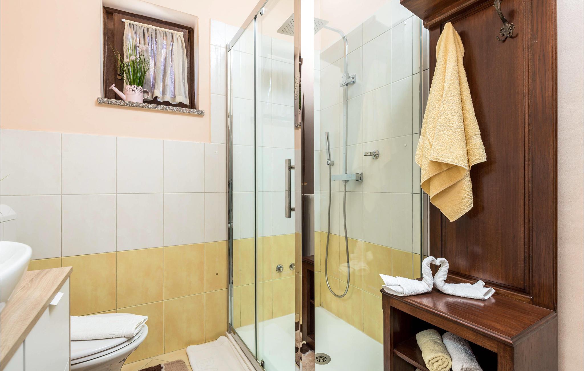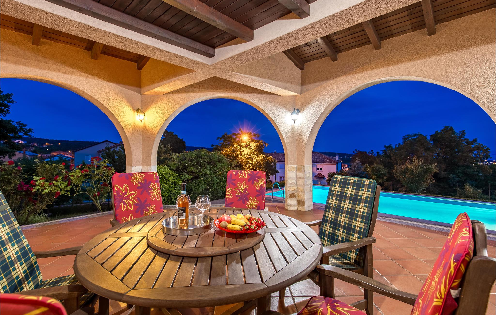 Denne smukke feriebolig med pool er beliggende i naturlige omgivelser nær byen Rijeka, og er ideel til en ubekymret familieferie. Nyd privatlivets fred på den indhegnede ejendom, og slap af i den udendørs pool. I stueetagen er der et opbevaringsrum, hvor I kan efterlade cykler, samt den store overdækkede terrasse med grill. På første sal, med minimum lofthøjde på 180 cm, er der et soveværelse, en stue med terrasse og havudsigt, og køkkenet. Oplev dronningen af Adriaterhavet, den magiske og berømte by Opatija. Opatija tilbyder også smukke strande for enhver smag, så I både kan solbade og tage en dejlig dukkert.