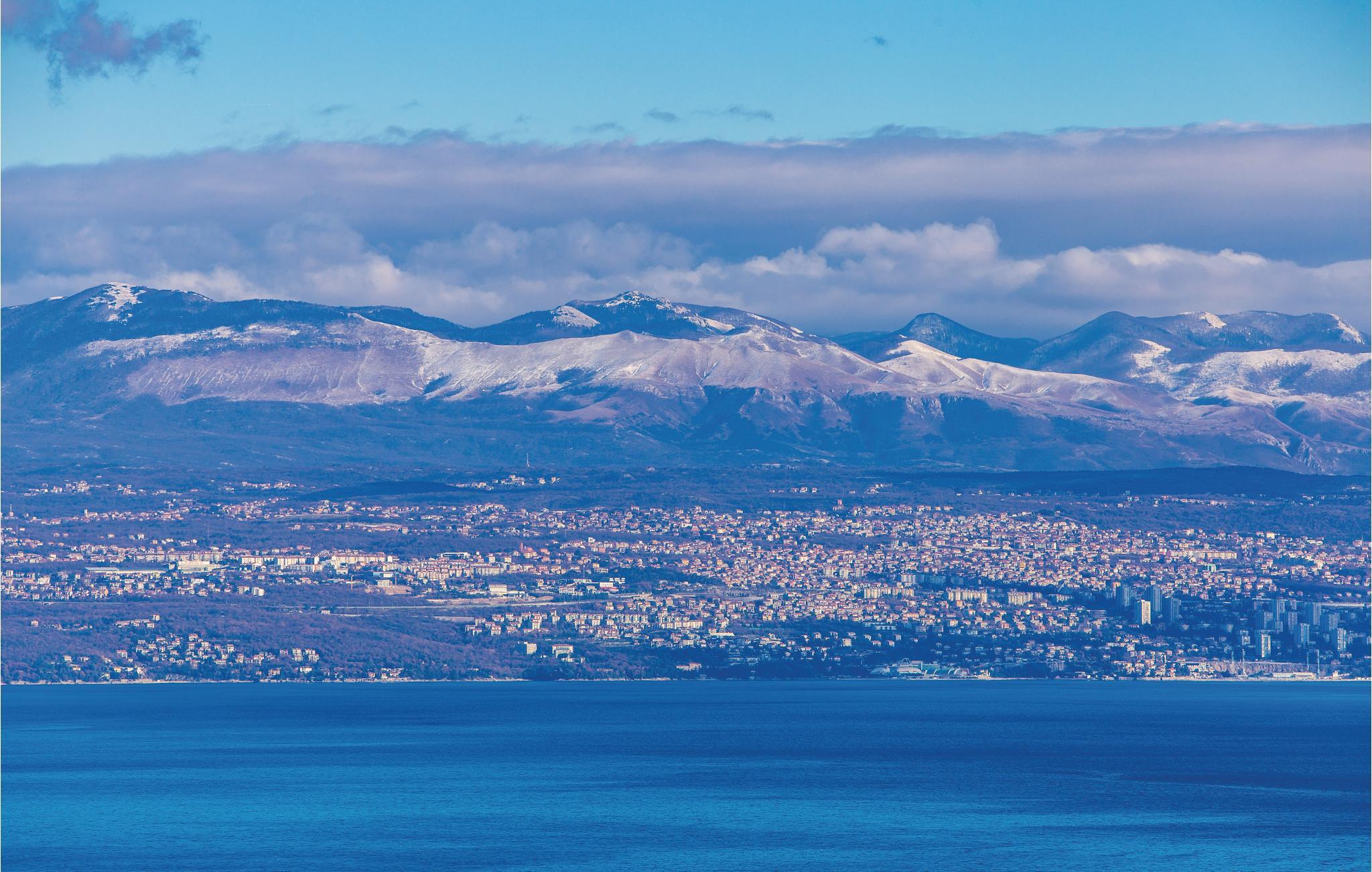 Det har tre etager og et galleri. I nederste etage er der en separat studiolejlighed, hvorfra resten af ??huset kan nås via den udvendige trappe. Feriehuset ligger, sammen med et par nabobygninger, afsondret og langt væk fra byens stress og jag. Her kan du nyde stilheden, den uberørte natur og en fantastisk udsigt over det blå hav. En asfaltvej fører til ejendommen, de sidste 80 m er ikke asfalteret. Fra alle etager kan du nyde en smuk panoramaudsigt over havet og Kvarner Bugt. Smukke strande findes i nærheden i Sipar, Moscenicka Draga og Medveja. Der er gode muligheder for en aktiv ferie: cykling, klatring og windsurfing.
